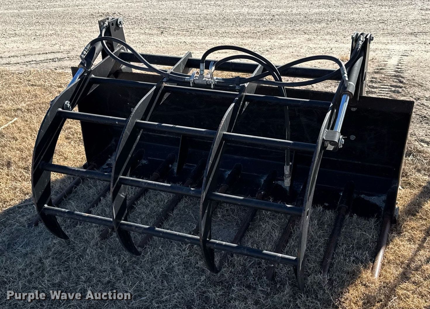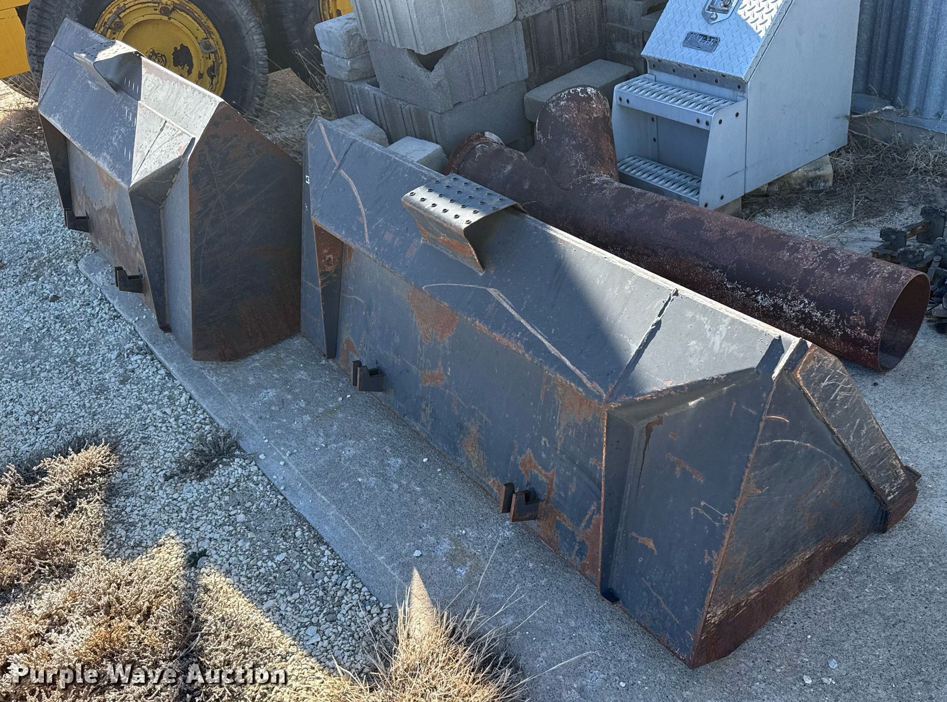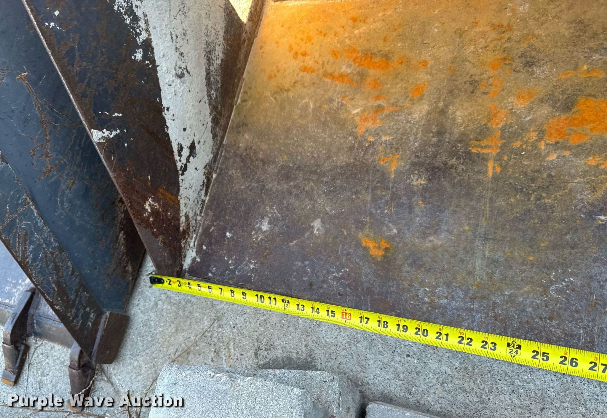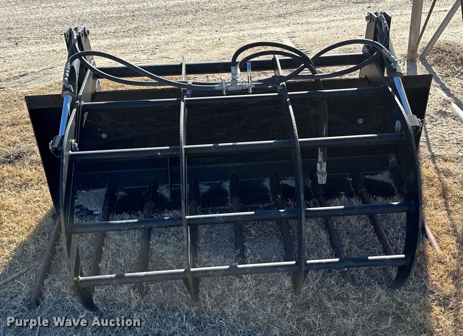 1988 John Deere 675B skid steer loader. Hours: 3,441 on meter, Serial: M0675BB485085. Engine John Deere, Cylinders: 4, Fuel type: Diesel. Transmission Hydrostatic. Operators station Enclosed cab, Bucket control: Foot. Features Quick coupler: Manual, Bucket Width: 63", Cutting edge: Weld-on, Bucket Width: 64", Teeth: 8, Grapple bucket Width: 67", Forks Length: 48". Tires Size: 10x16.5. L&N Farming LLC. Victoria, KS 67671