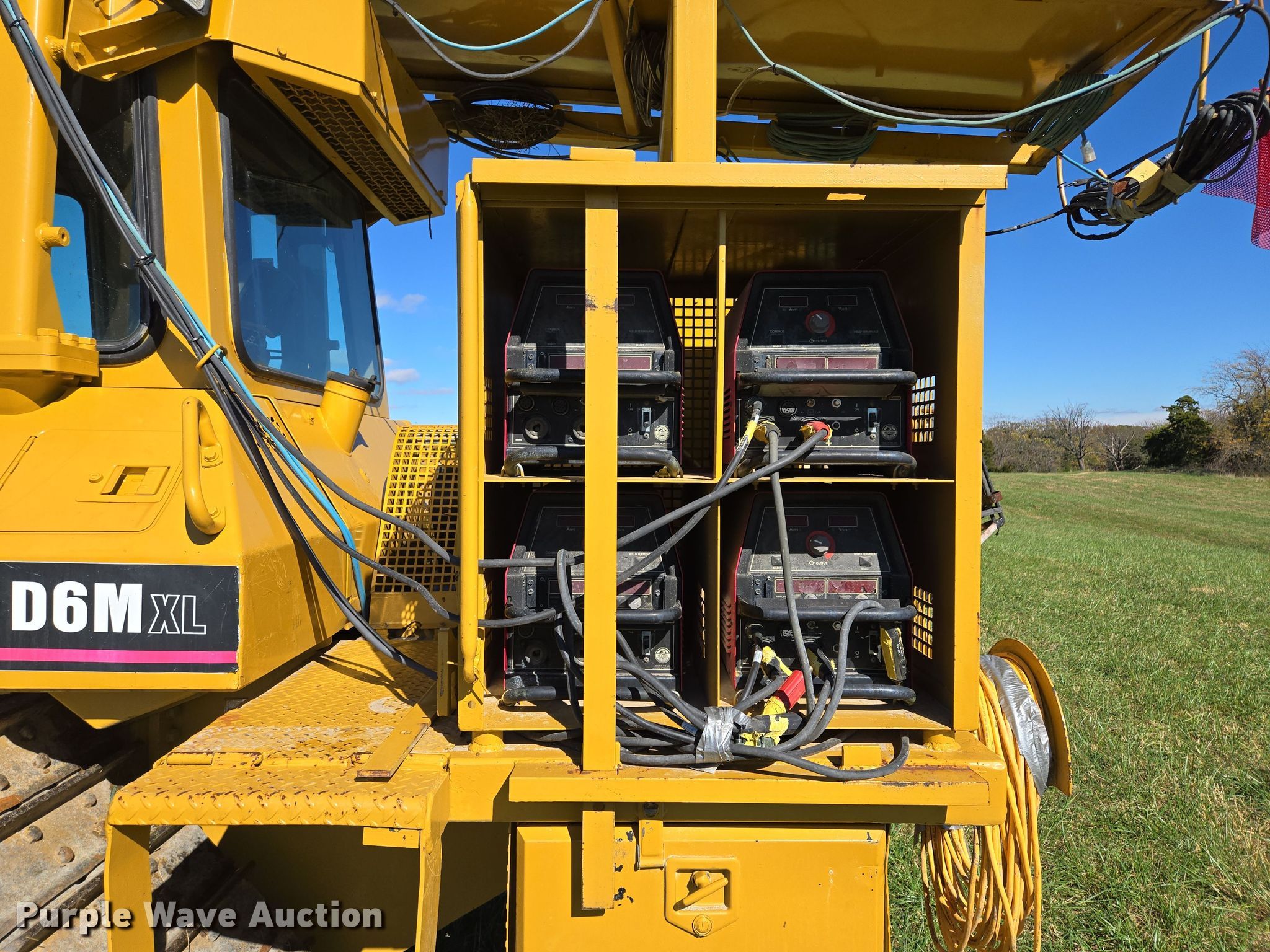 2002 Caterpillar D6M XL tack rig. Hours: 10,383 on meter, Serial: CAT00D6ML3WN03016. Engine Caterpillar 3116, Serial: 3WN03019, Displacement: 6.6L, Cylinders: 6, Fuel type: Diesel. Transmission Powershift, 3F - 3R. Operators station Enclosed cab, AC, Heat, Steering: Fingertip control. Features Boom 2008 IMT 6/45, Serial: 621578, Extendable, Platform 10' L x 4' W, Air compressor Baldor electric motor, Volts: 208-230/460, (4) Lincoln Invertec welders Leads. Tracks Width: 24", Grouser pads: Single, Bottom rollers: 7, Track guards. Odessa, MO 64076
