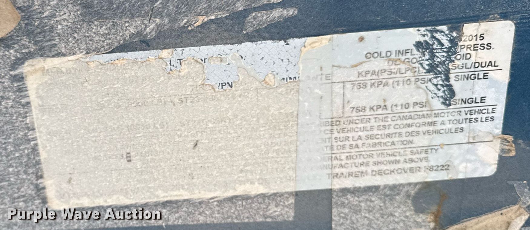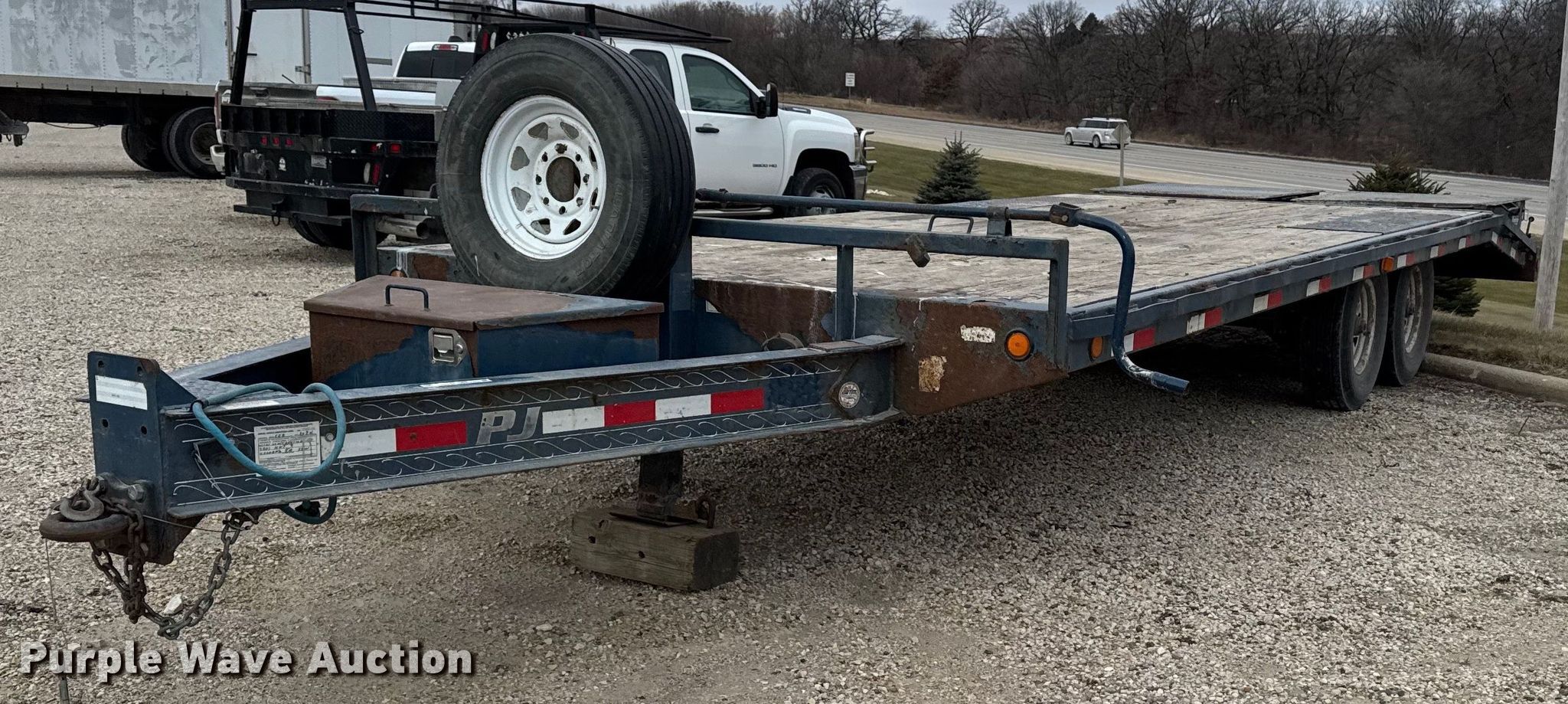 2015 PJ F8222 equipment trailer. VIN: 4P5F822252F1228670. Dimensions Overall: 28' L x 102" W, Deck: 22' 6" L x 102" W, Ramps: Manual Length: 4'. Features Deck type: Steel. Chassis Hitch: Pintle, Landing gear: Single, Suspension: Spring, Brakes: Electric, Axles: Tandem, GVWR: 16,000 lbs. Tires Steel wheels, Size: 235/85R16. Iowa title. Title distribution may be delayed up to 14 days from verification of funds. Wicks Construction. Decorah, IA 52101