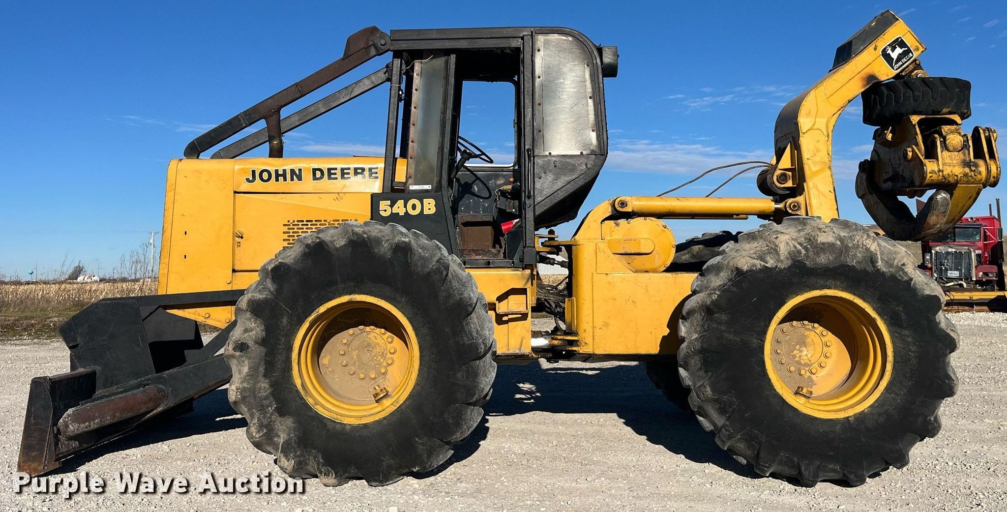 Purple Wave is selling a used Skidder in Missouri. This item is a John Deere 540B skidder with the following: Hours: 913 on meter