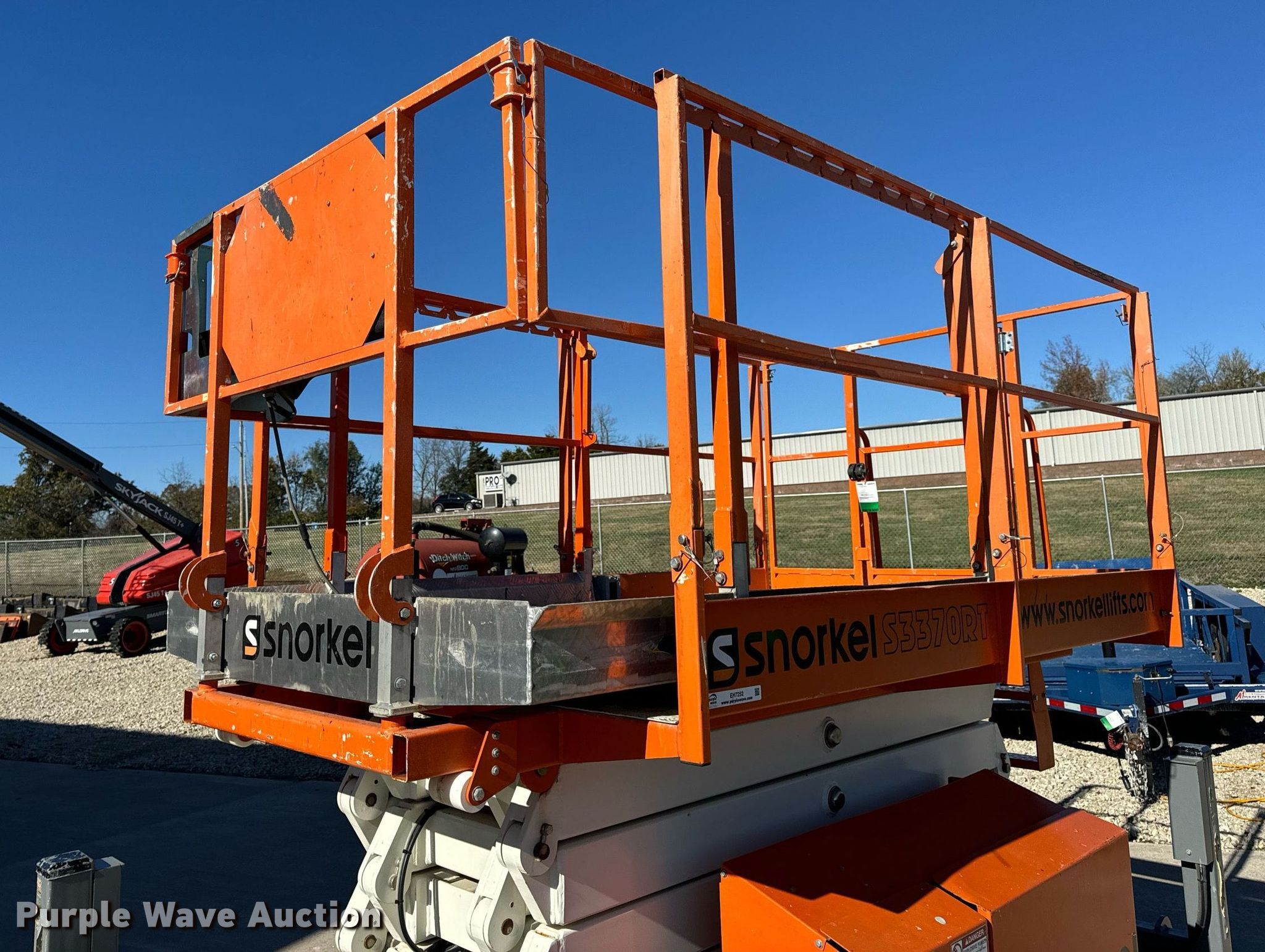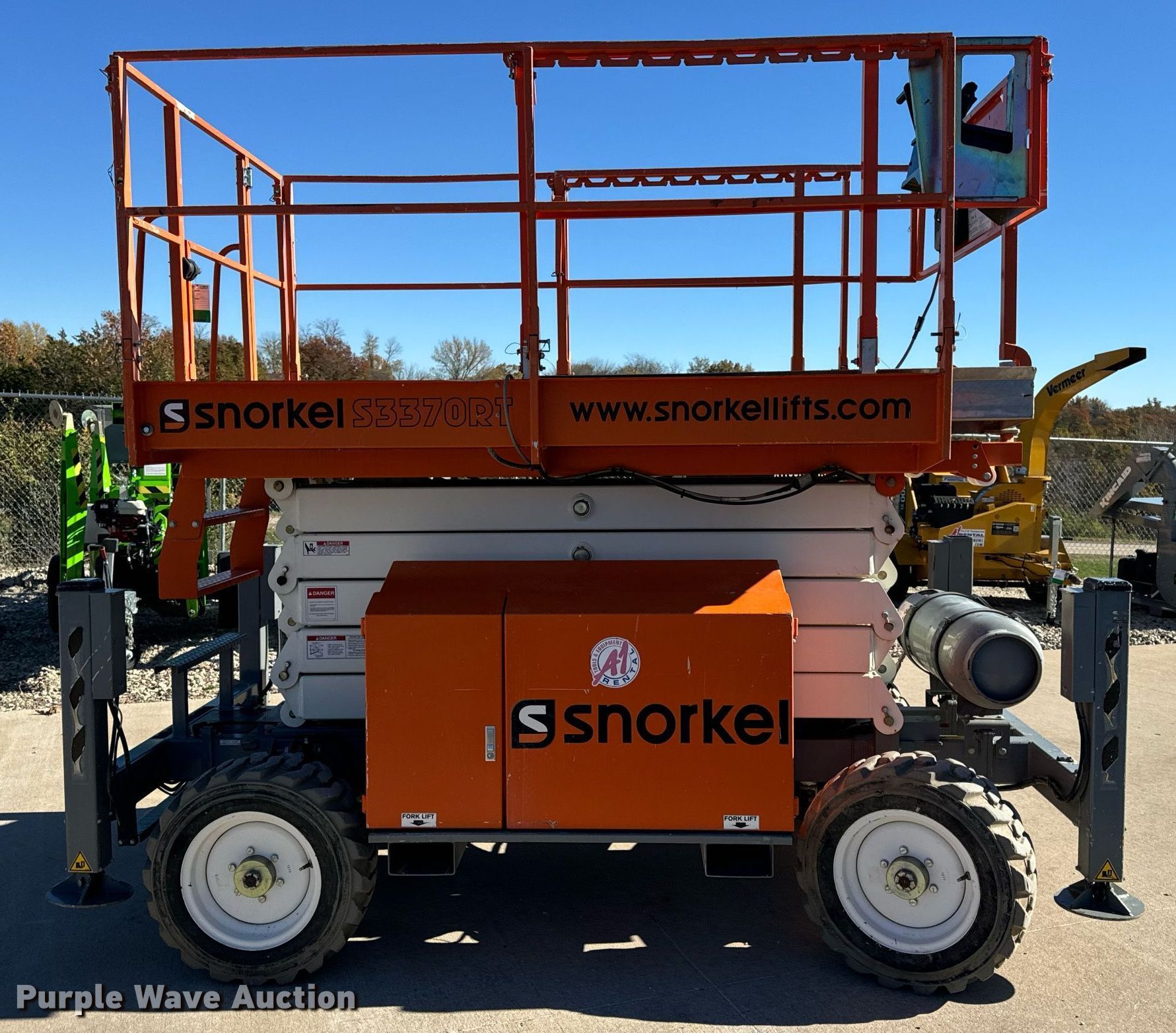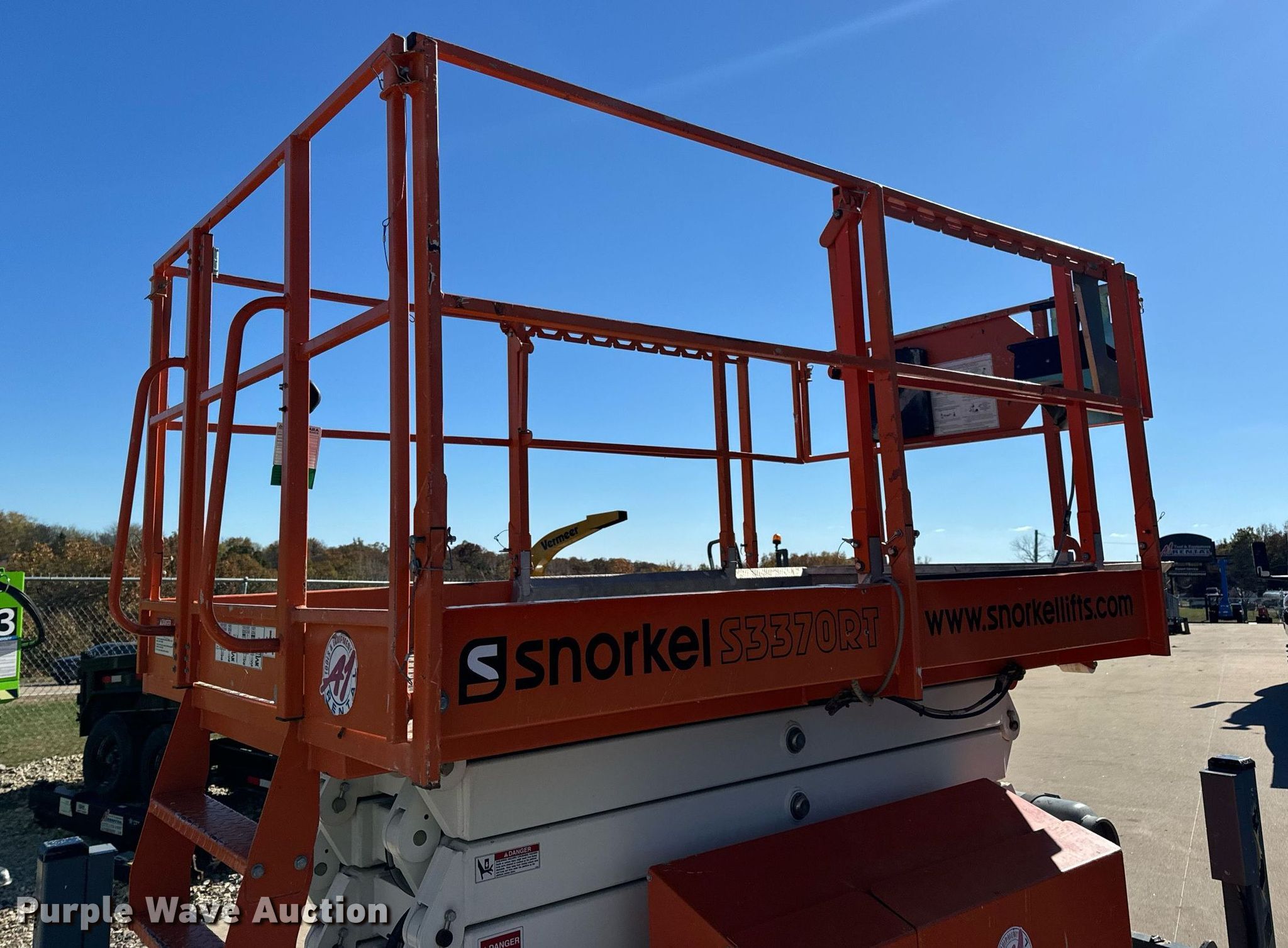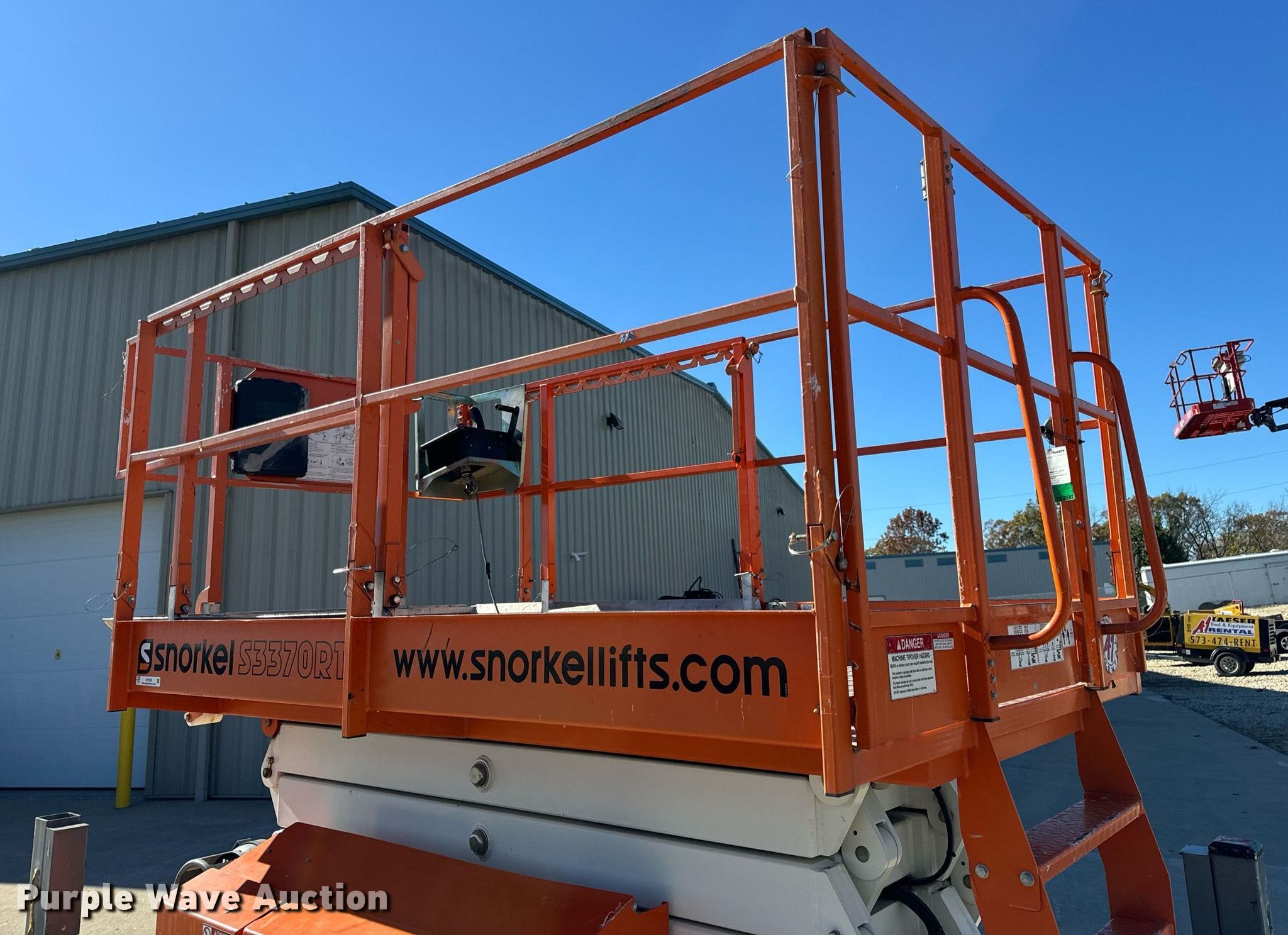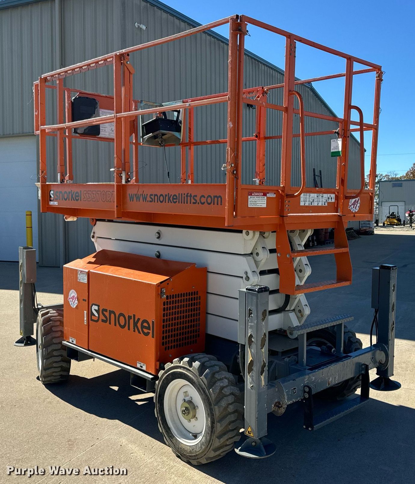 Purple Wave is selling a used Scissor or Vertical Lift in Missouri. This item is a 2017 Snorkel S3370RTV6 scissor lift with the following: Hours: 655 on meter, Serial: S3370RT-07-170700327
