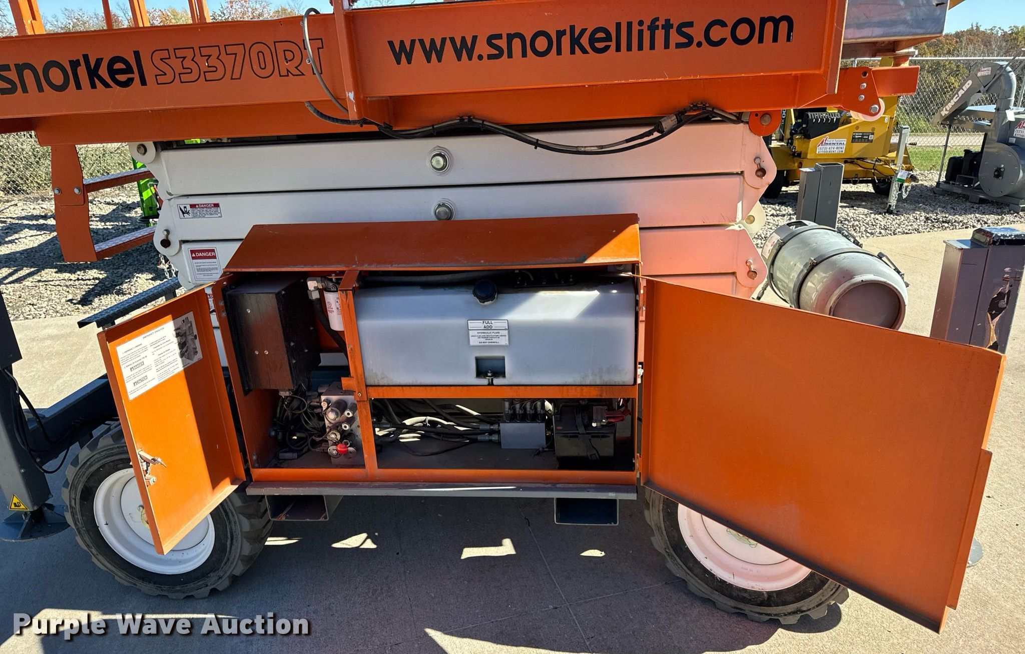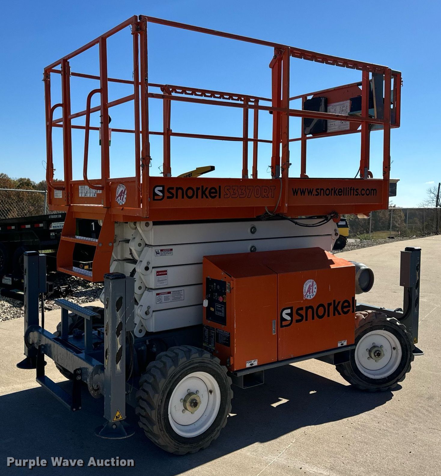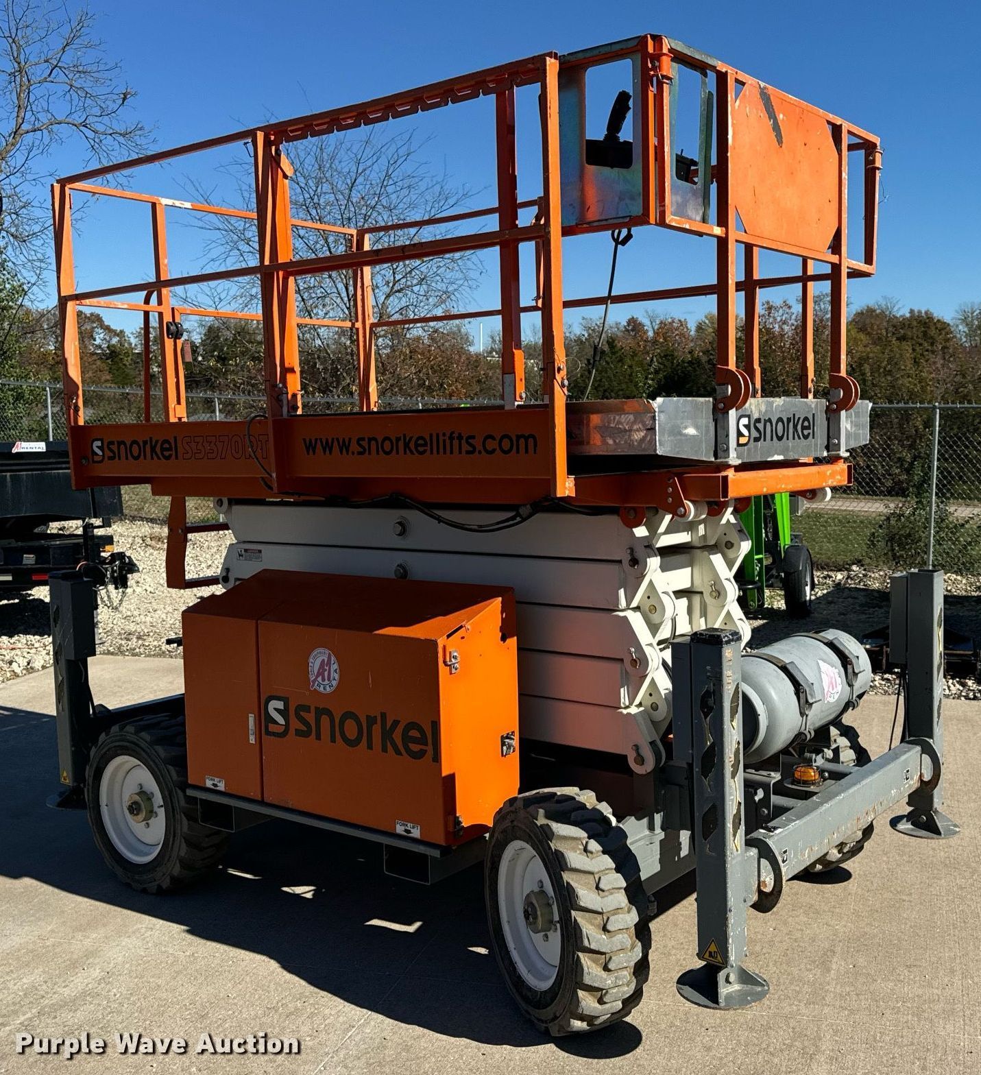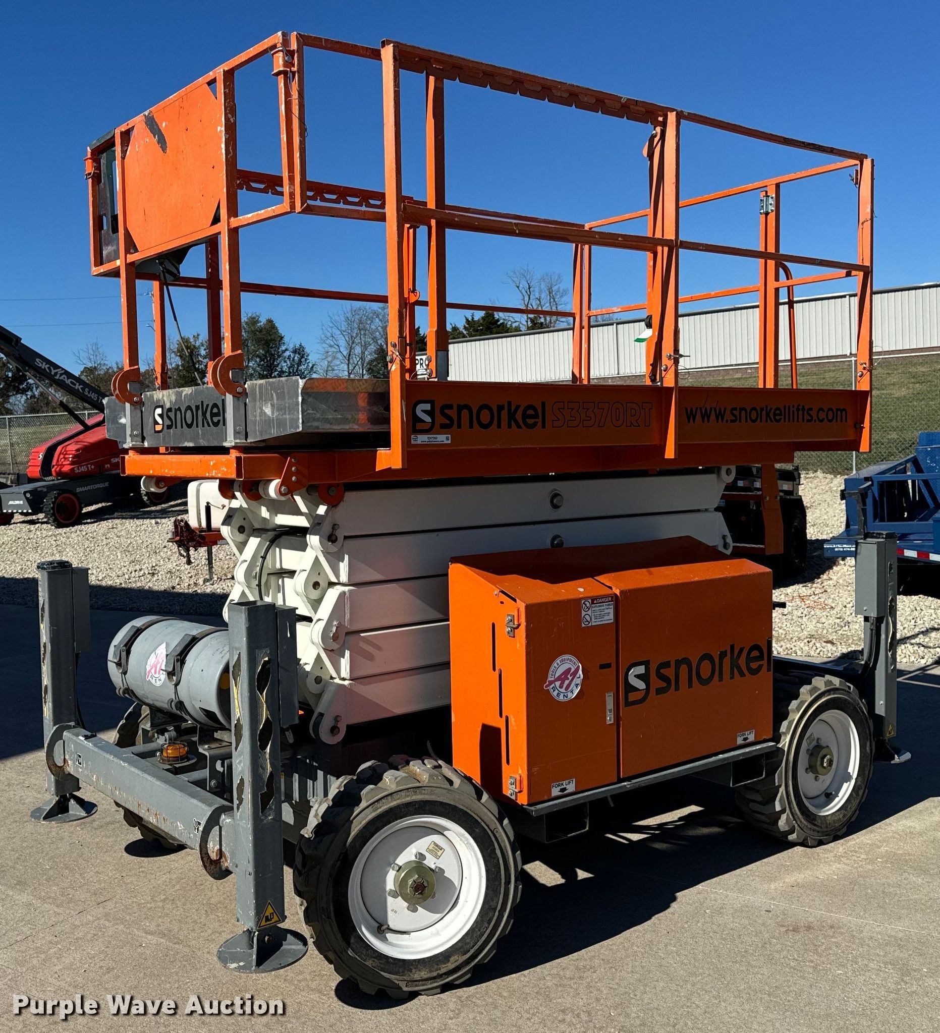 Purple Wave is selling a used Scissor or Vertical Lift in Missouri. This item is a 2017 Snorkel S3370RTV6 scissor lift with the following: Hours: 655 on meter, Serial: S3370RT-07-170700327