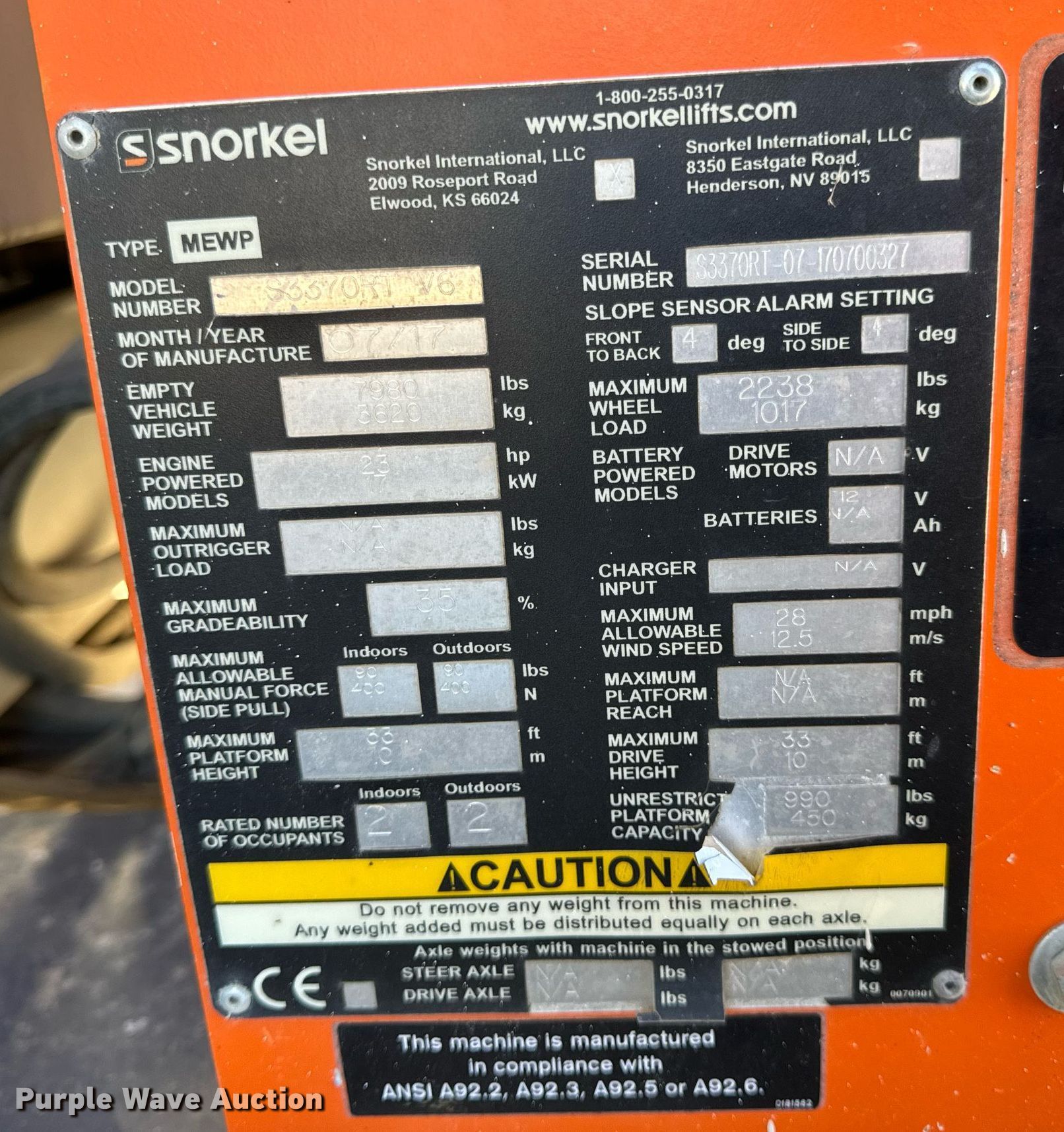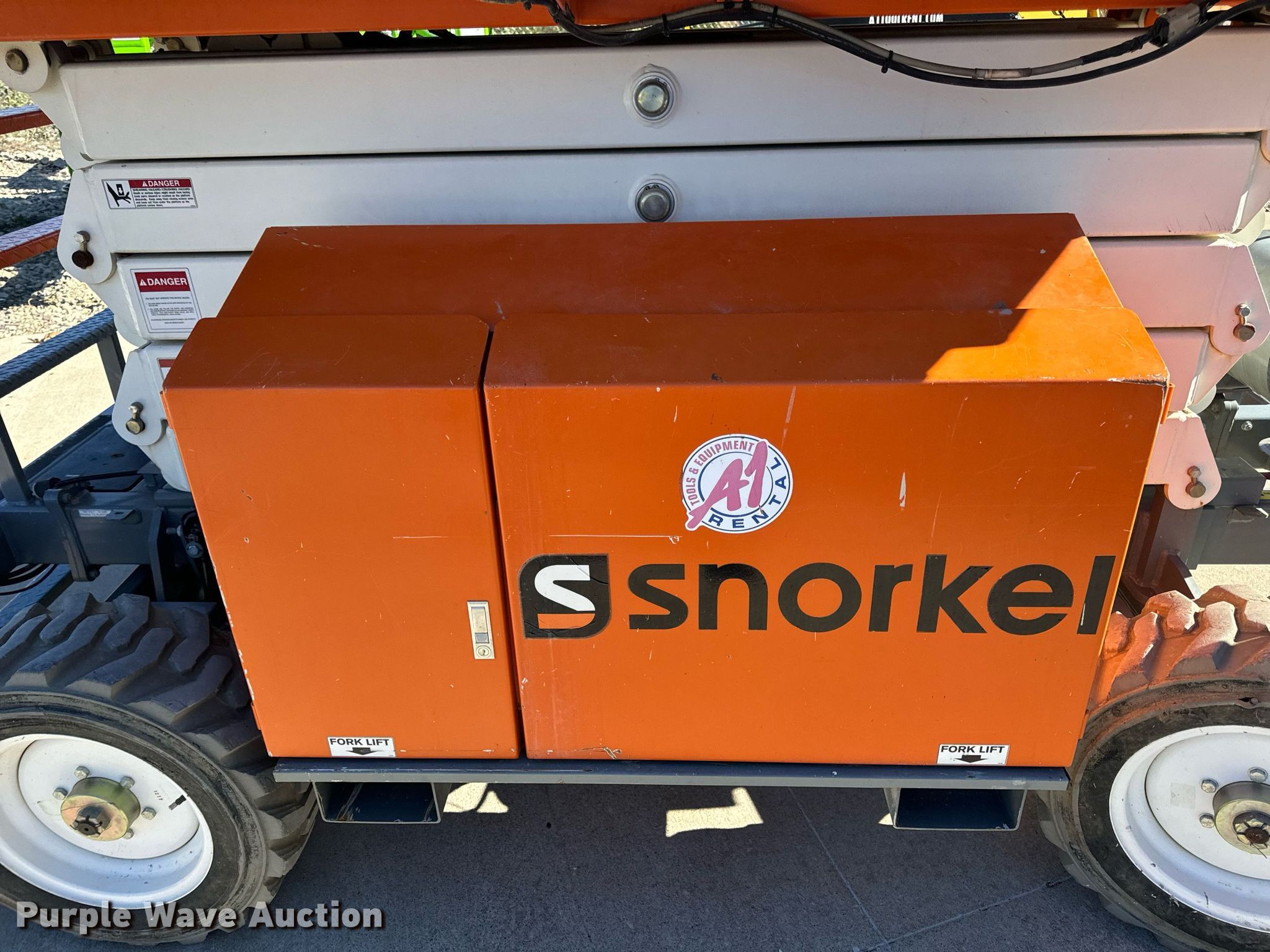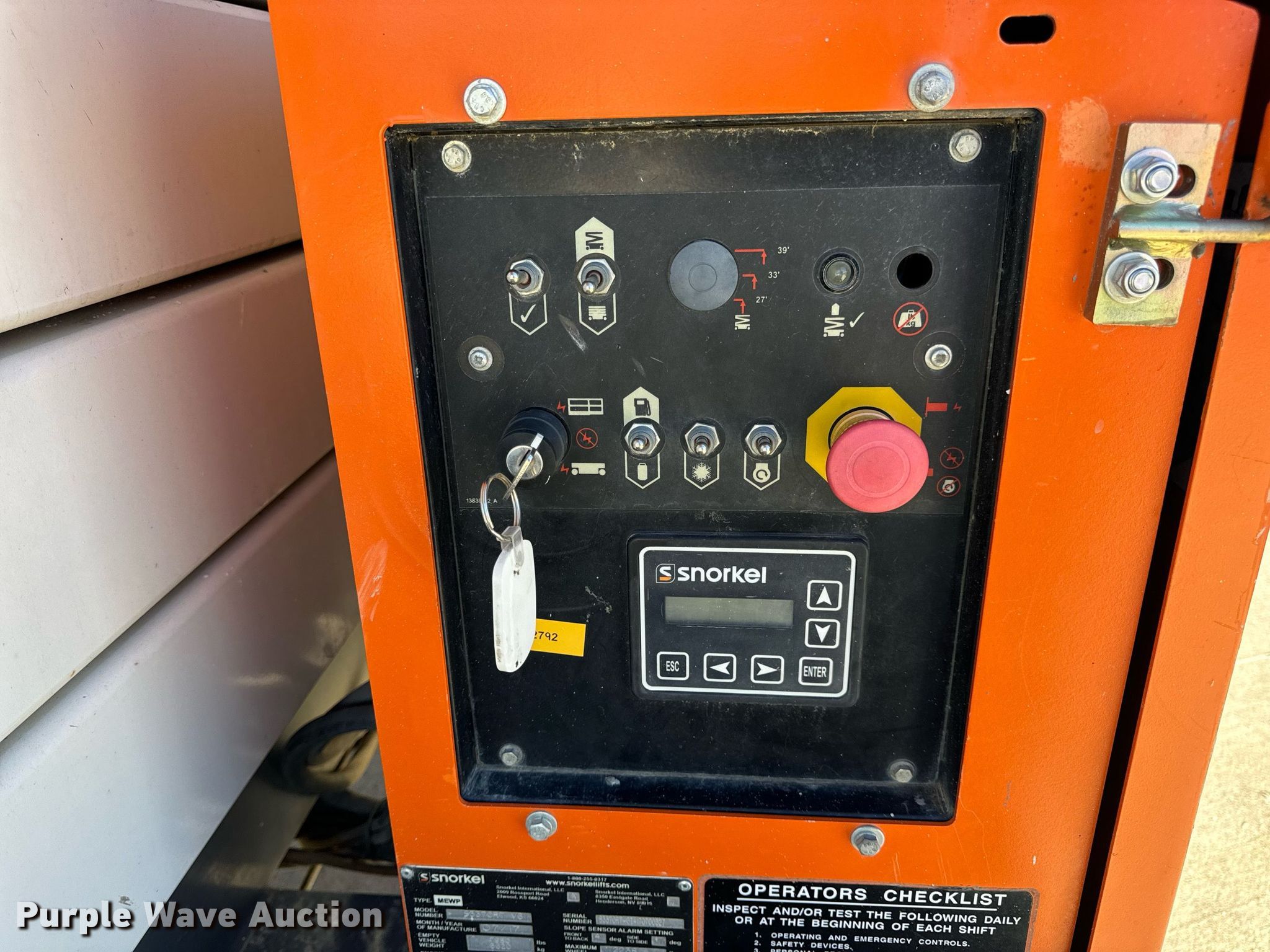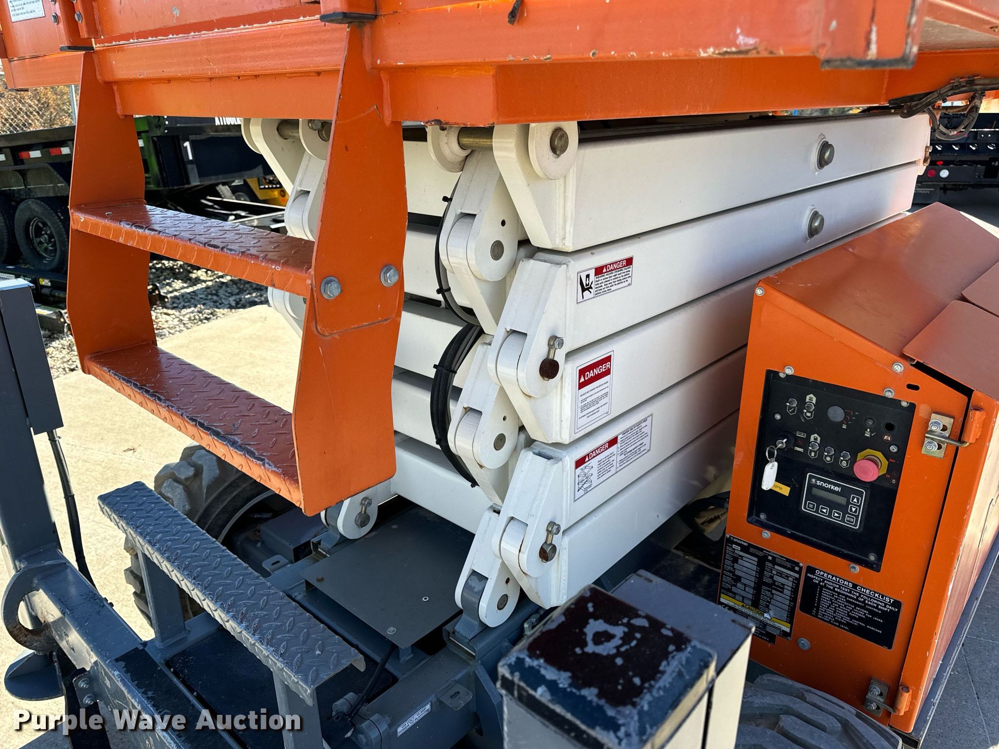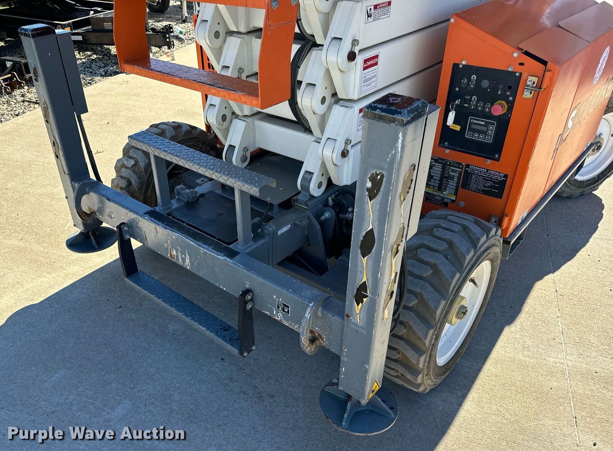 Purple Wave is selling a used Scissor or Vertical Lift in Missouri. This item is a 2017 Snorkel S3370RTV6 scissor lift with the following: Hours: 655 on meter, Serial: S3370RT-07-170700327