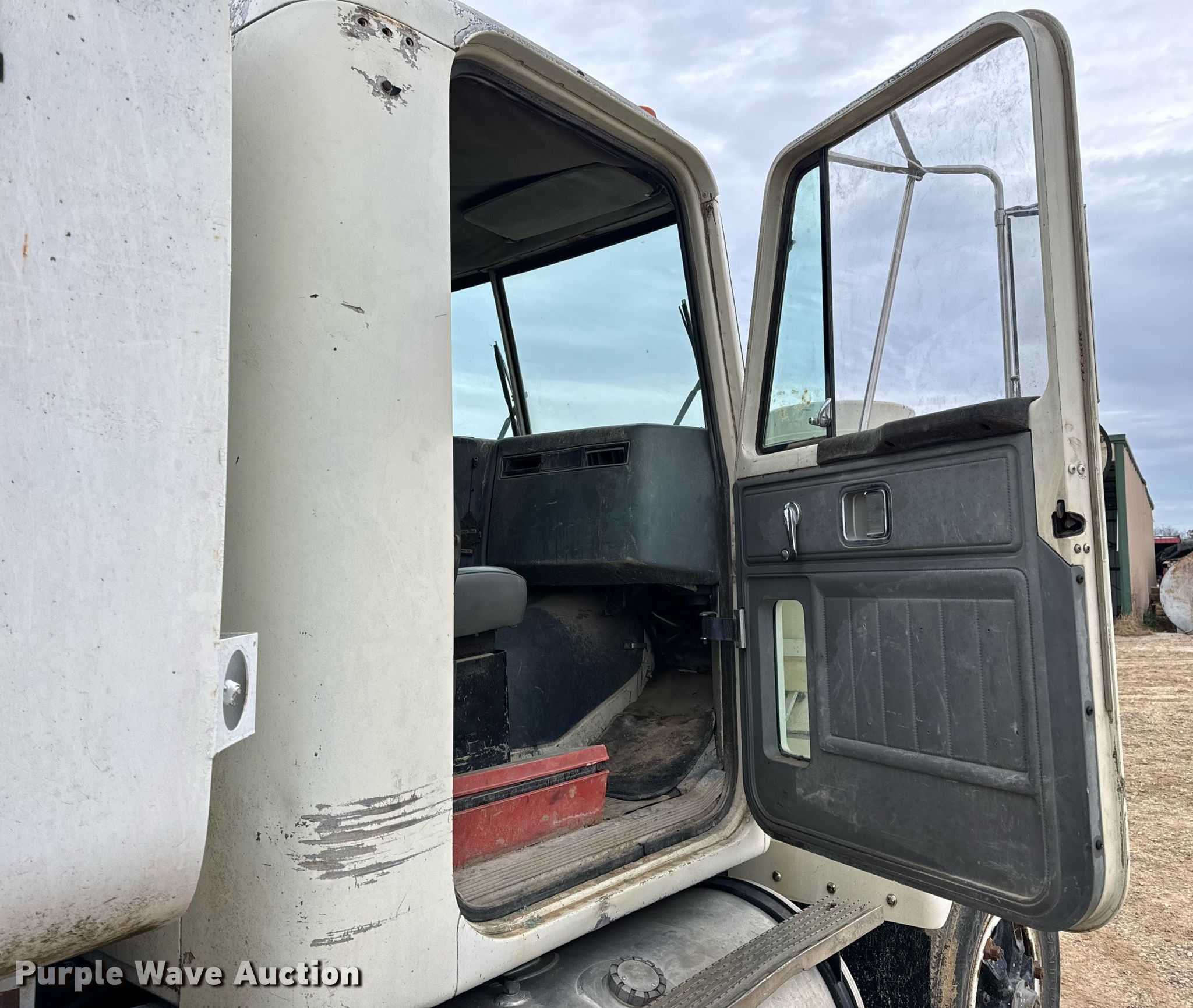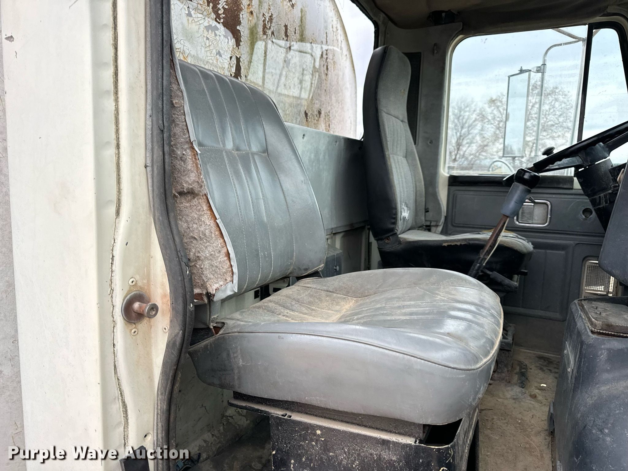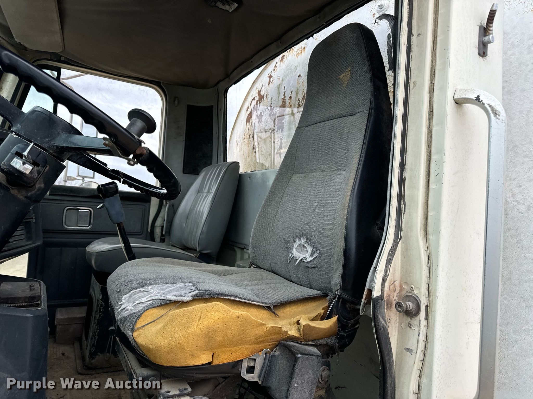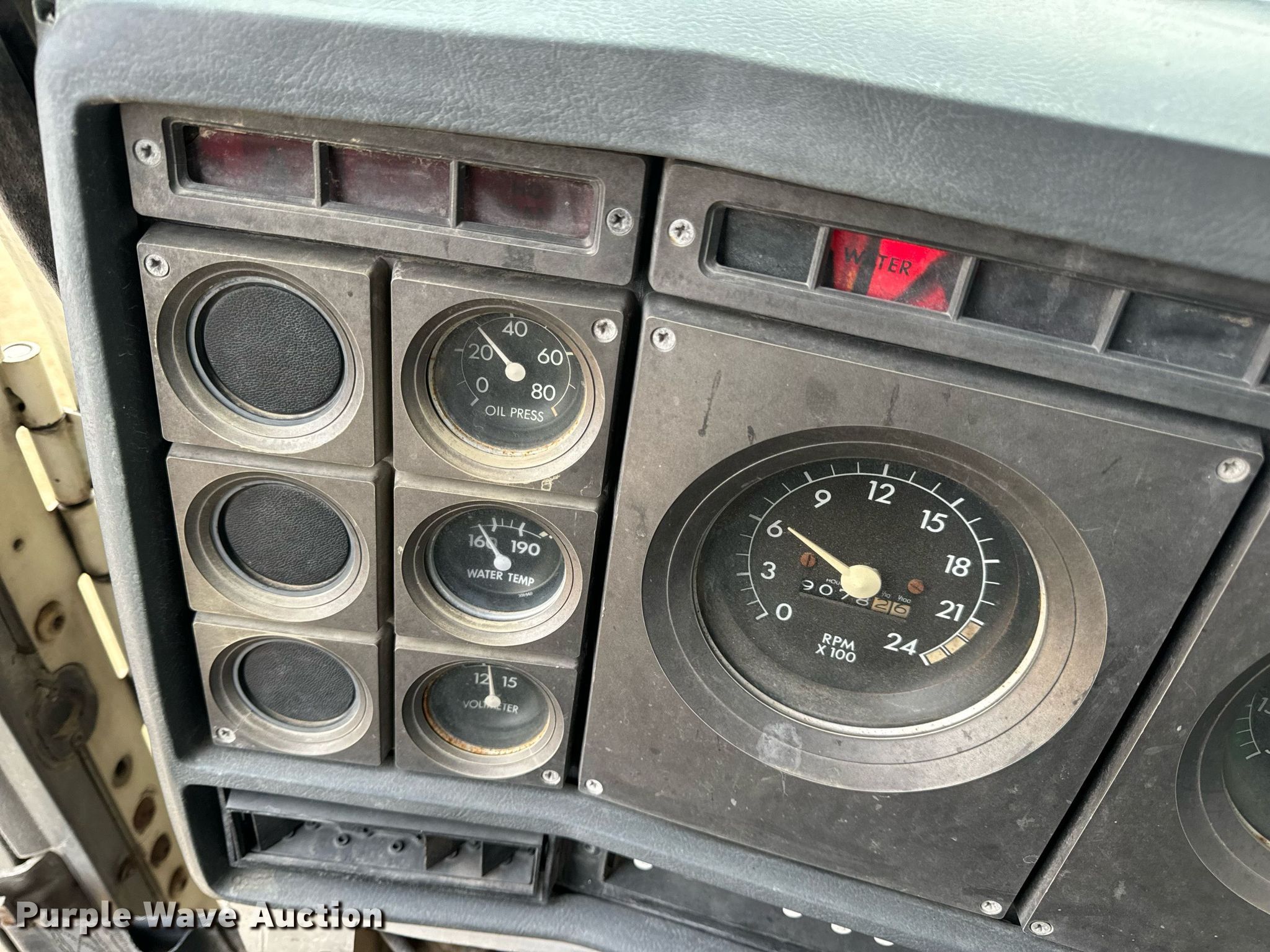 1984 GMC General water truck. Miles: 46,804 on odometer, Hours: 9,078 on meter, VIN: 1GDT9E4C0EV535369. Engine Cummins NTC-300, Displacement: 14.0L, Cylinders: 6, Fuel type: Diesel, HP: 300. Transmission Eaton Fuller, Manual. Chassis Axles: Tandem, Differential lock: Inter-axle, Suspension: Air, Brakes: Air, PTO, GVWR: 50,000 lbs. Interior Heat. Features Bed / tank Capacity: 4,000 gallons, 14' 6" L x 97" W, Spray bar: Rear, Top fill. Tires Size: 11R22.5. Notes Dash warning indicator: Water, Power steering issues, Non-operational driver side exterior door handle. Missouri title. Title distribution may be delayed up to 14 days from verification of funds. S&A Equipment & Builders. Fulton, MO 65251