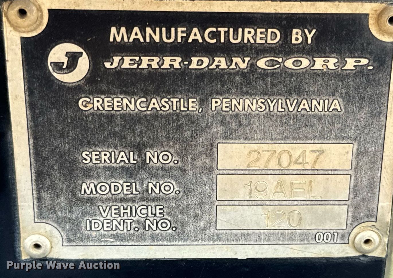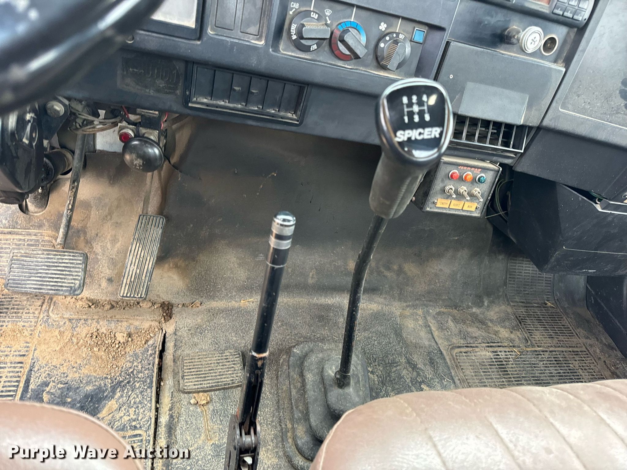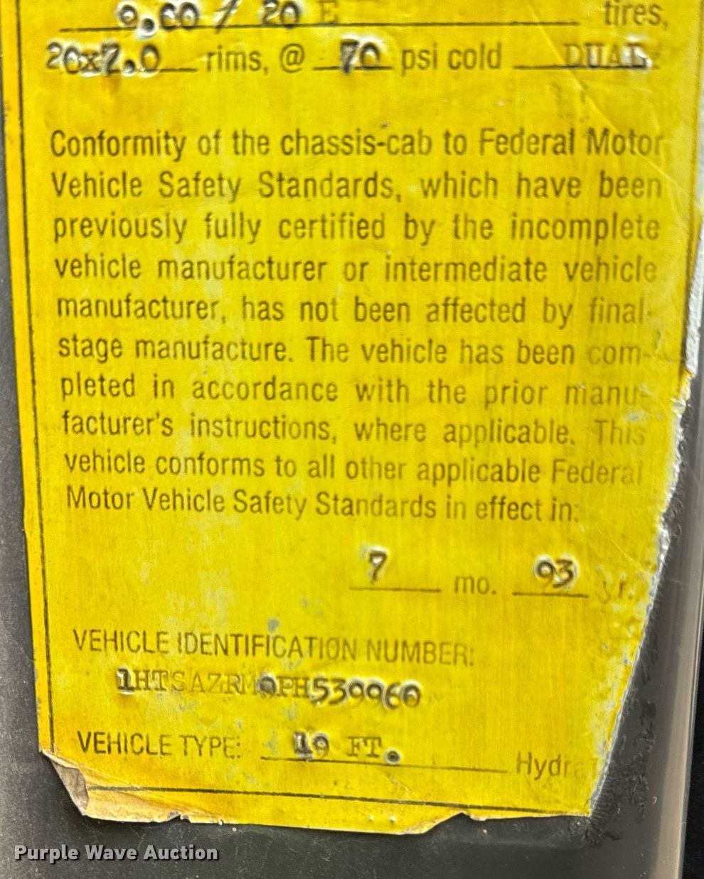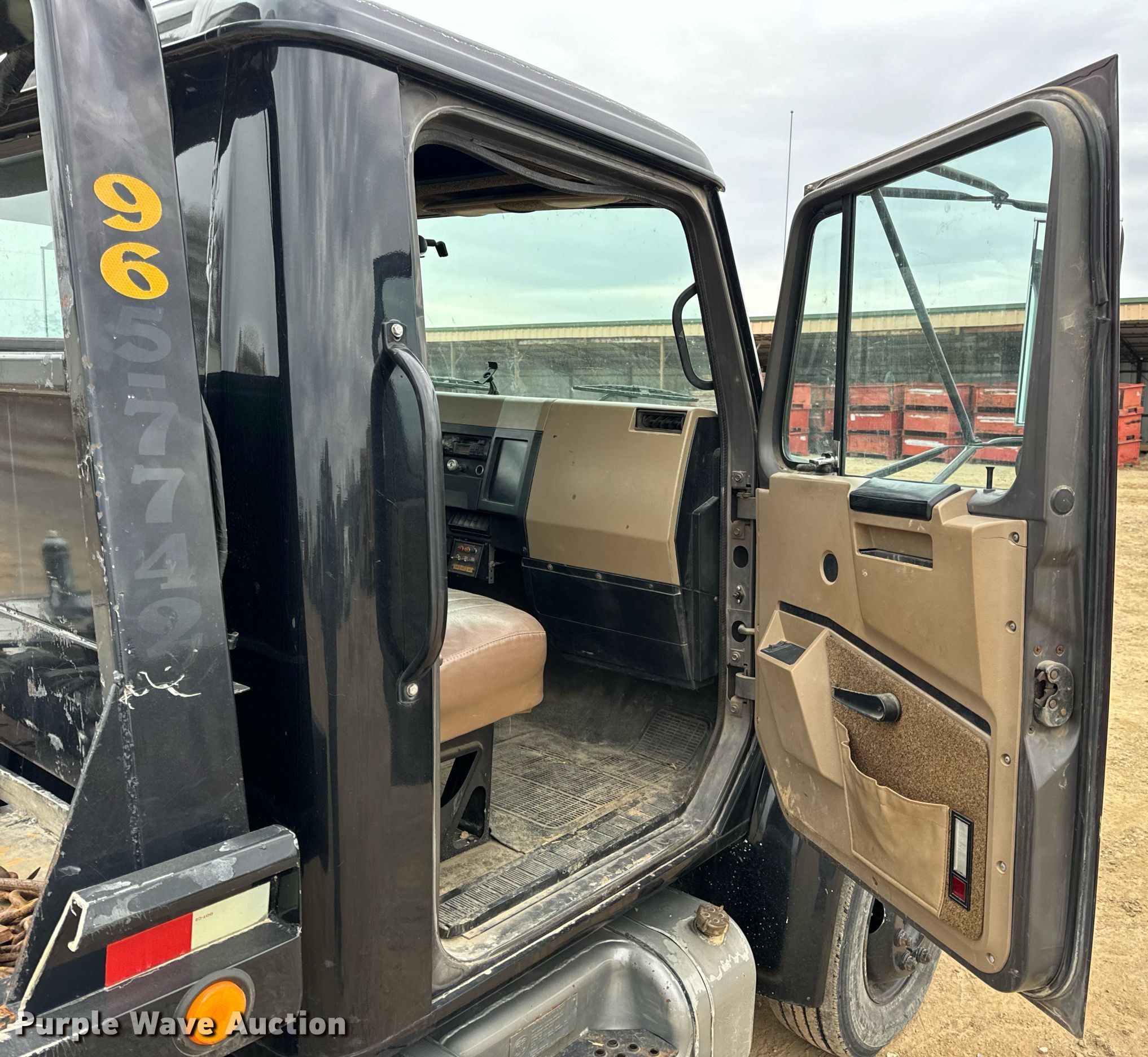 1993 International 4600 rollback truck. Miles: 264,089 on odometer, VIN: 1HTSAZRM9PH539960. Engine International, Cylinders: 8, Fuel type: Diesel. Transmission Spicer, Manual, Speed: 5. Chassis Axles: Single, Suspension: Spring, Brakes: Hydraulic, PTO, GVWR: 21,440 lbs. Interior AC, Heat, Power windows, Auxiliary controls. Features Rollback bed Jerr-Dan Corp. 19AEL, Serial: 27047, 19' L x 90" W, Ram: Double, Winch, Underlift. Notes Dash warning indicator: Brake. Missouri title. Title distribution may be delayed up to 14 days from verification of funds. S&A Equipment & Builders. Fulton, MO 65251