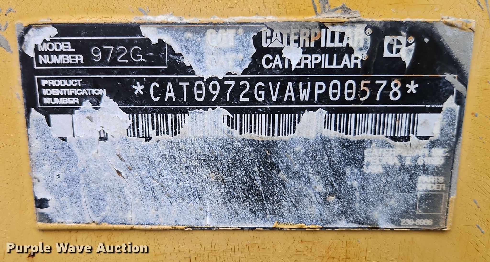 Purple Wave is selling a used Wheel Loader in Kansas. This item is a Caterpillar 972G wheel loader with the following: Hours: 26,294 on meter, Serial: CAT0972GVAWP00578, Unit #: 40-043