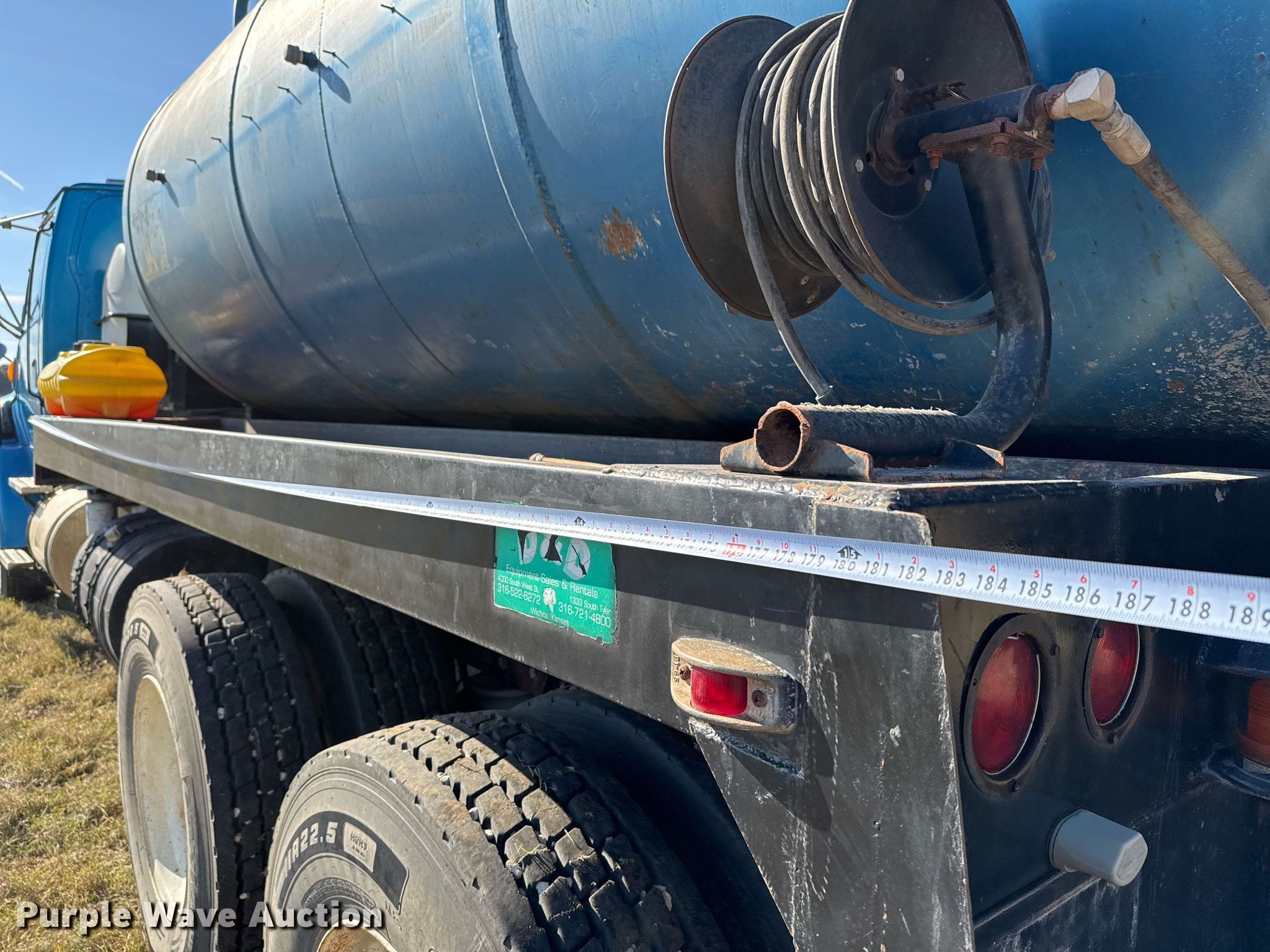 1998 Ford hydrovac truck. Miles: 386,451 on odometer, VIN: 1FDYA96W3WVA30634. Engine Caterpillar 3406, Serial: 6TS19586, Displacement: 14.6L, Cylinders: 6, Fuel type: Diesel, HP: 475, kW: 354. Transmission Eaton Fuller Roadranger, Manual, Speed: 10. Chassis Double frame, Axles: Tandem, Suspension: Air, Brakes: Air, PTO, Wet kit, GVWR: 52,350 lbs, Wheelbase: 220". Interior AC, Heat, Cruise control. Features Tank bed Top hatches: 1, Rear outlet: 4", Water pump General Pump T1321, Hose reel Rear, Manual. Tires Size: 11R22.5. Notes AC issues, does not blow cold, Water pump missing, Dash warning indicator: ABS. Texas title. Title distribution may be delayed up to 14 days from verification of funds. P&F Contracting. Valley Mills, TX 76689