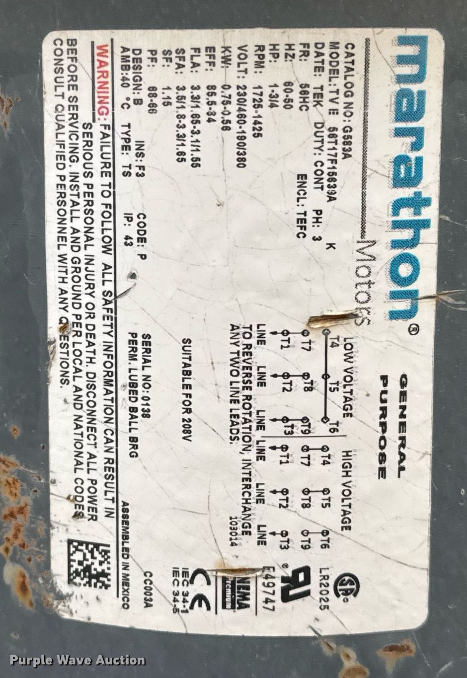 Purple Wave is selling a used Quarry or Aggregate Attach. in Texas. This item is a Tons Per Hour flocculant mixing unit with the following: Marathon, Serial: 0138, Volts: 230/460, Phase: Three