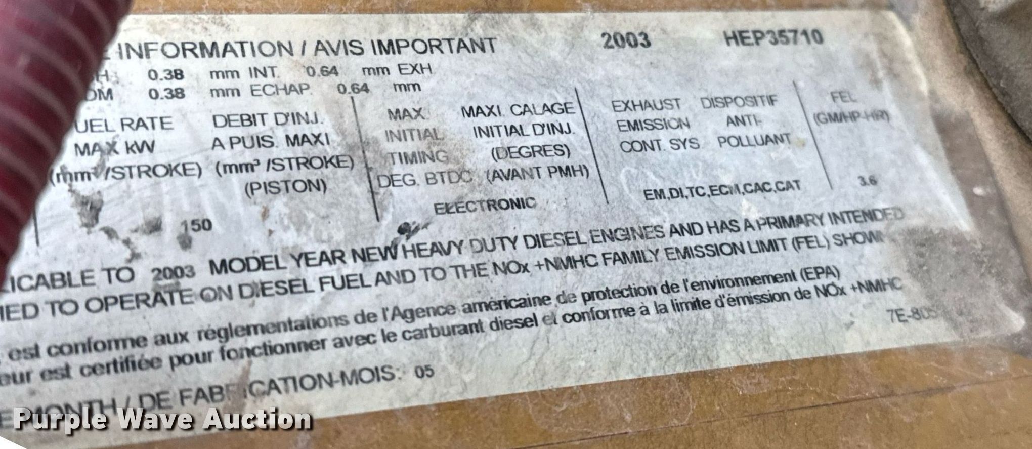2004 Freightliner Business Class M2 dump truck. Miles: 125,080 on odometer, Hours: 8,734 on meter, VIN: 1FVHCYAK54HM37982, Unit #: DT3. Engine Caterpillar 3126, Serial: HEP35710, Displacement: 7.2L, Cylinders: 6, Fuel type: Diesel, HP: 275. Transmission Allison, Automatic. Chassis Axles: Tandem, Differential lock: Inter-axle, Suspension: Air Dump valves, Brakes: Air, PTO, GVWR: 59,220 lbs FAWR: 13,220 lbs, IAWR: 23,000 lbs, RAWR: 23,000 lbs. Interior AC, Heat, Cruise control, Brake controller. Features Dump bed Heil, 13' 6" L x 96" W, Side height: 42", Bed type: Steel, Ram: Single, End gate: Air operated. Tires Size: 11R22.5. Texas title. Title distribution may be delayed up to 14 days from verification of funds. Crossroads Utility Services LLC. Round Rock, TX 78665