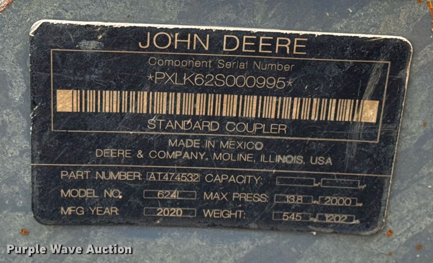 Purple Wave is selling a used Wheel Loader in Texas. This item is a 2021 John Deere 624L loader with the following: Hours: 6,772 on meter, Serial: 1DW624LZKMF708684, Unit #: WL20084