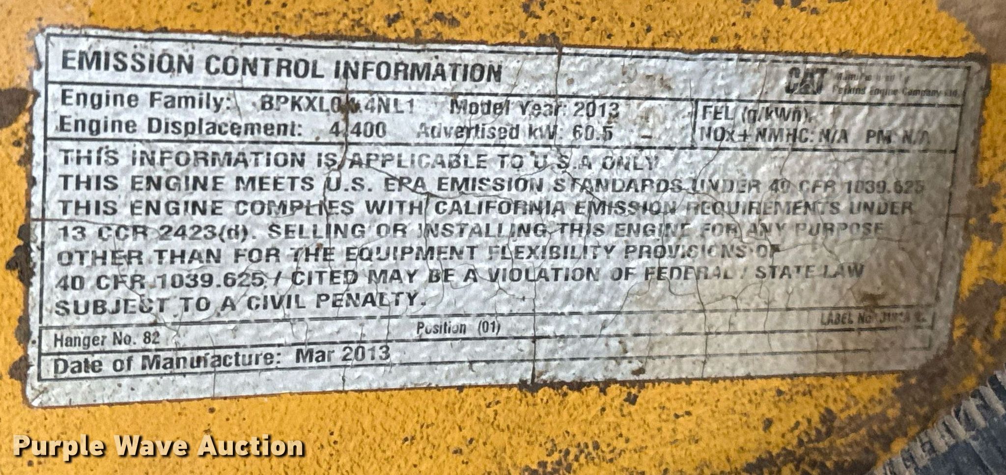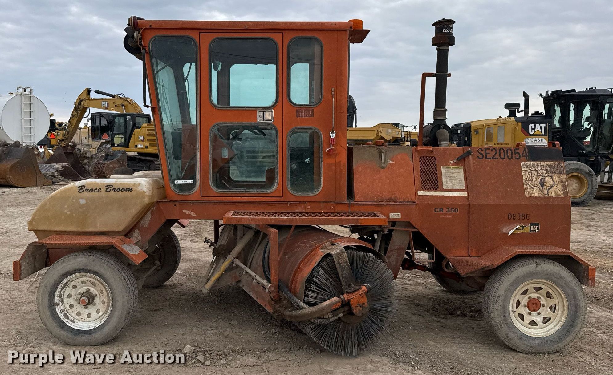 2013 Broce CRT350 broom. Hours: 922 on meter, Serial: 408380, Unit #: SE20054. Engine Caterpillar C4.4, Serial: 44615396, Displacement: 4.40L, Cylinders: 4, Fuel type: Diesel. Transmission Hydrostatic, Speed: 2. Chassis Brakes: Hydraulic. Operators station Enclosed cab, AC, Heat. Features Broom Width: 96", Water spray system. Tires Size: 225/75R16. Notes Hydraulic pump issues, Brake issues , Unknown operating condition of water spray system. Cash Construction Co.. Pflugerville, TX 78660