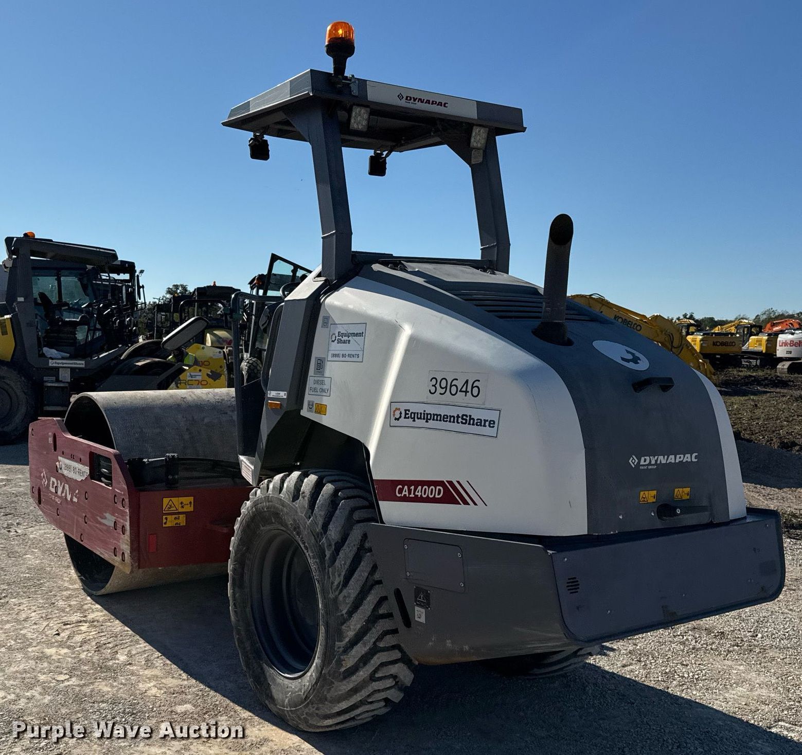 Purple Wave is selling a used Single Drum Roller Compactor in Texas. This item is a 2019 Dynapac CA1400D single drum vibratory roller with the following: Hours: 620 on meter, Serial: 10000169HKA024788