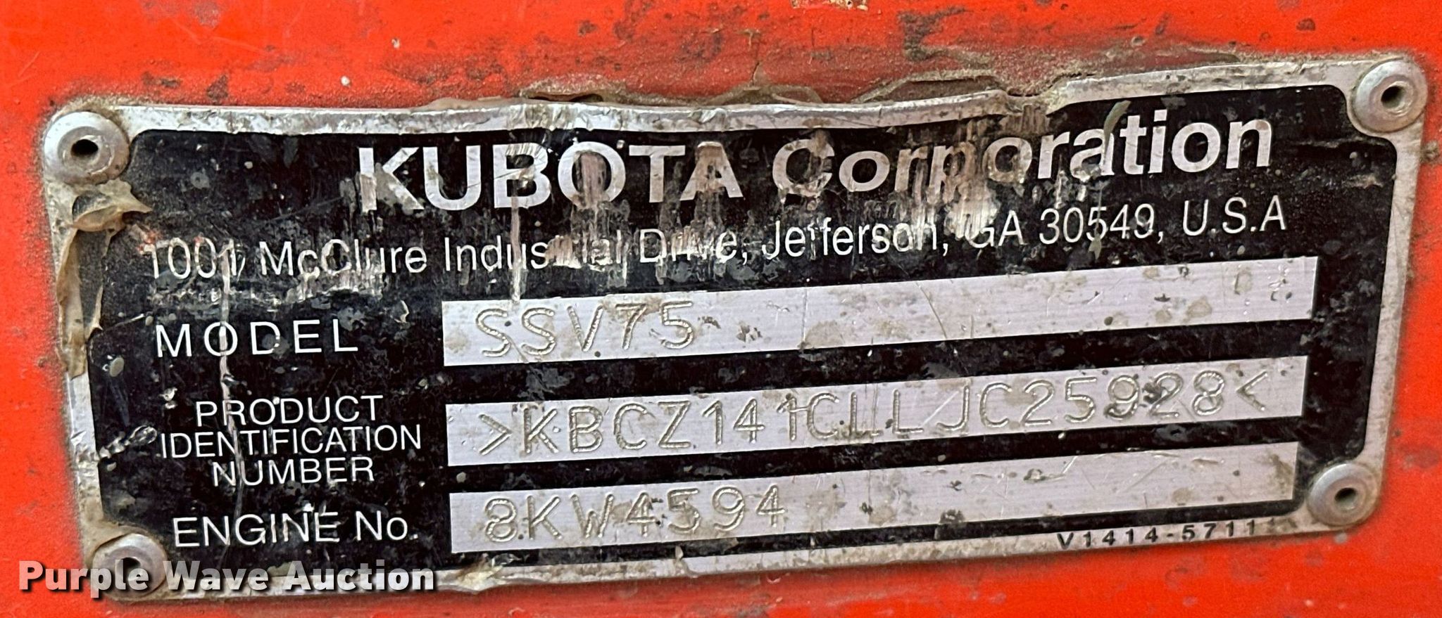 Purple Wave is selling a used Skid Steer Loader in Oklahoma. This item is a 2020 Kubota SSV75 skid steer loader with the following: Hours: 1,565 on meter, Serial: KBCZ141CLLJC25928