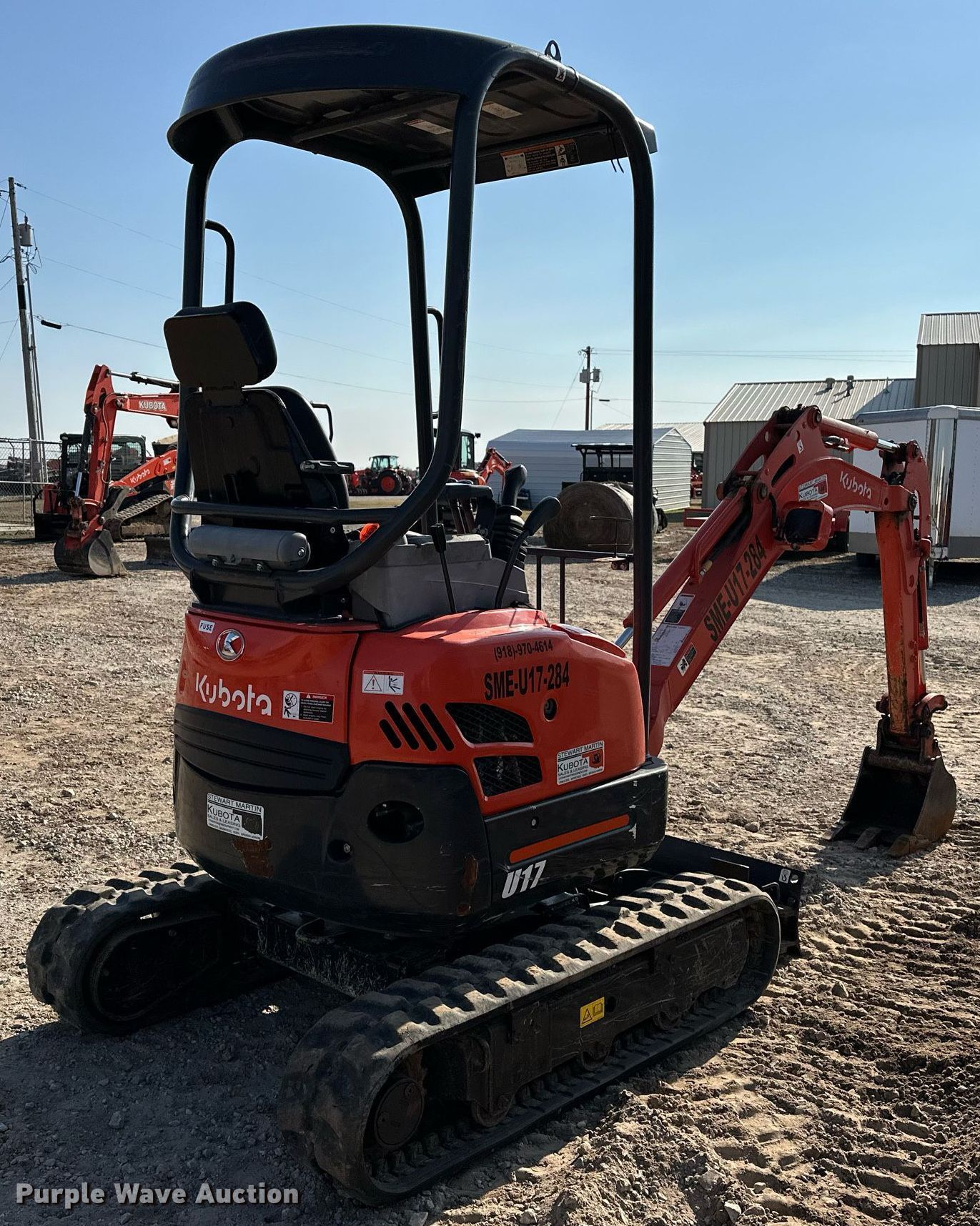 Purple Wave is selling a used Mini Excavator in Oklahoma. This item is a 2022 Kubota U17 mini excavator with the following: Hours: 619 on meter, Serial: KBCAZ24CEN3C55284