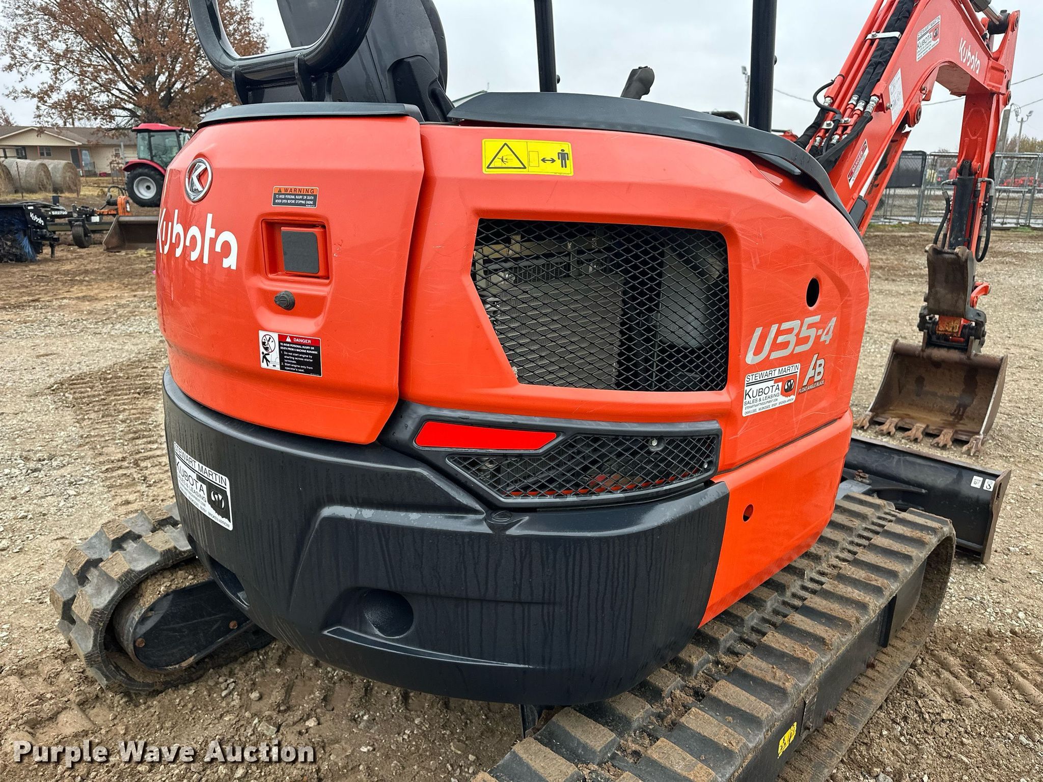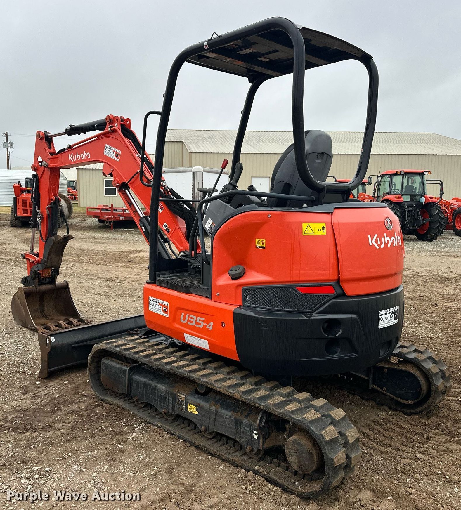 Purple Wave is selling a used Mini Excavator in Oklahoma. This item is a 2021 Kubota U35-4 mini excavator with the following: Hours: 453 on meter, Serial: KBCCZ78CVL3K18904