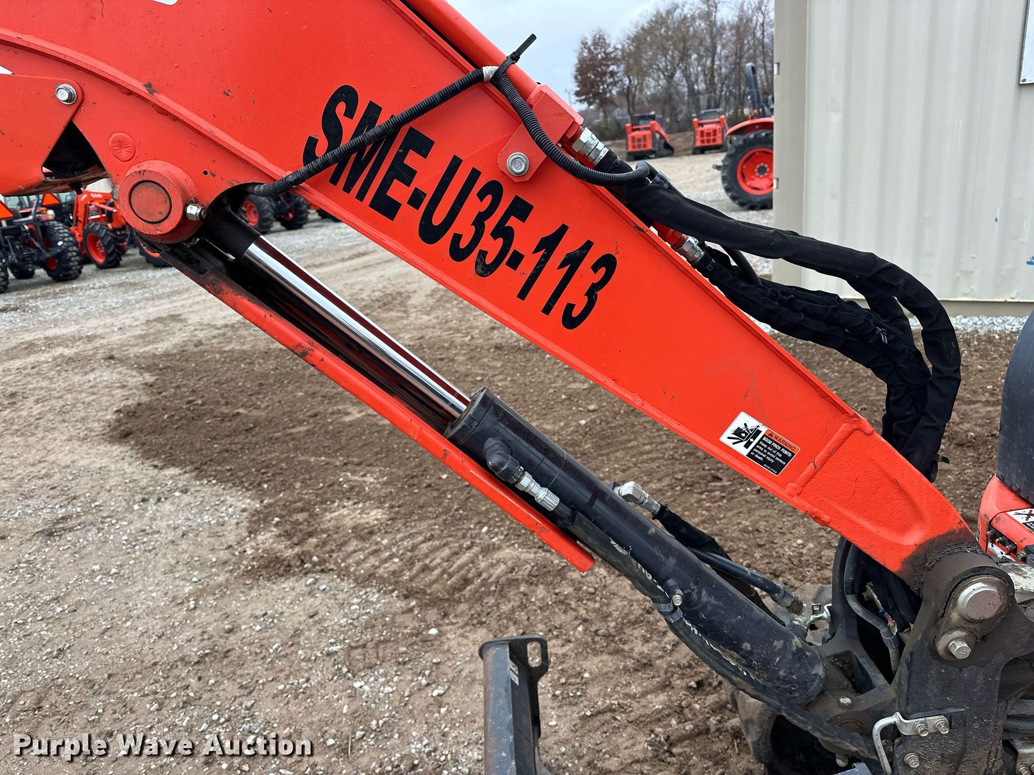 Purple Wave is selling a used Mini Excavator in Oklahoma. This item is a 2022 Kubota U35-4 mini excavator with the following: Hours: 668 on meter, Serial: KBCCZ78CAN3F22113