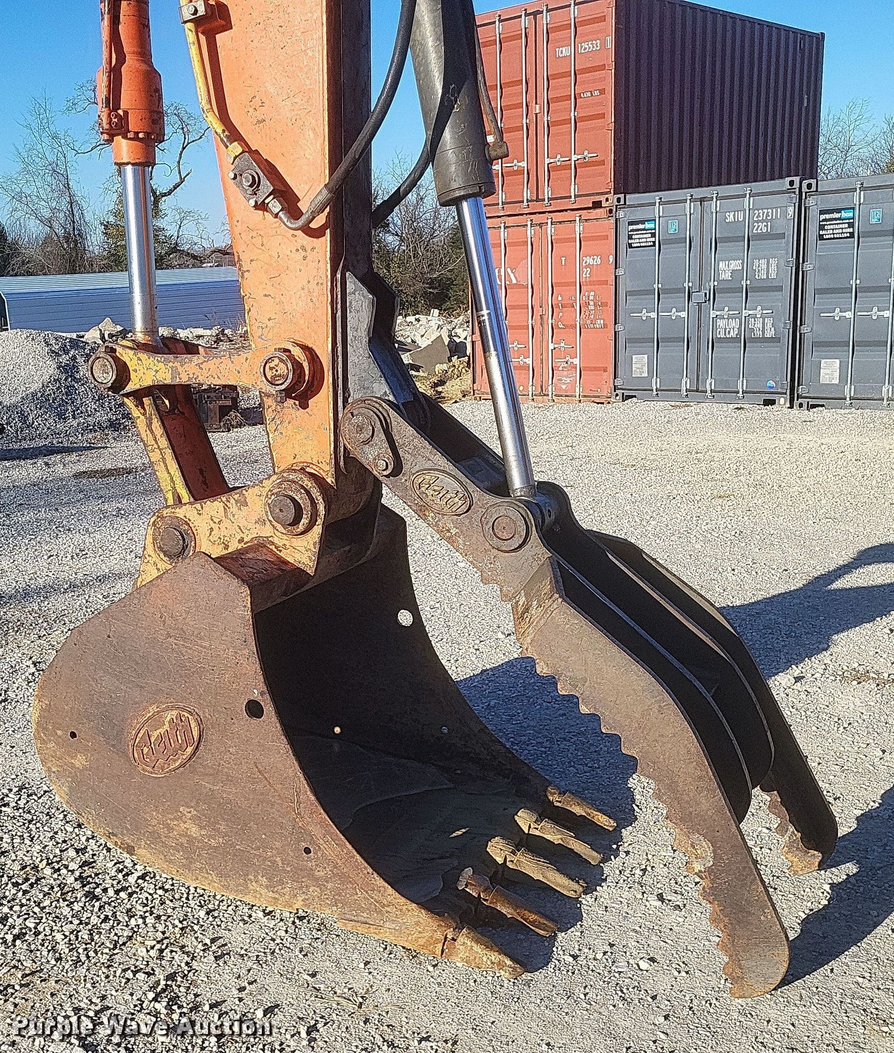2006 Hitachi ZAXIS 135US excavator. Hours: 9,654 on meter, Unit #: G9301. Engine Isuzu CC-4BG1TC, Displacement: 4,329 cc, Cylinders: 4, Fuel type: Diesel. Transmission Hydrostatic, Two speed travel. Operators station Enclosed cab, AC, Heat. Features Auxiliary hydraulics, Counter weights, Removable, Boom Standard, Stick Stick length: 8' 3", Thumb: Hydraulic, Bucket Geith, Width: 36", Teeth: 5, Bucket Esco, Width: 60", Cutting edge: Bolt-on. Tracks Width: 28", Steel, Grouser pads: Triple. Notes Glass cracked, Front glass missing, Non-operational AC. Geringer Construction LLC. Perryville, MO 63775