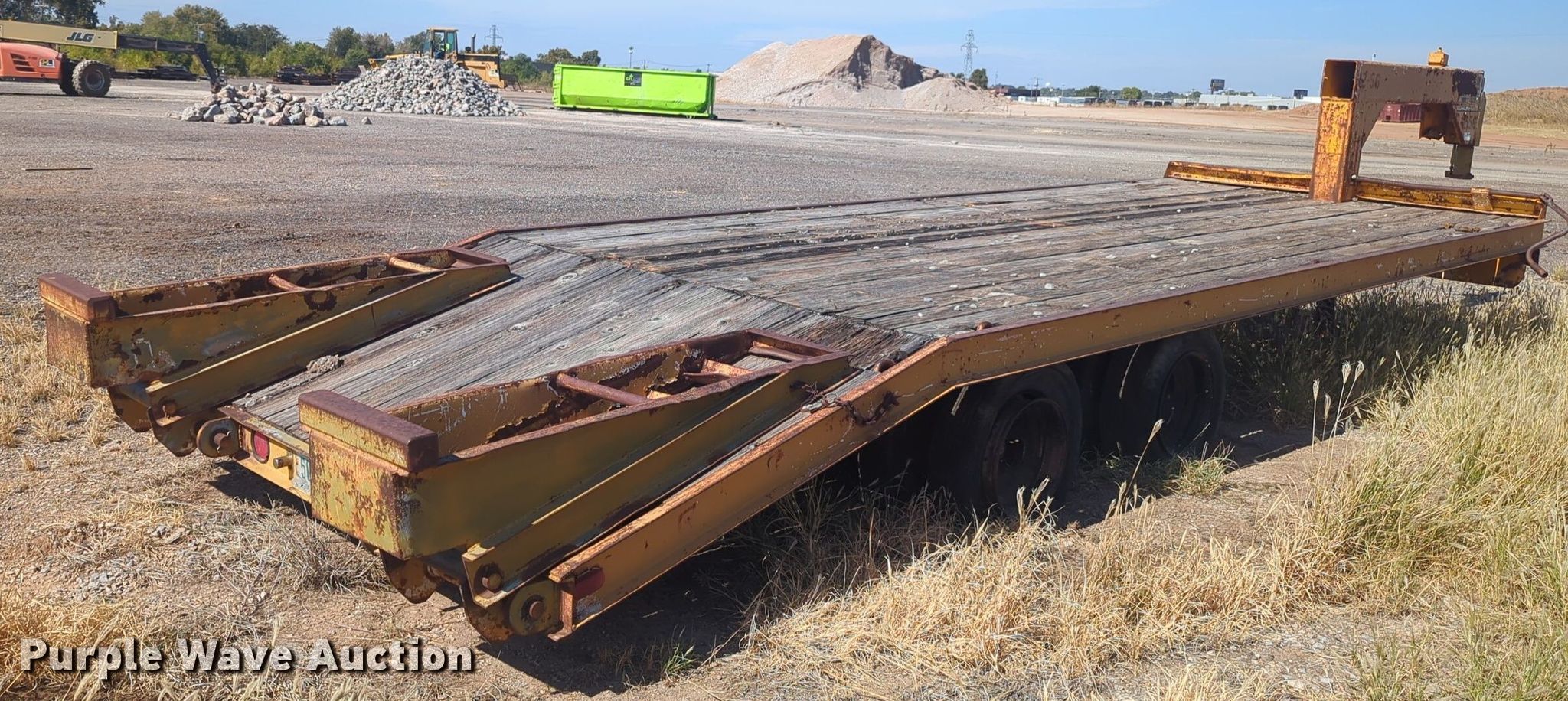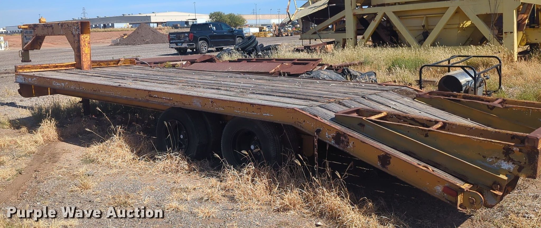 1977 Trail King equipment trailer. VIN: 1NDR71777, Unit #: 12-56. Dimensions Overall: 31' L x 96" W, Deck: 19' L x 96" W, Tail length: 5', Ramps: Manual Length: 60". Features Deck type: Wood. Chassis Hitch: Gooseneck, Landing gear: Single, Suspension: Spring, Axles: Tandem. Tires Steel wheels, Size: 235/75R16. Oklahoma title. Title distribution may be delayed up to 14 days from verification of funds. Haskell Lemon Construction Co.. Oklahoma City, OK 73108