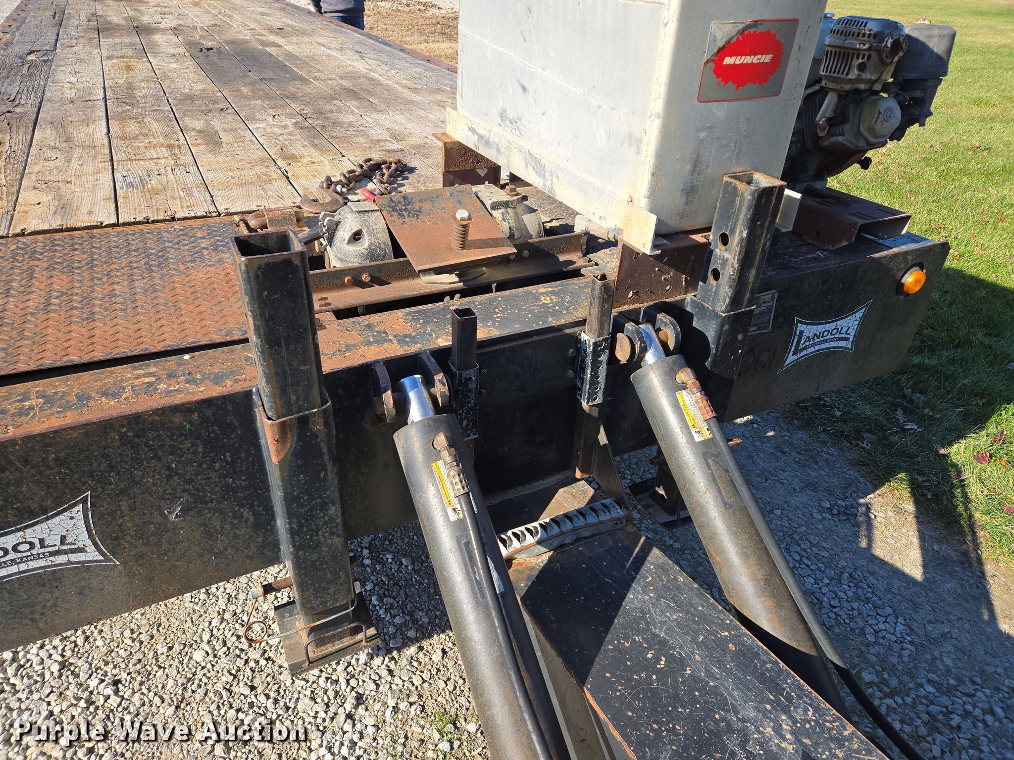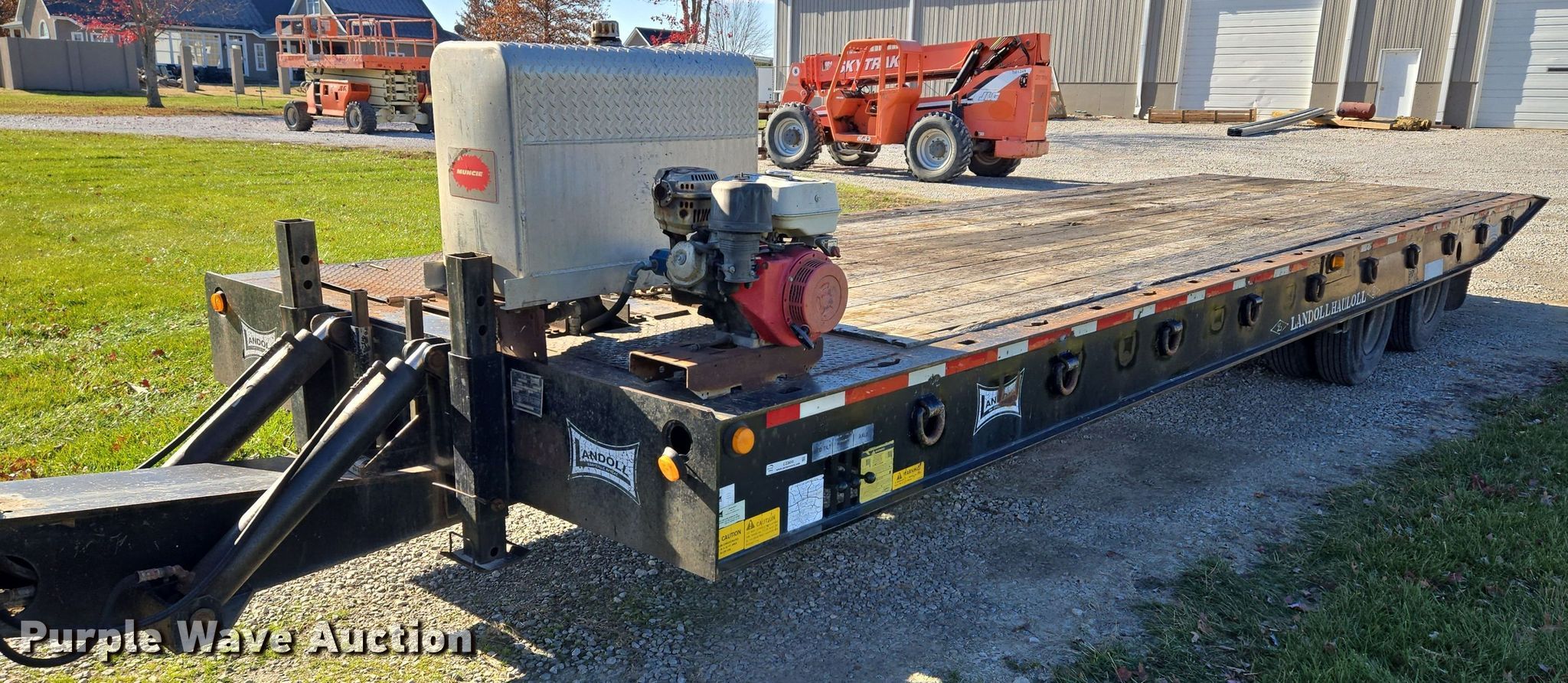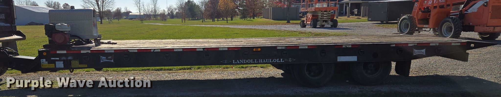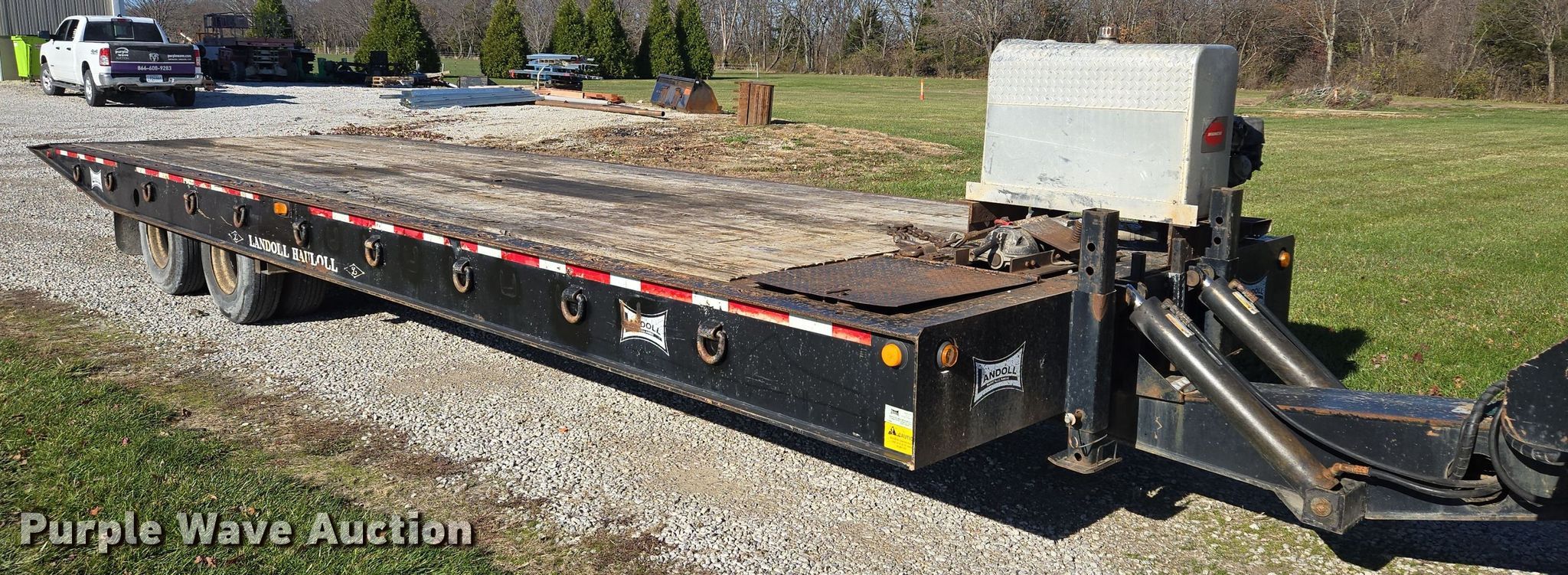 1997 Landoll tilt deck equipment trailer. VIN: 1LH45AJH2V1009036. Dimensions Overall: 36' 6" L x 102" W, Deck: 31' L x 102" W, Deck height: 38". Features Deck type: Wood, Self-contained hydraulics, Winch Braden, Hydraulic controls: Manual. Chassis Hitch: Pintle, Landing gear: Dual, Suspension: Spring, Brakes: Air, Axles: Tandem Sliding, GVWR: 50,000 lbs. Tires Steel wheels, Size: 10R17.5. Notes Truck not included. Missouri title. Title distribution may be delayed up to 14 days from verification of funds. Lone Jack, MO 64070
