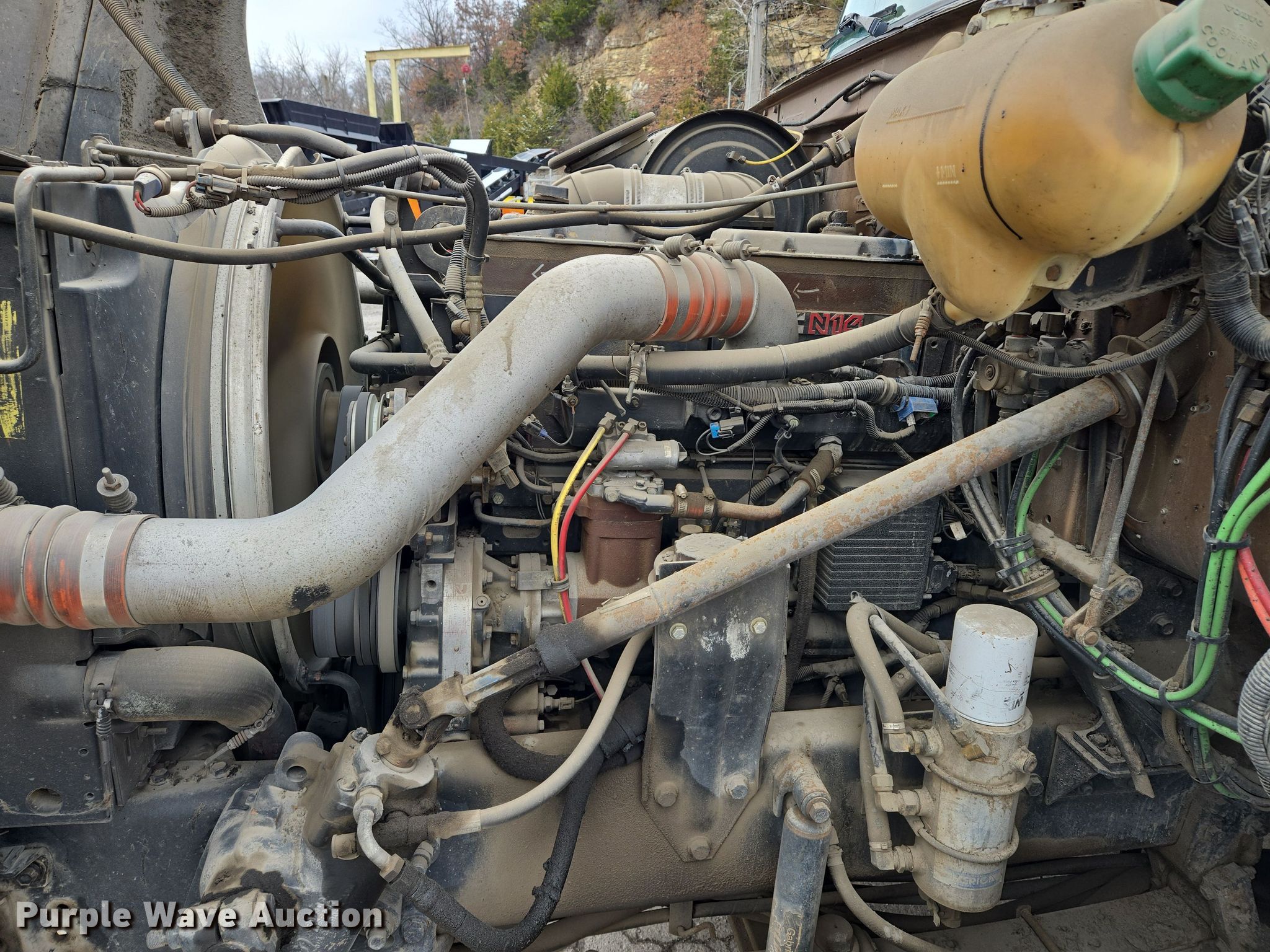 1994 White GMC WG oil distributor truck. Miles: 386,663 on odometer, VIN: 4V1JDBJF3RR830652. Engine Cummins N14, Displacement: 14.0L, Cylinders: 6, Fuel type: Diesel. Transmission Eaton Fuller, Manual, Speed: 9. Chassis Axles: Tandem, Differential lock: Inter-axle, Suspension: Spring, Brakes: Air, PTO. Interior AC, Heat, Cruise control, Auxiliary controls. Features Bed / tank E.D Etnyre Cent, Serial: 4V, Capacity: 3,000 gallons, 16' L x 99" W, Burner: LPG, In-cab controls, Spray boom Width: 16', Folding, Nozzles: 48, Etnyre control board. Tires Front: 315/80R22.5, Rear: 11R22.5. Notes Unknown operating condition of boom, Dash warning indicator: Check engine. Missouri title. Title distribution may be delayed up to 14 days from verification of funds. Vance Bros Inc.. Kansas City, MO 64130