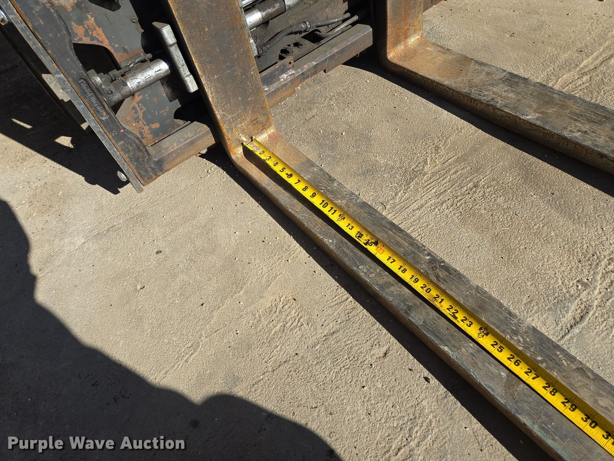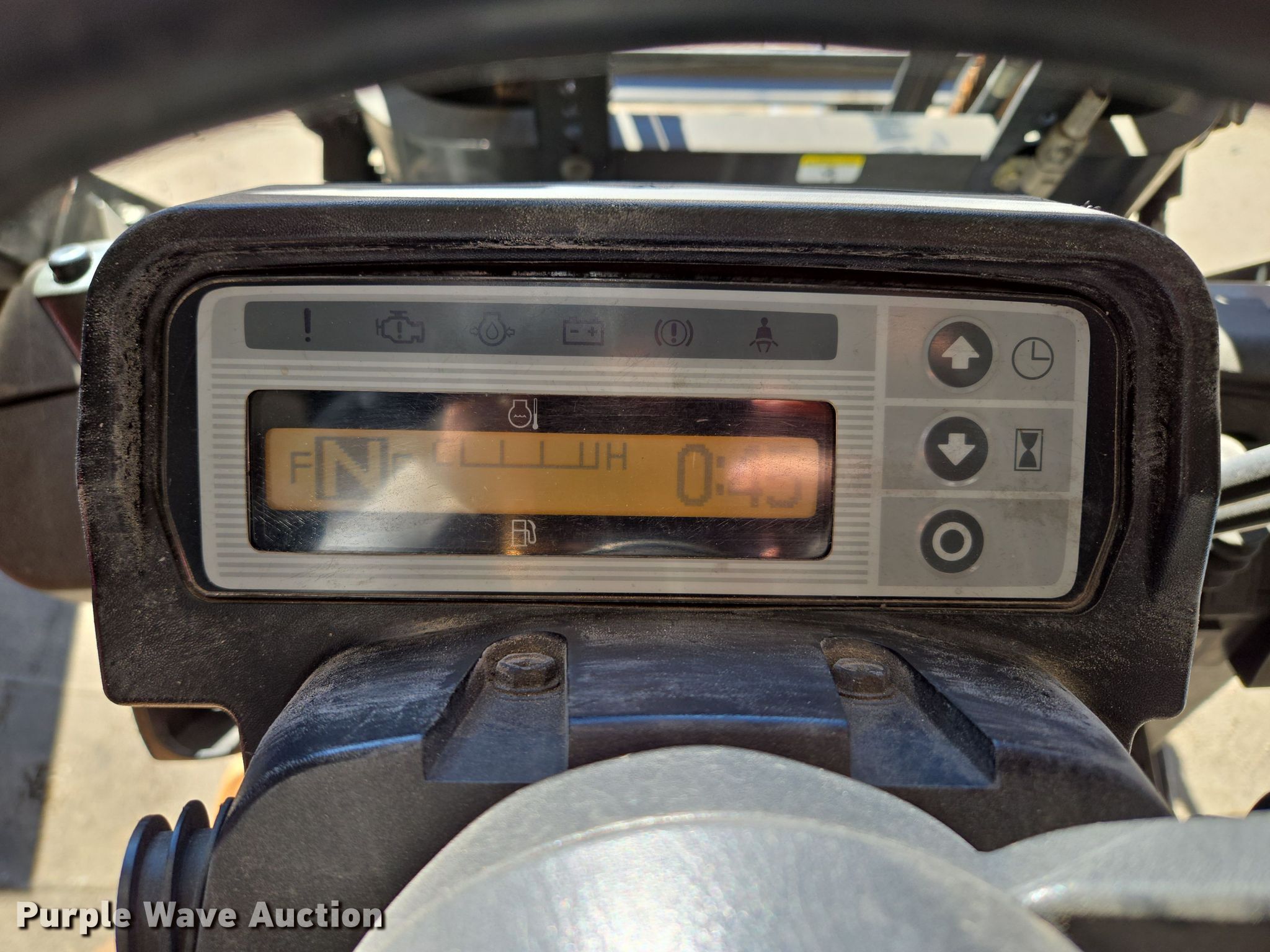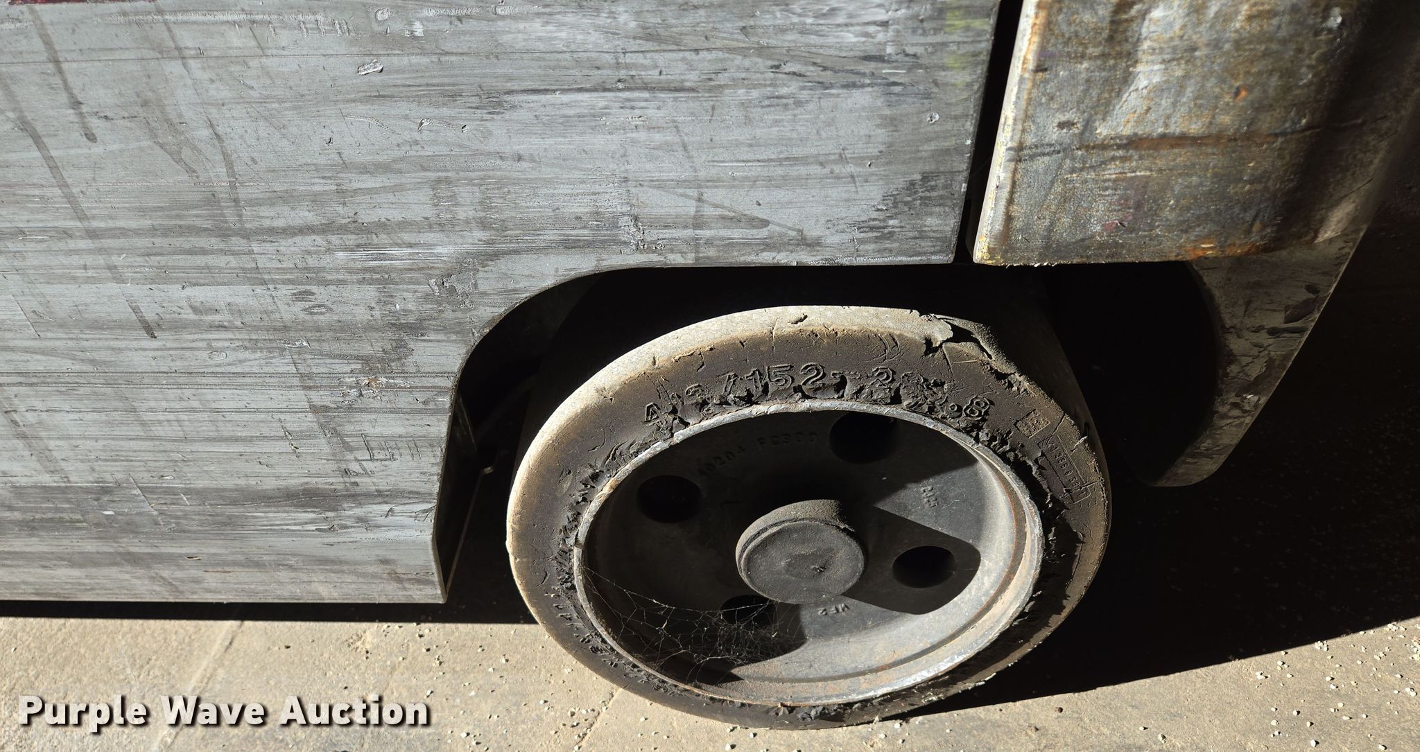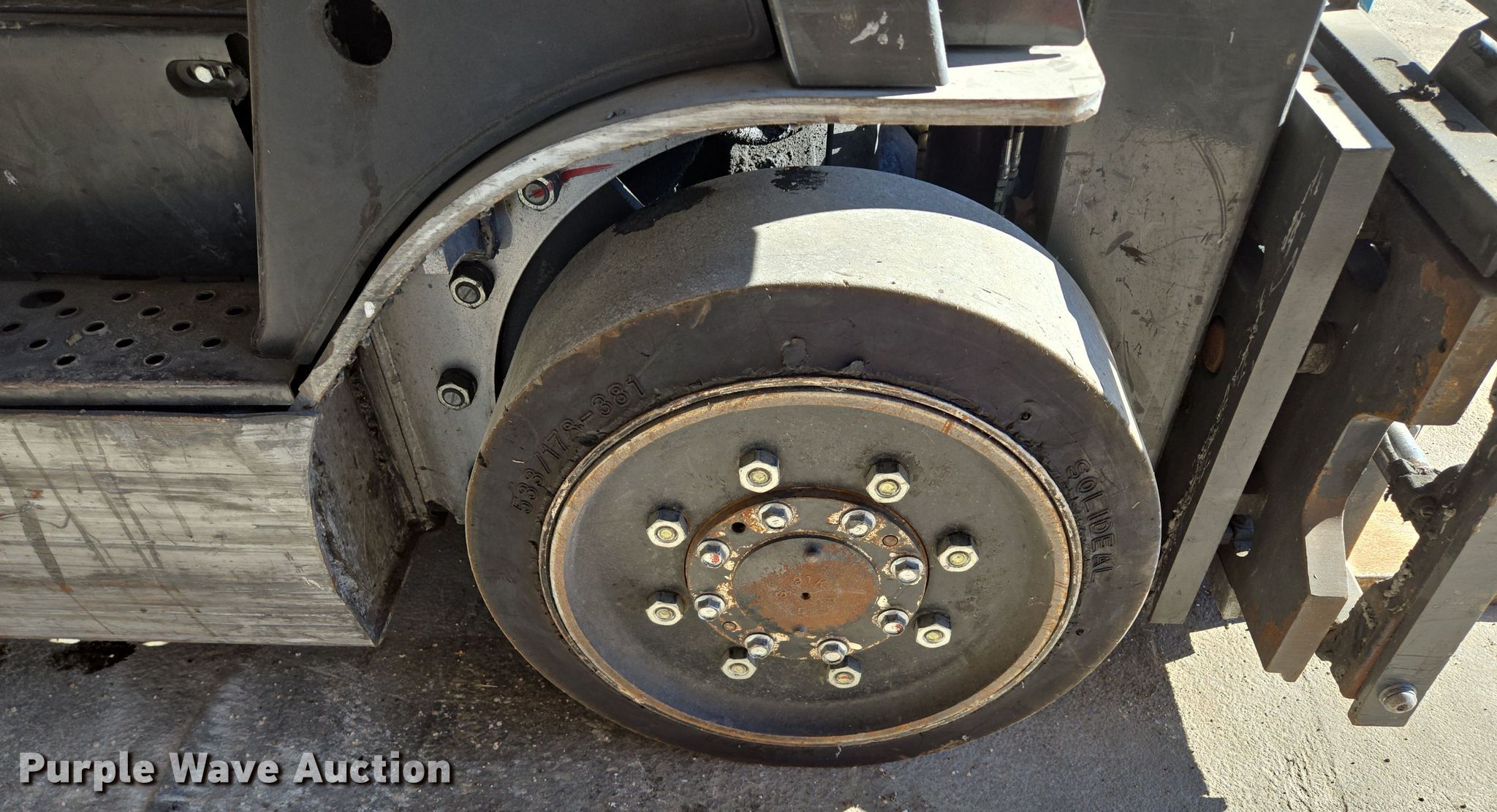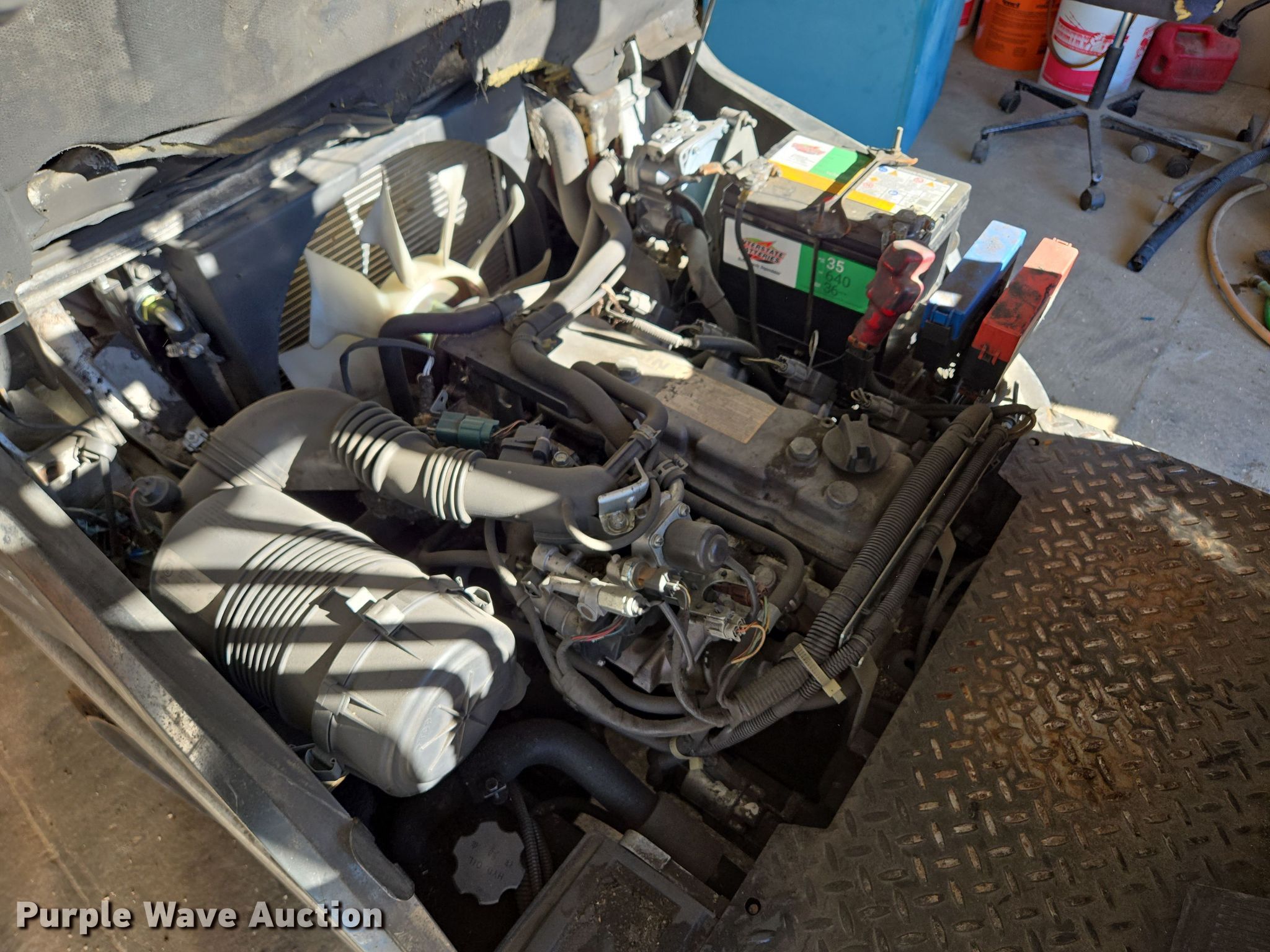Nissan 40 forklift. Hours: 15,263 on meter, Serial: G409681. Engine Nissan CNFXB02.147D, Displacement: 2.1L, Cylinders: 4, Fuel type: LPG LP bottle: Not included. Transmission Powershift. Operators station Canopy, Onboard scale system. Features Maximum lift capacity: 4,000 lbs, Maximum lift height: 80", Mast stages: 2, Side shift, Mast tilt, Fork length: 40". Tires Front: 533/17-381, Rear: 16 1/4 x 6 x 11 1/4, Solid. Notes Scale monitor missing. Higginsville, MO 64037