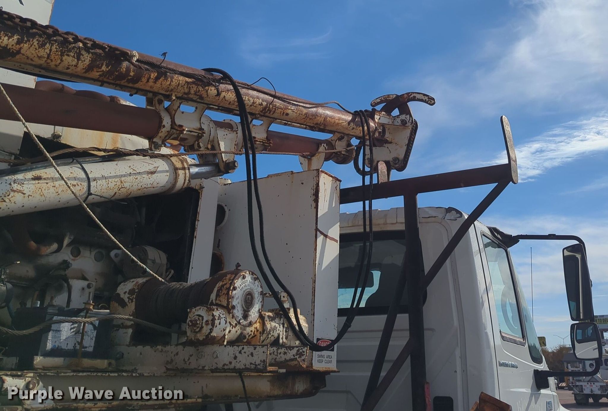 2002 International 4300 pressure digger truck. Miles: 78,510 on odometer, VIN: 1HTMMAAN92H549676. Engine international DT466, Displacement: 7.6L, Cylinders: 6, Fuel type: Diesel. Transmission International 6 Plus, Manual, Speed: 7. Chassis Axles: Single, Suspension: Spring, Brakes: Air. Interior AC, Heat, Cruise control, Auxiliary controls. Features Bed 12' L x 90" W, Engine Cylinders: 6, Fuel: Gas, Boom Boom controls Ground, Pressure digger, Pole guide, Auger Diameter: 16".. Tires Size: 11R22.5. Oklahoma title. Title distribution may be delayed up to 30 days from verification of funds. Bennett Construction, Inc.. Oklahoma City, OK 73121