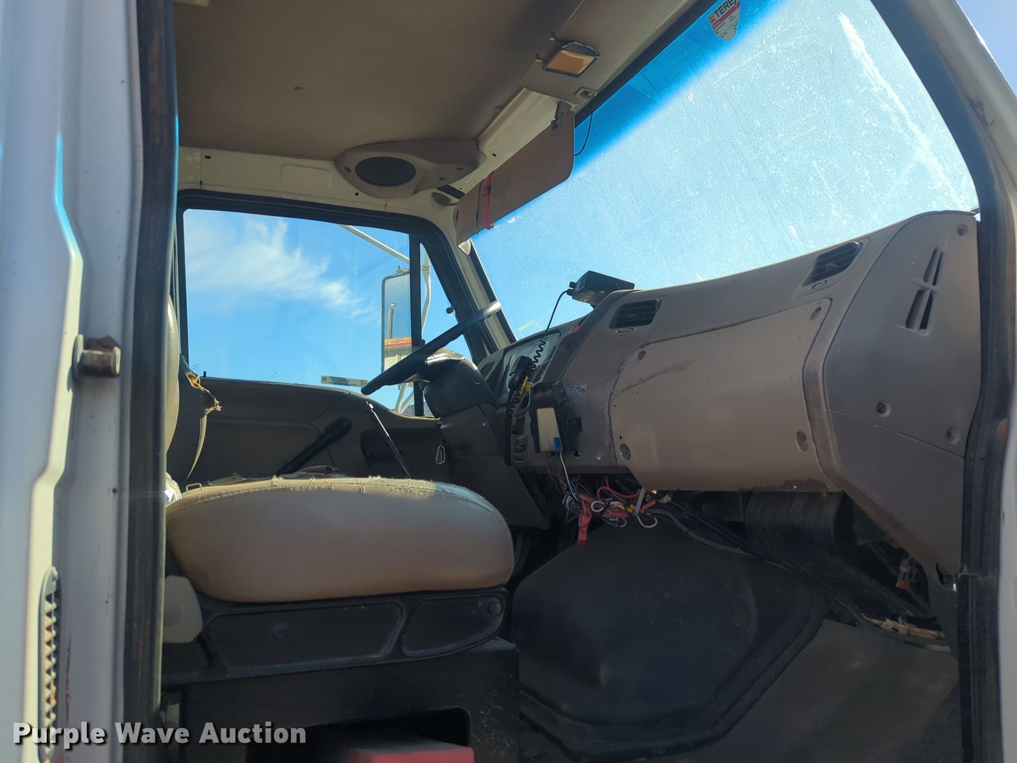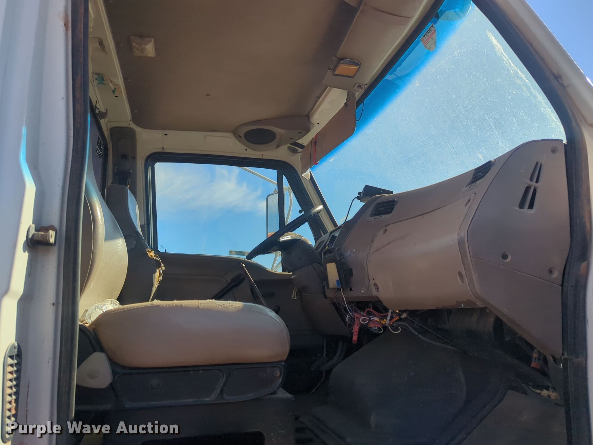 2001 Sterling M7500 Acterra digger derrick truck. Miles: 232,401 on odometer, VIN: 2FZAAKBV41AJ34461. Engine Cummins ISB225, Serial: 46057828, Displacement: 5.9L, Cylinders: 6, Fuel type: Diesel. Transmission Spicer, Manual, Speed: 7. Chassis Axles: Single, Suspension: Spring, Brakes: Air, PTO, GVWR: 33,000 lbs. Interior AC, Heat, Cruise control, Auxiliary controls. Features Bed 15' L x 93" W, Boom Terex Commander l4045, Serial: 2010215771, Maximum lift capacity: 15,440 lbs, Maximum lift height: 36.6', Boom type: Telescopic, Boom controls: Platform/ basket, Material handler, Pole guide, Auger Diameter: 16".. Tires Size: 11R22.5. Notes Dash warning indicator: ABS. Oklahoma title. Title has a lien that will be released following the close of the auction. Title distribution may be delayed up to 30 days from verification of funds. Bennett Construction, Inc.. Oklahoma City, OK 73121