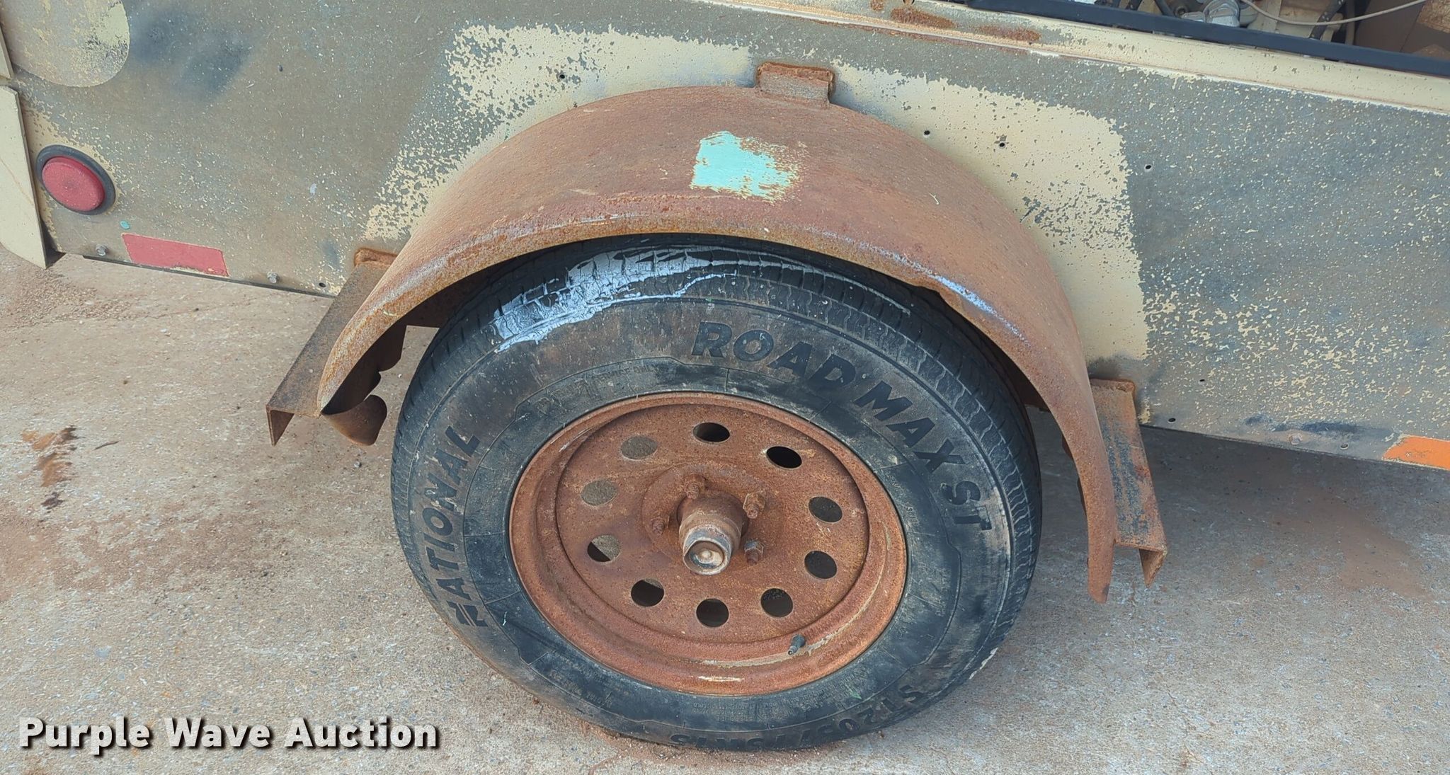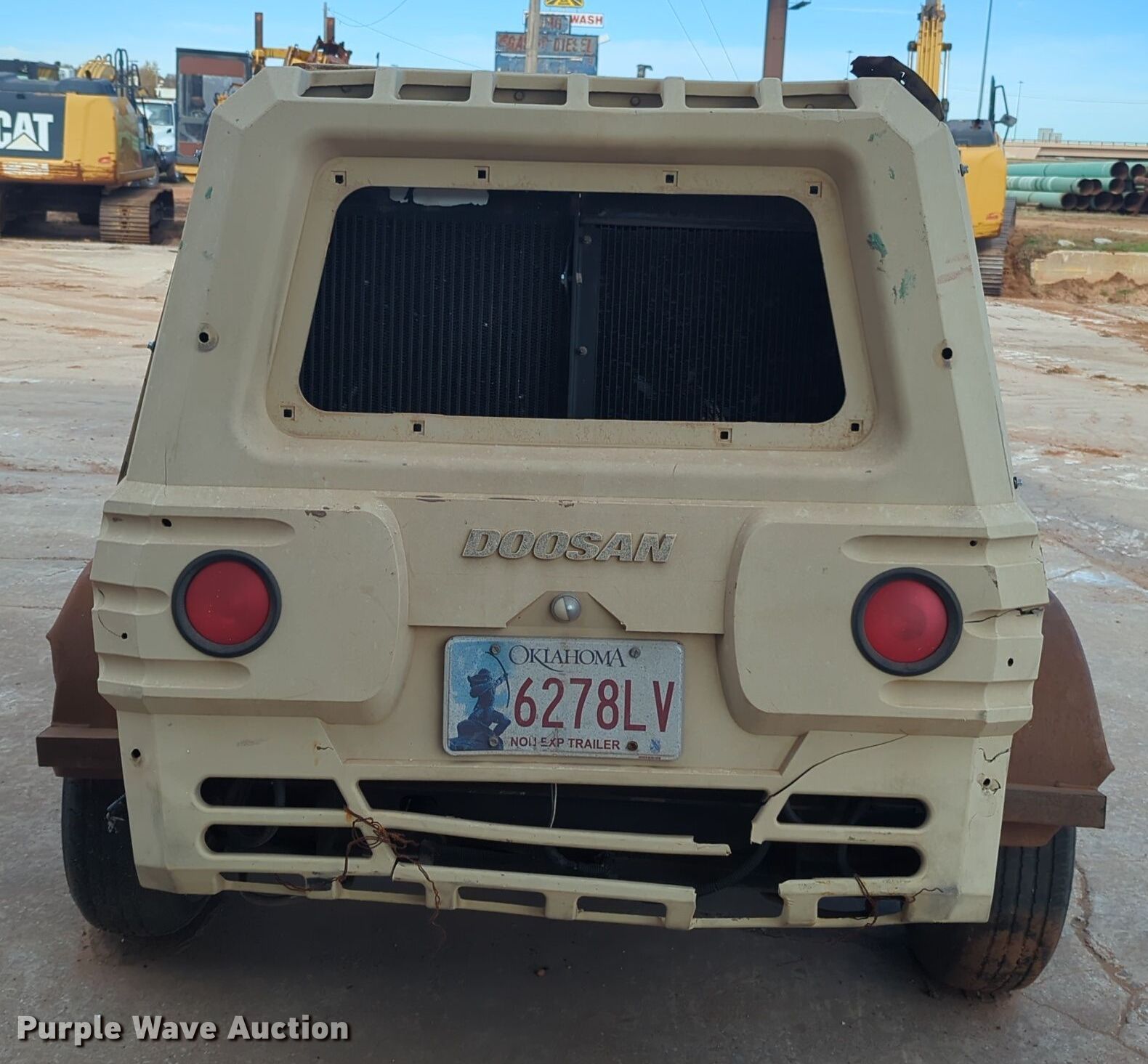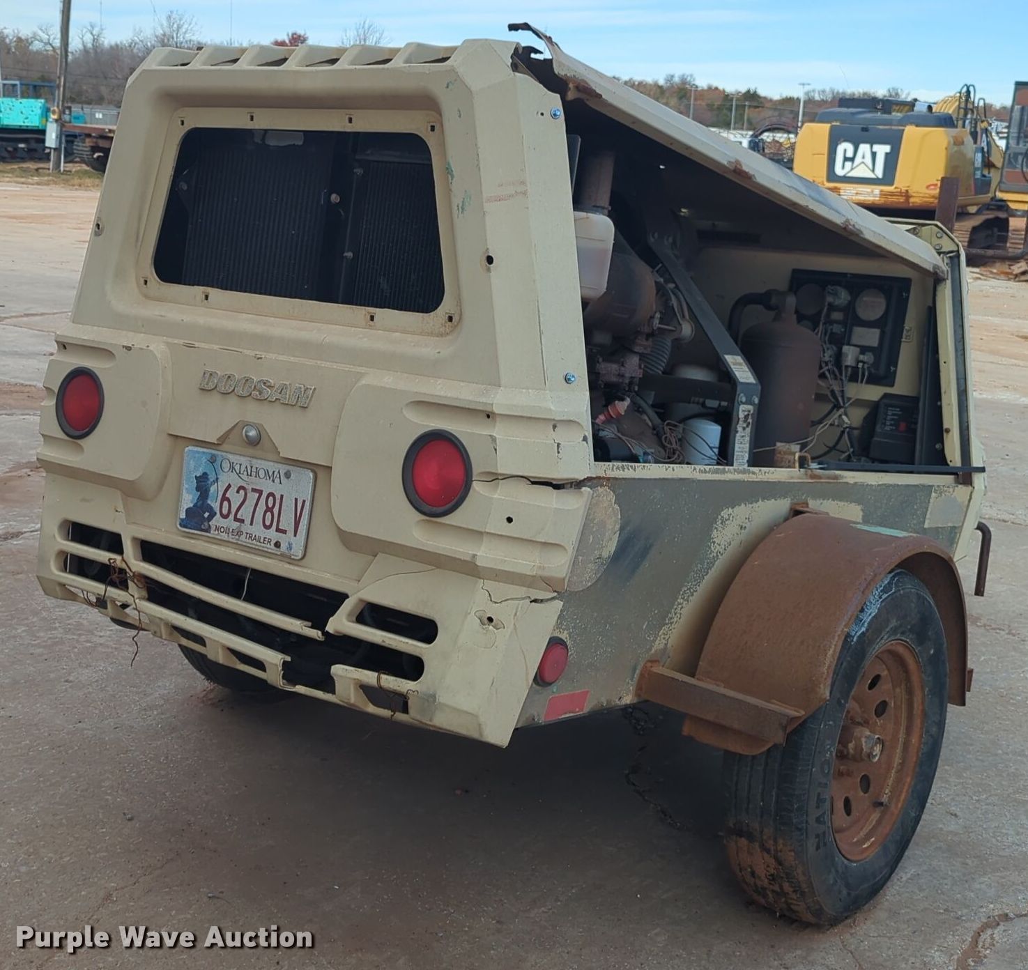 2013 Doosan P185 air compressor. VIN: 455483UFXD76, Hours: 98 on meter. Engine Cylinders: 4, Fuel type: Diesel. Features Generator Electric start, Fuel tank, Air compressor CFM: 185. Trailer 11' L x 72" W, Ball hitch size: 2", Suspension: Spring, Axles: Single. Notes Possible engine issues, idles, Side door missing. Oklahoma title. Title distribution may be delayed up to 30 days from verification of funds. Bennett Construction, Inc.. Oklahoma City, OK 73121