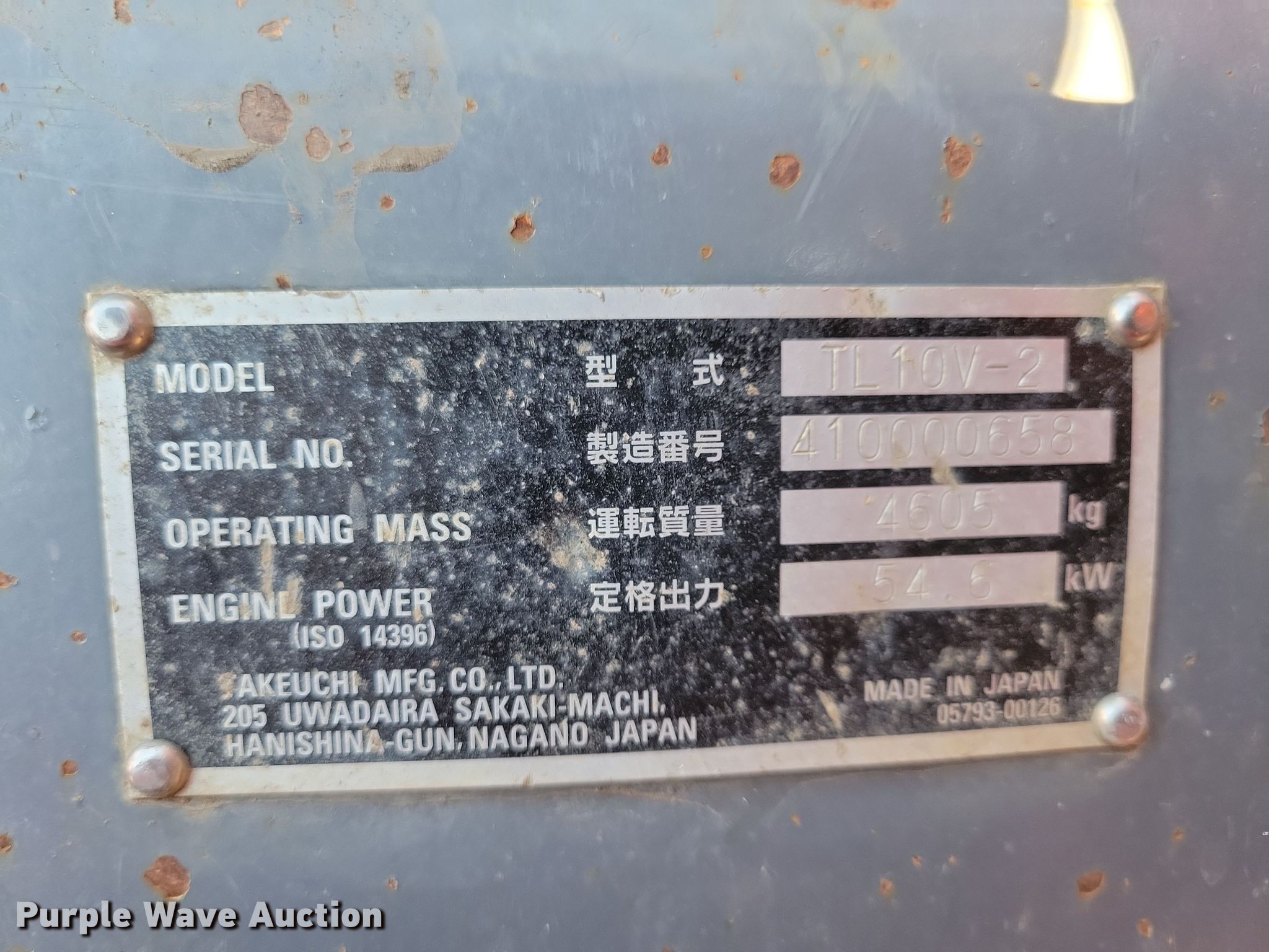 Purple Wave is selling a used Tracked Skid Steer Loader in South Dakota. This item is a 2017 Takeuchi TL10V2 tracked skid steer loader with the following: Hours: 1,791 on meter, Serial: 410000658
