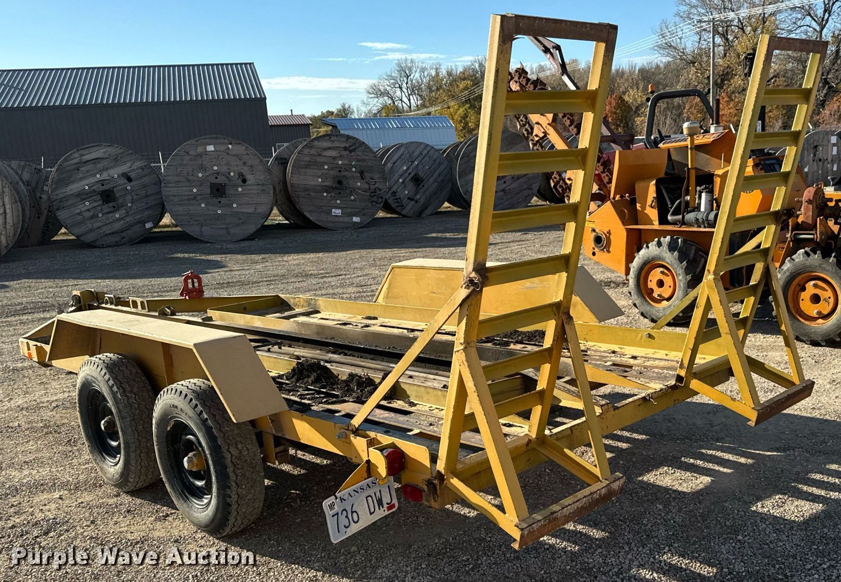 1981 Case DH4 trencher with trailer. Hours: 684 on meter, Serial: 1204096. Engine Mitsubishi, Cylinders: 4, Fuel type: Diesel. Transmission Hydrostatic, Four wheel drive. Operators station OROPS. Features Trencher Model: DH5, Serial: 1209668, Estimated dig depth: 82", Cutting width: 6", Teeth: Dirt, Manual crumber, Vibratory plow Model: P60, Serial: 1207389, Backfill blade Width: 72", Drill rods Approx. 14 Length: 10'.. Tires Size: 31x15.50-15. Notes Hydraulic leak. 1979 JFW W2DL utility trailer VIN: 6847. Dimensions Overall: 21' 6" L x 96" W, Deck: 14' L x 78" W, Ramps: Manual Length: 60". Features Deck type: Steel. Chassis Ball hitch: 2 5/16", Landing gear: Single, Suspension: Spring, Brakes: Electric, Axles: Tandem, GVWR: 10,000 lbs, GAWR: 10,000 lbs. Tires Steel wheels, Size: 7.00-15. Kansas title. Moundridge, KS 67107