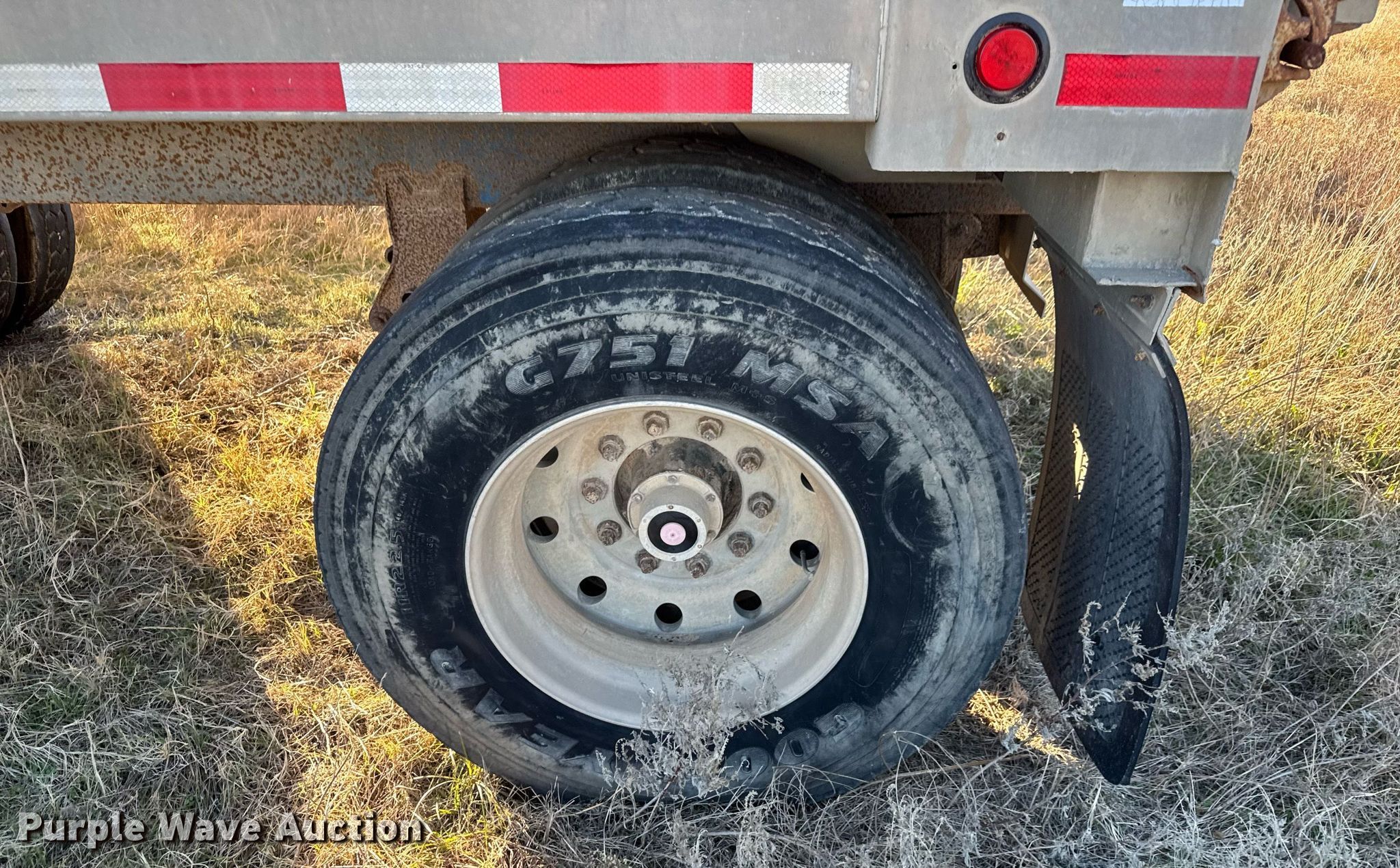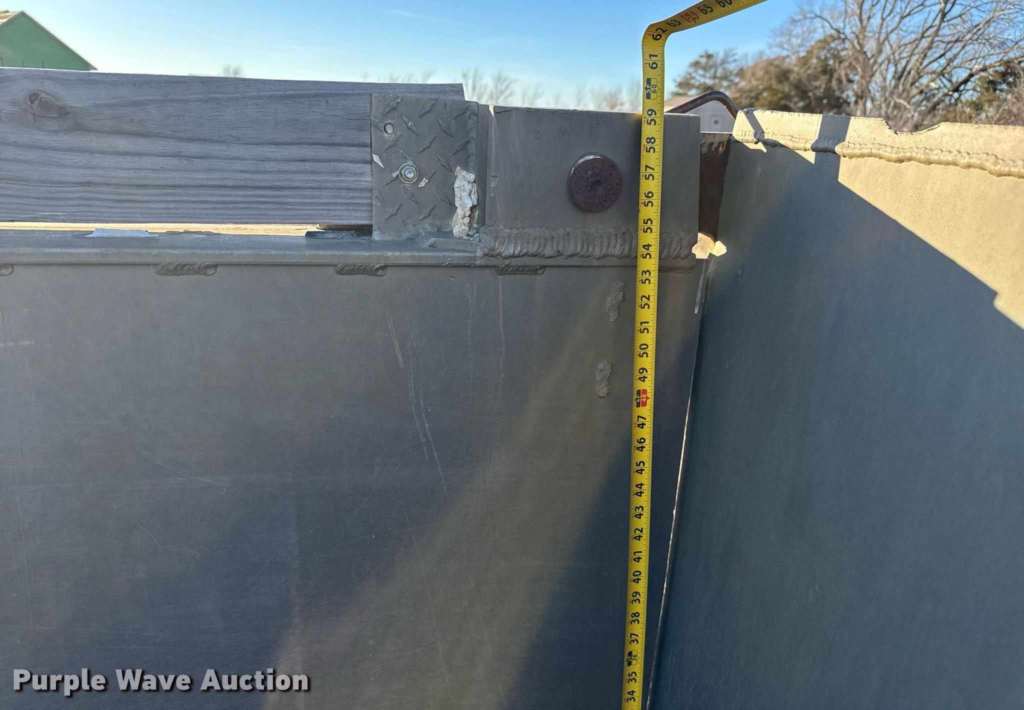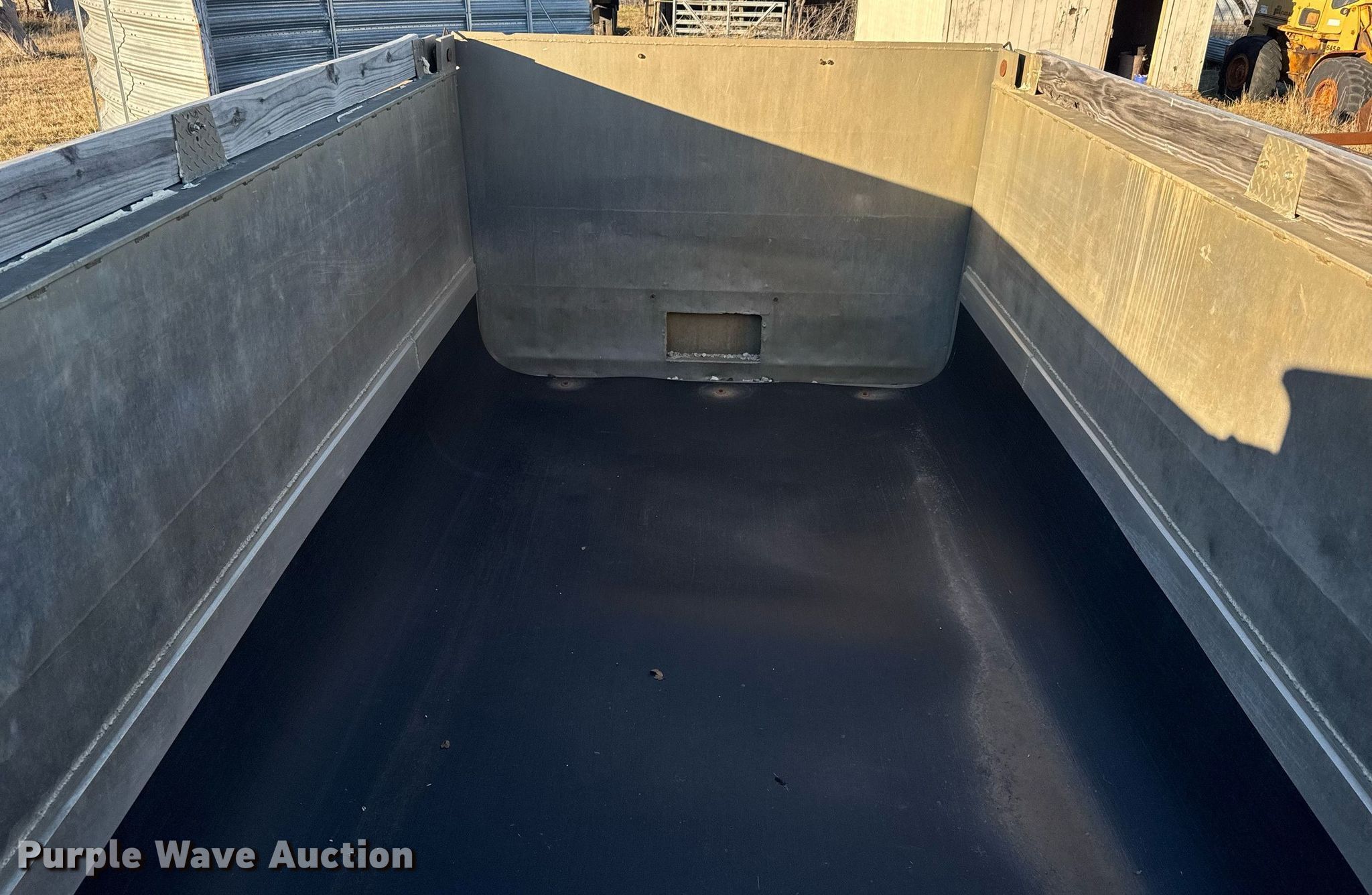 1995 Cornhusker end dump pup trailer. VIN: 1T91C1937S0007281. Dimensions Overall: 35' L x 96" W, Body: 14' L x 96" W, Side height: 54", Sideboard height: 6". Features Body type: Aluminum, Ram: Single, End gate: Air operated Grain door, Poly liner, Roll tarp. Chassis Landing gear: Single, Suspension: Spring, Brakes: Air. Tires Aluminum wheels, Size: 11R22.5. Kansas title. Title distribution may be delayed up to 14 days from verification of funds. Patton Trucking Equipment LLC. Clearwater, KS 67026