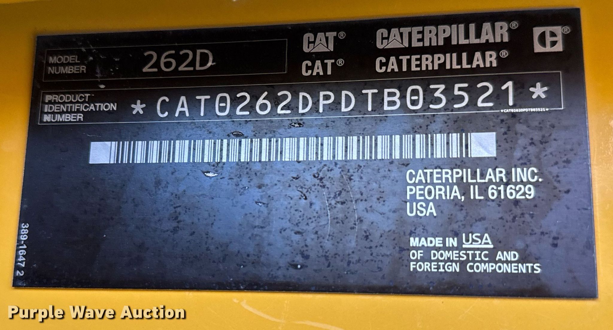 Purple Wave is selling a used Skid Steer Loader in Kansas. This item is a 2015 Caterpillar 262D skid steer loader with the following: Hours: 865 on meter, Serial: CAT026DPDTB03521