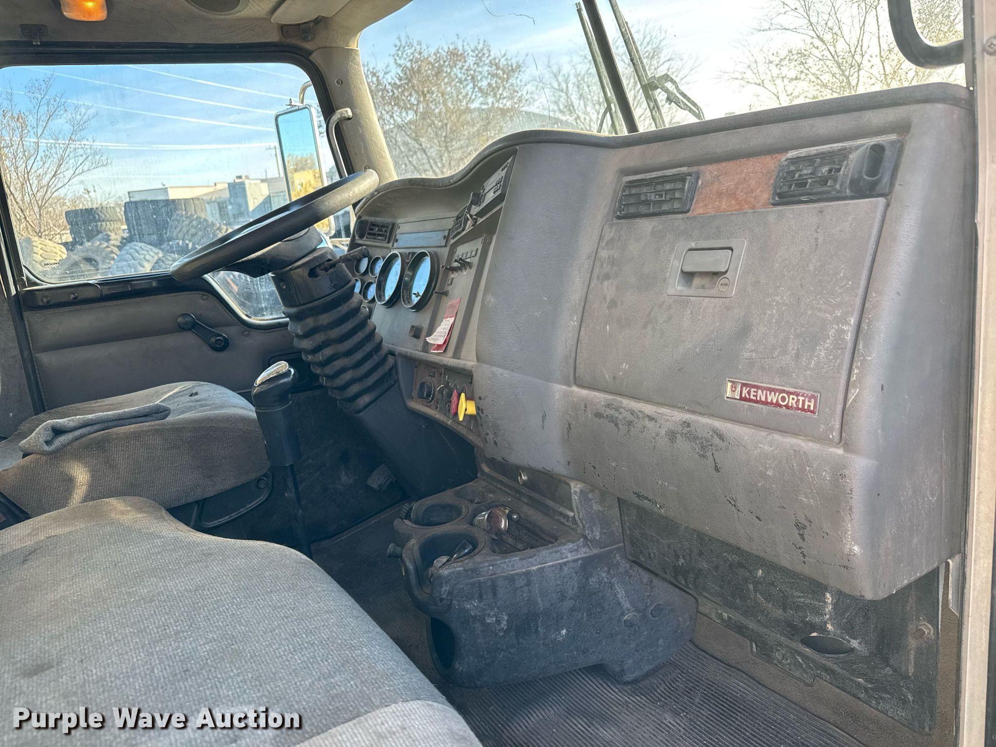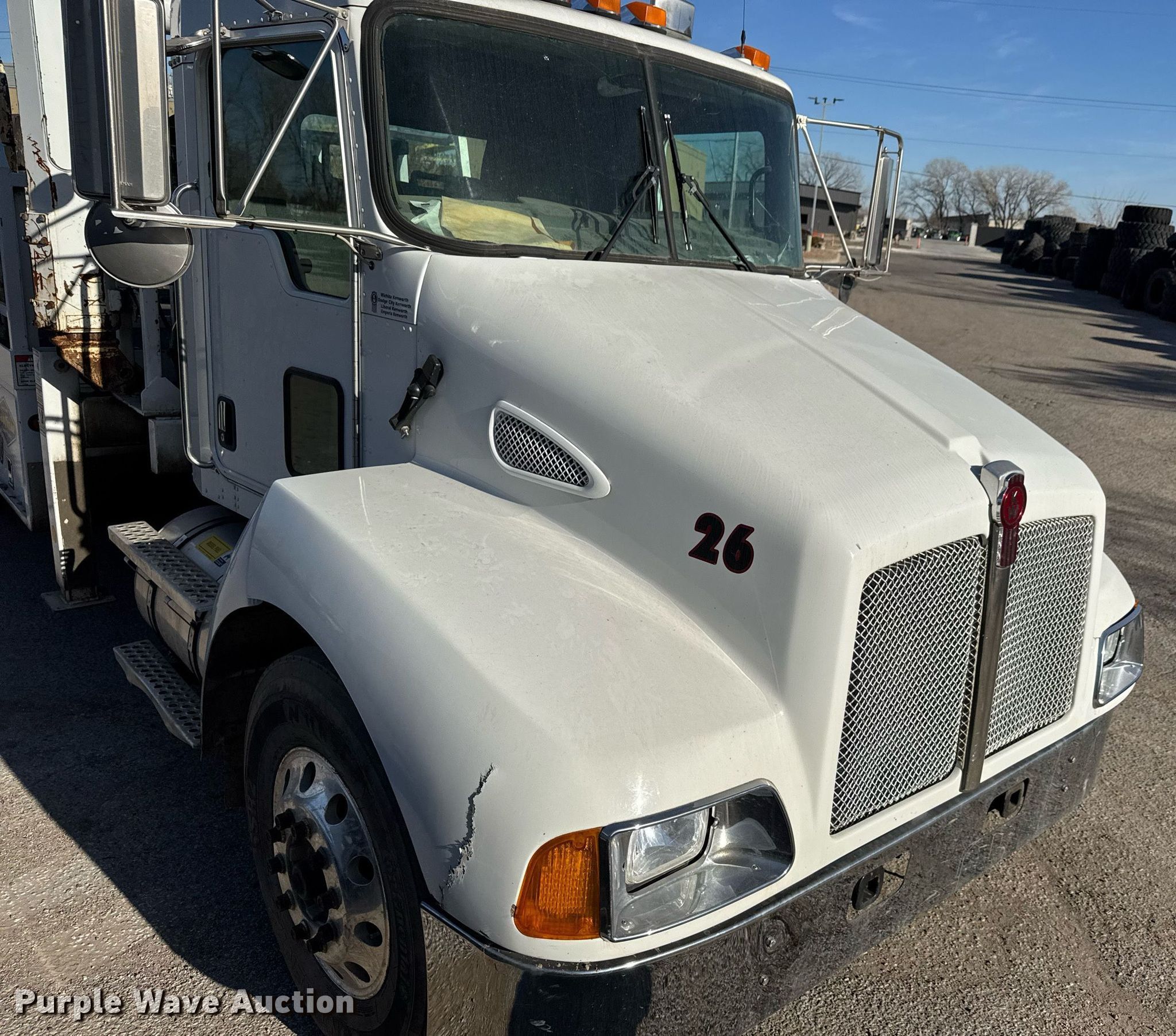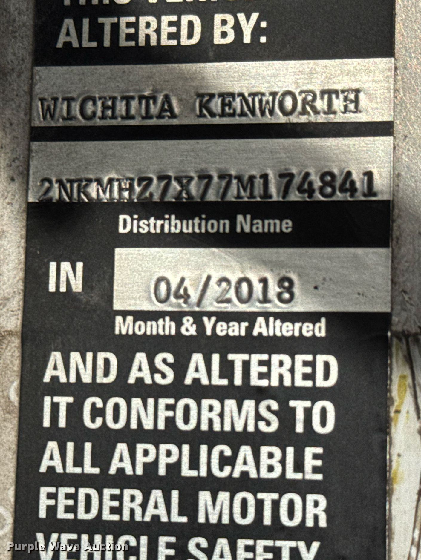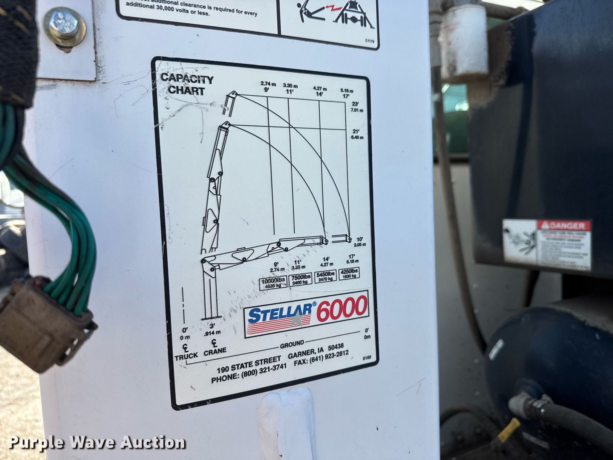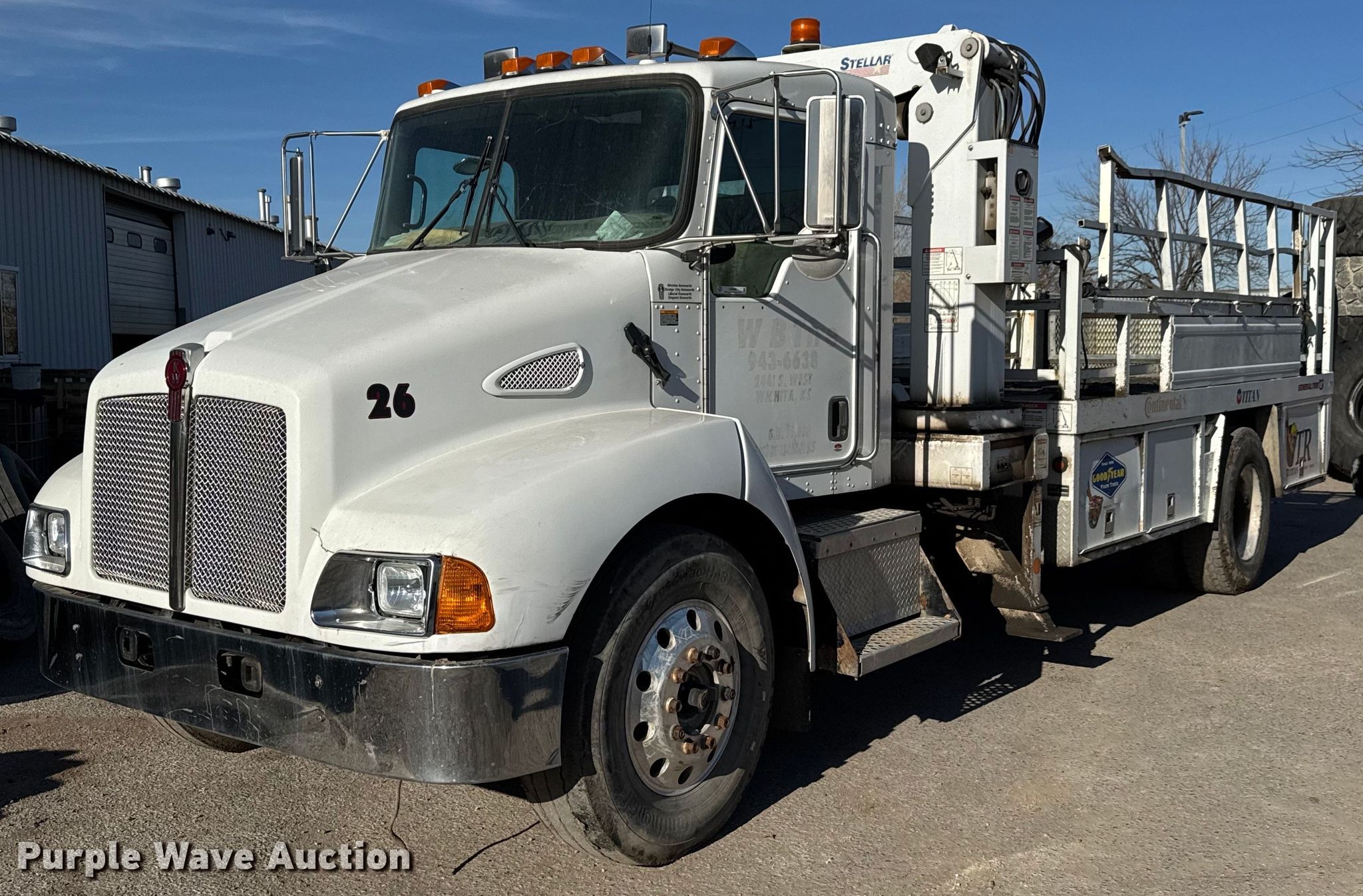 2007 Kenworth T300 crane truck. Miles: 29,236 on odometer, VIN: 2NKMHZ7X77M174841. Engine Cummins SC260, Serial: 46597141, Displacement: 8.3L, Cylinders: 6, Fuel type: Diesel, HP: 260. Transmission Eaton Fuller, Manual, Speed: 6. Chassis Axles: Single, Suspension: Spring, Brakes: Air, PTO, GVWR: 26,000 lbs. Interior AC, Heat, Heated mirrors, Cruise control, Auxiliary controls. Features Bed Stellar 138-15, 15' L x 94" W, Air compressor, Crane Stellar 6000, Maximum boom length: 17' Maximum lift capacity: 10,000 lbs, End gate lift Maxon MM, Capacity: 1,650 lb. Tires Size: 11R22.5. Notes Battery issues, weak, Wireless boom controller not included, Windshield chipped or cracked, Non-operational AC. Kansas title. Title distribution may be delayed up to 14 days from verification of funds. Wiechman Bush tire. 2441 South West Street. Wichita, KS 67217