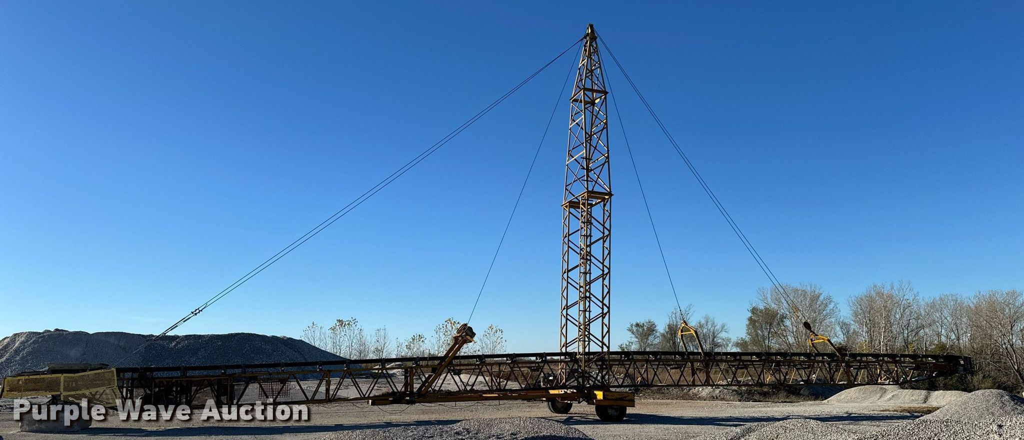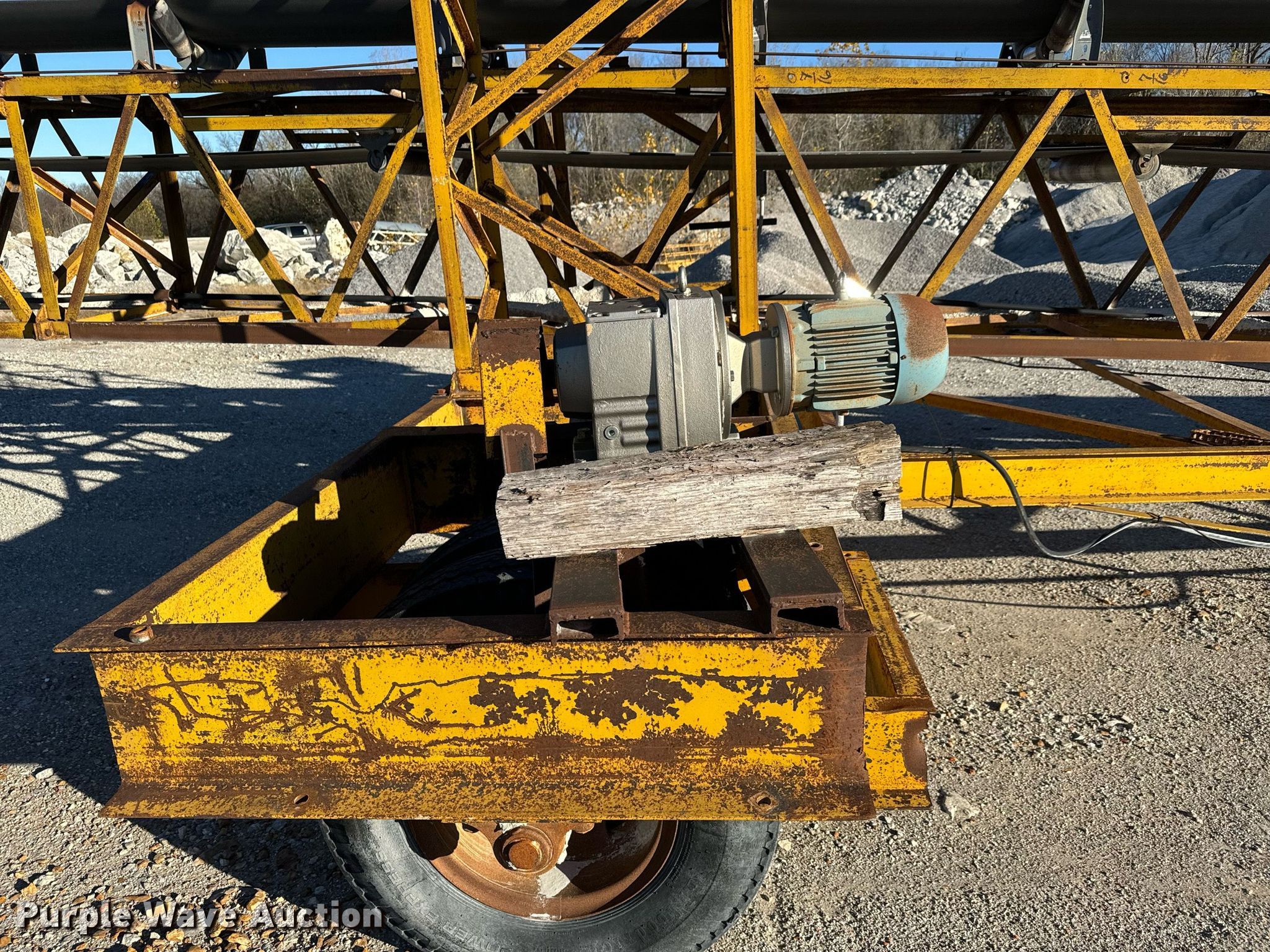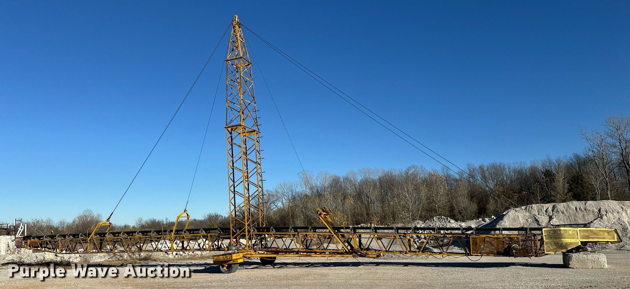 Peerless stacking conveyor. Serial: 13922. Dimensions Overall: 125' L x 20' W x 60' H. Features Conveyor Length: 125', Width: 30". Tires Tire size: 9.00-20. Buyer is responsible for all aspects of loadout and removal. Erlen Group. Joplin, MO 64801