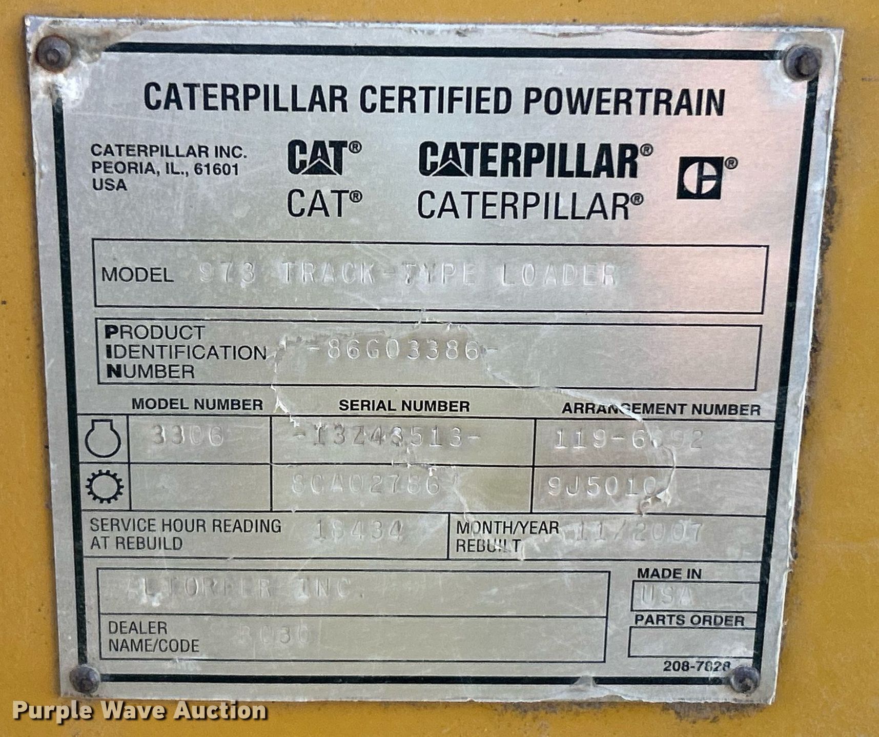 Purple Wave is selling a used Crawler Loader in Missouri. This item is a 1998 Caterpillar 973 track loader with the following: Hours: 9,805 on meter, Serial: 86G03386