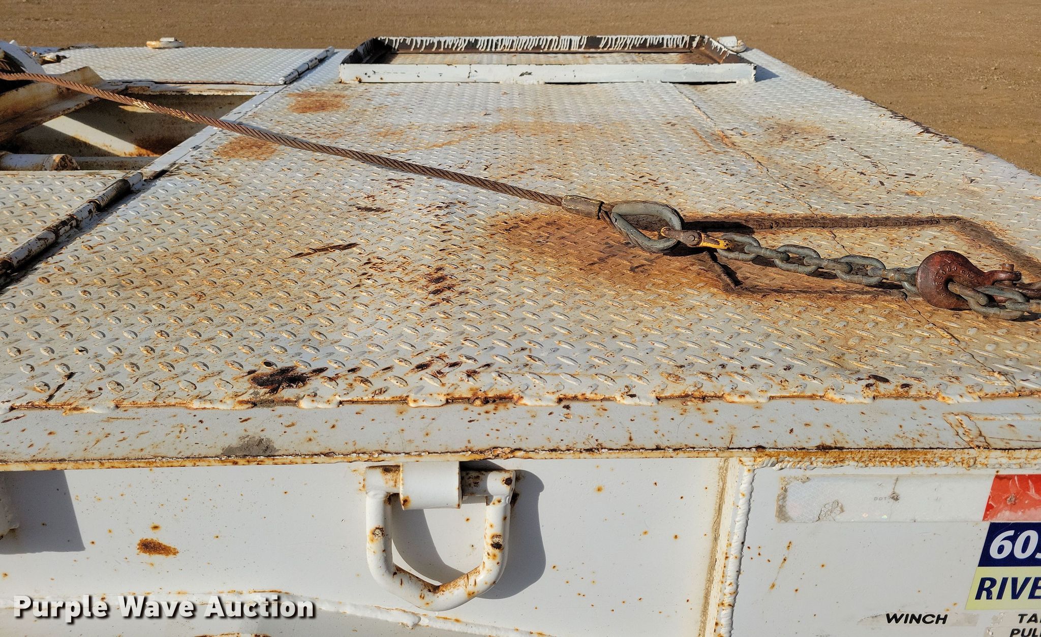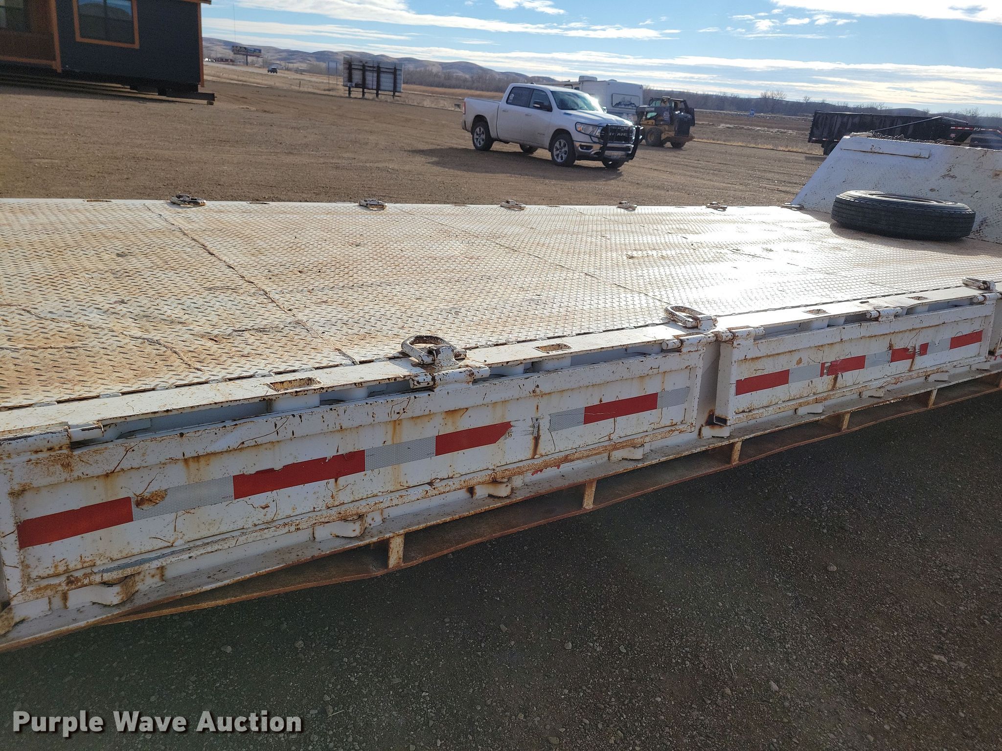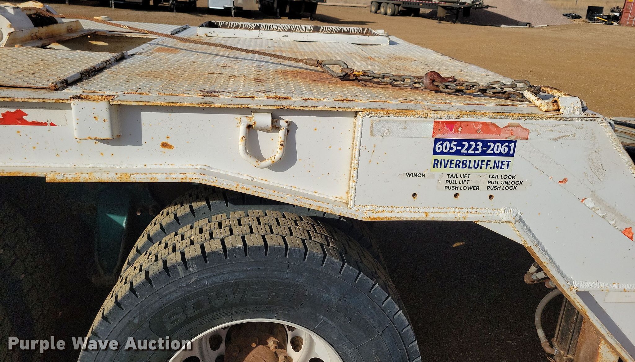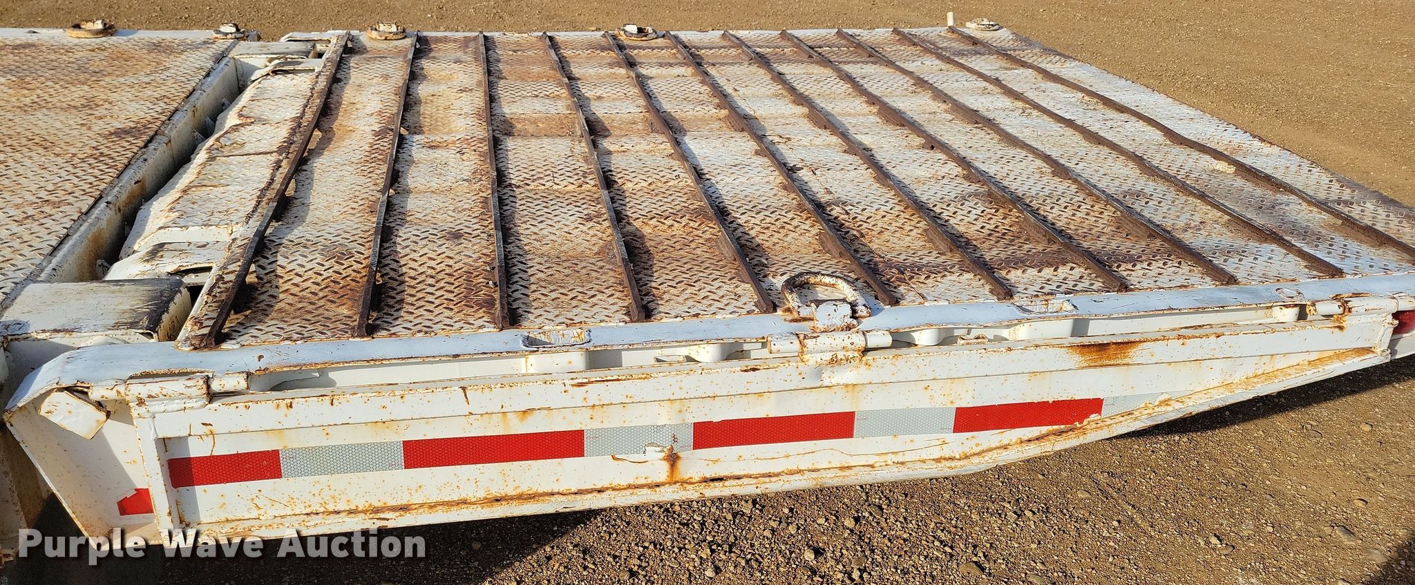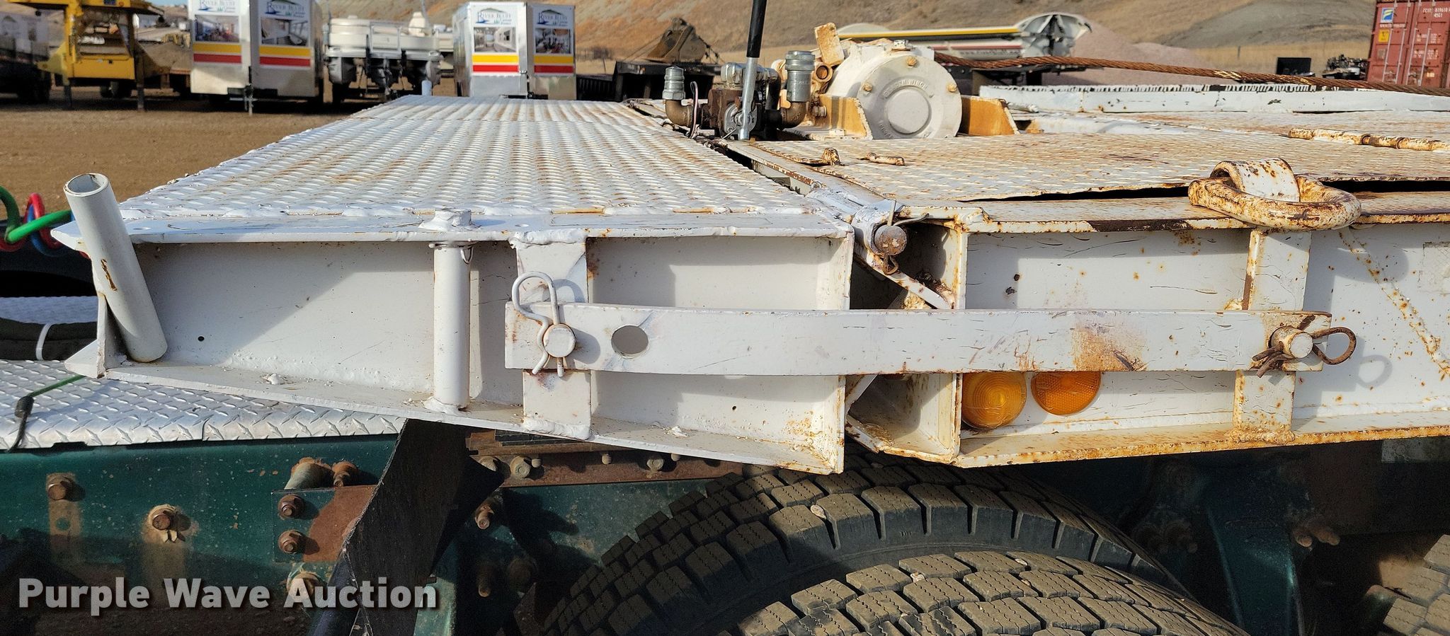 1975 Muv-All hydraulic tail equipment trailer. VIN: 3314. Dimensions Overall: 48' L x 96" W, Deck: 27' L x 94" W, Top deck length: 10', Deck height: 36", Hydraulic tail length: 9'. Features Deck type: Steel, Outriggers: Swing-out Board size: 10", Winch Braden, Hydraulic controls: Manual. Chassis Landing gear: Dual, Hydraulic, Suspension: Spring, Brakes: Air, Axles: Tandem. Tires Steel wheels, Size: 9R17.5. Notes Semi truck not included. South Dakota title. Title distribution may be delayed up to 30 days from verification of funds. River Bluff Custom Homes. Fort Pierre, SD 57532