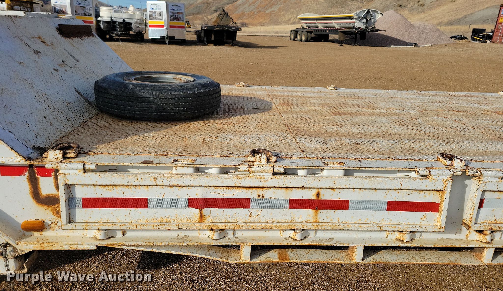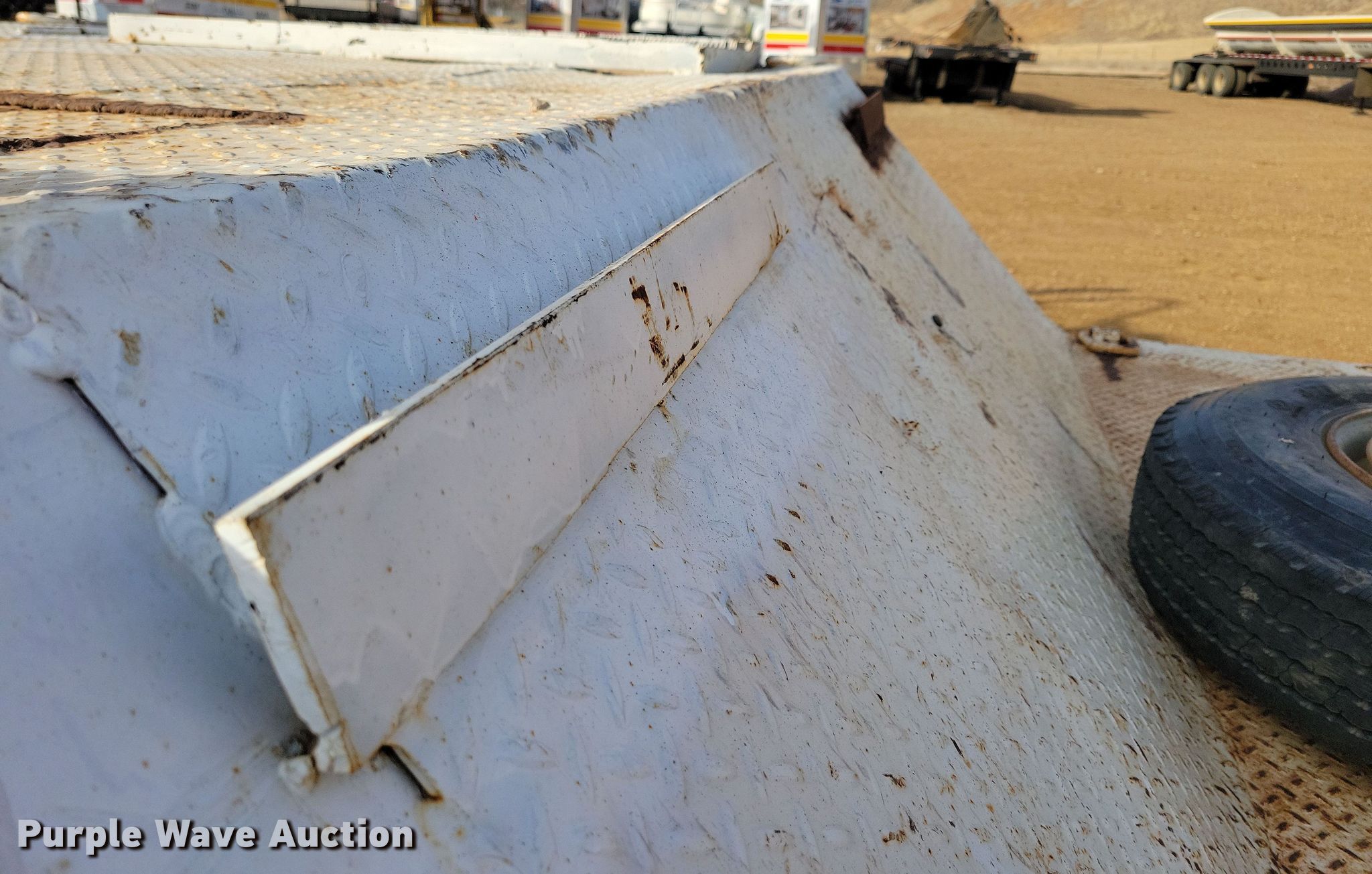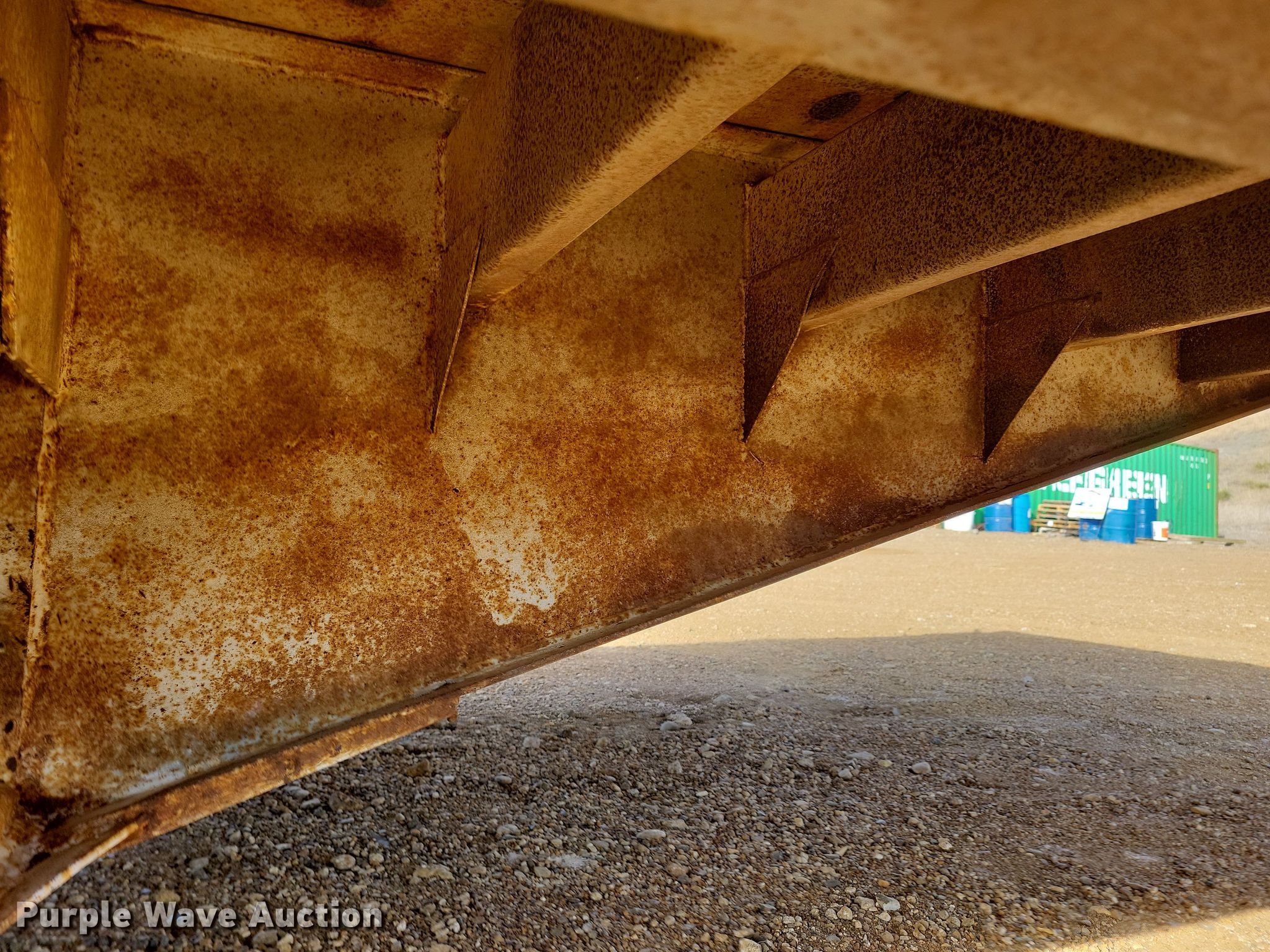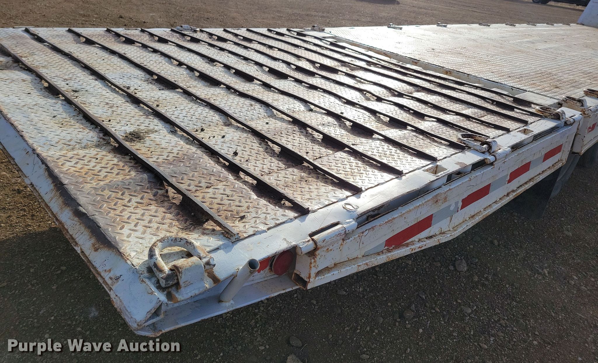 1975 Muv-All hydraulic tail equipment trailer. VIN: 3314. Dimensions Overall: 48' L x 96" W, Deck: 27' L x 94" W, Top deck length: 10', Deck height: 36", Hydraulic tail length: 9'. Features Deck type: Steel, Outriggers: Swing-out Board size: 10", Winch Braden, Hydraulic controls: Manual. Chassis Landing gear: Dual, Hydraulic, Suspension: Spring, Brakes: Air, Axles: Tandem. Tires Steel wheels, Size: 9R17.5. Notes Semi truck not included. South Dakota title. Title distribution may be delayed up to 30 days from verification of funds. River Bluff Custom Homes. Fort Pierre, SD 57532