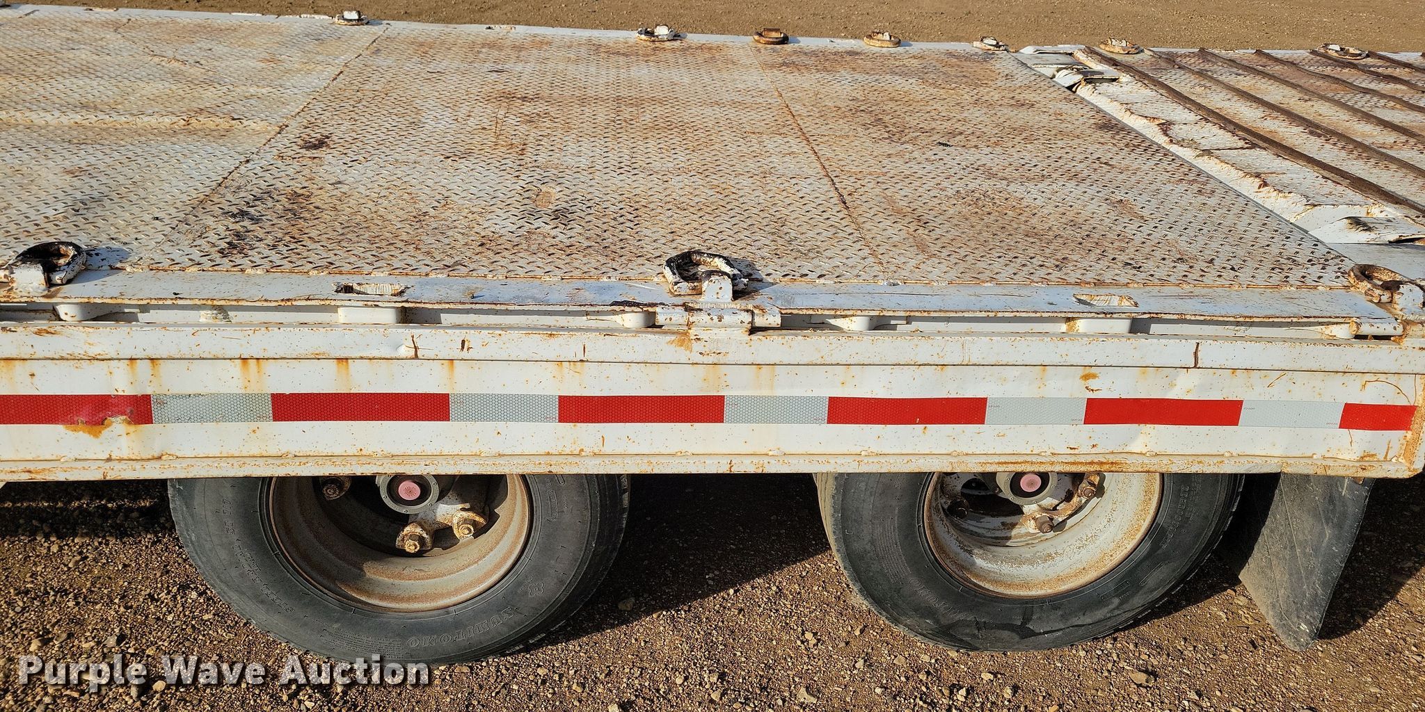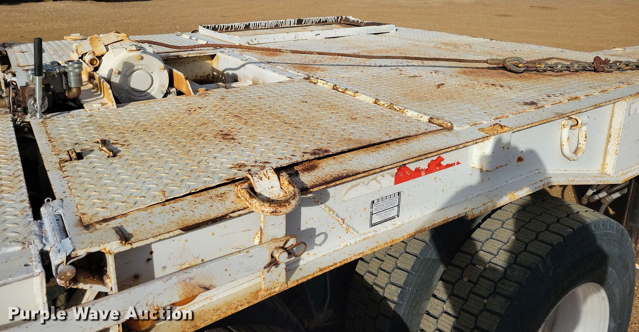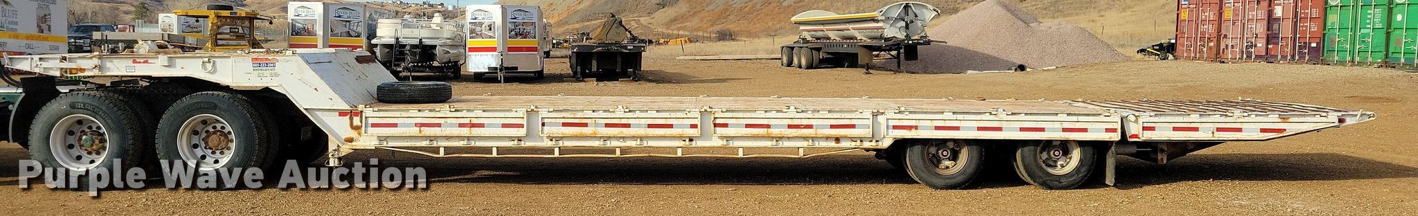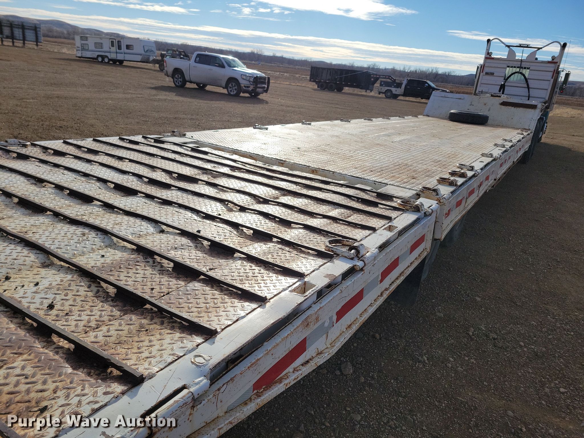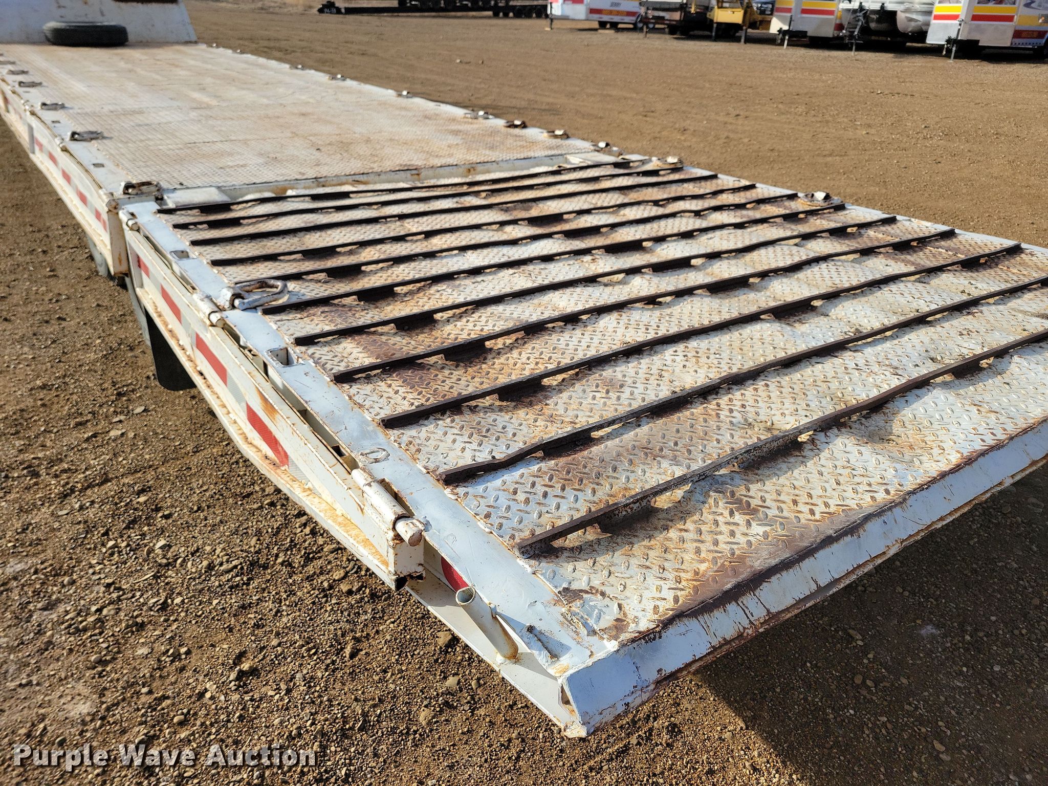 1975 Muv-All hydraulic tail equipment trailer. VIN: 3314. Dimensions Overall: 48' L x 96" W, Deck: 27' L x 94" W, Top deck length: 10', Deck height: 36", Hydraulic tail length: 9'. Features Deck type: Steel, Outriggers: Swing-out Board size: 10", Winch Braden, Hydraulic controls: Manual. Chassis Landing gear: Dual, Hydraulic, Suspension: Spring, Brakes: Air, Axles: Tandem. Tires Steel wheels, Size: 9R17.5. Notes Semi truck not included. South Dakota title. Title distribution may be delayed up to 30 days from verification of funds. River Bluff Custom Homes. Fort Pierre, SD 57532