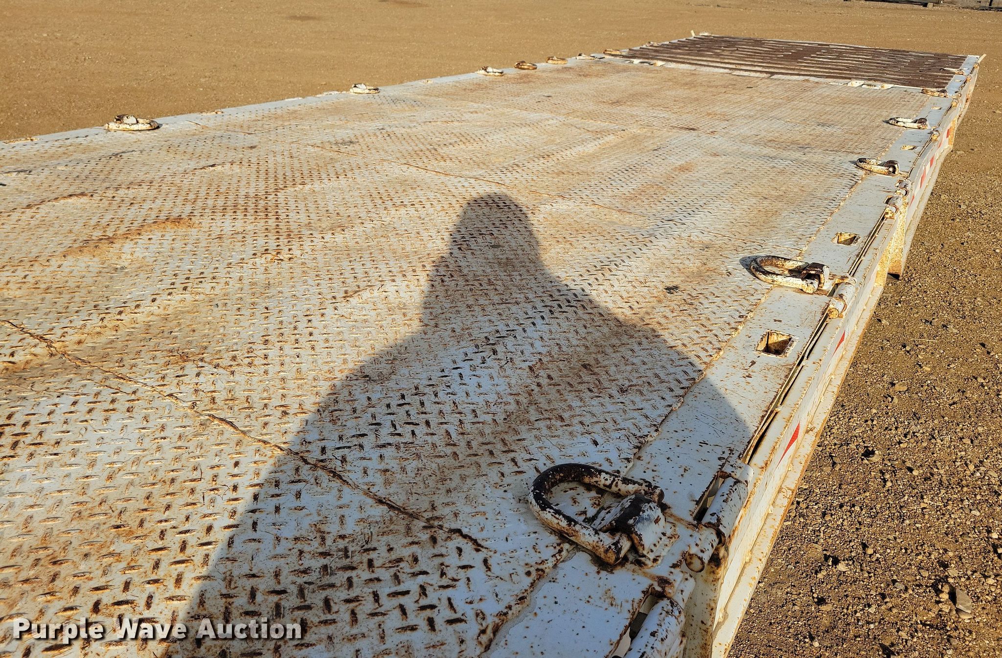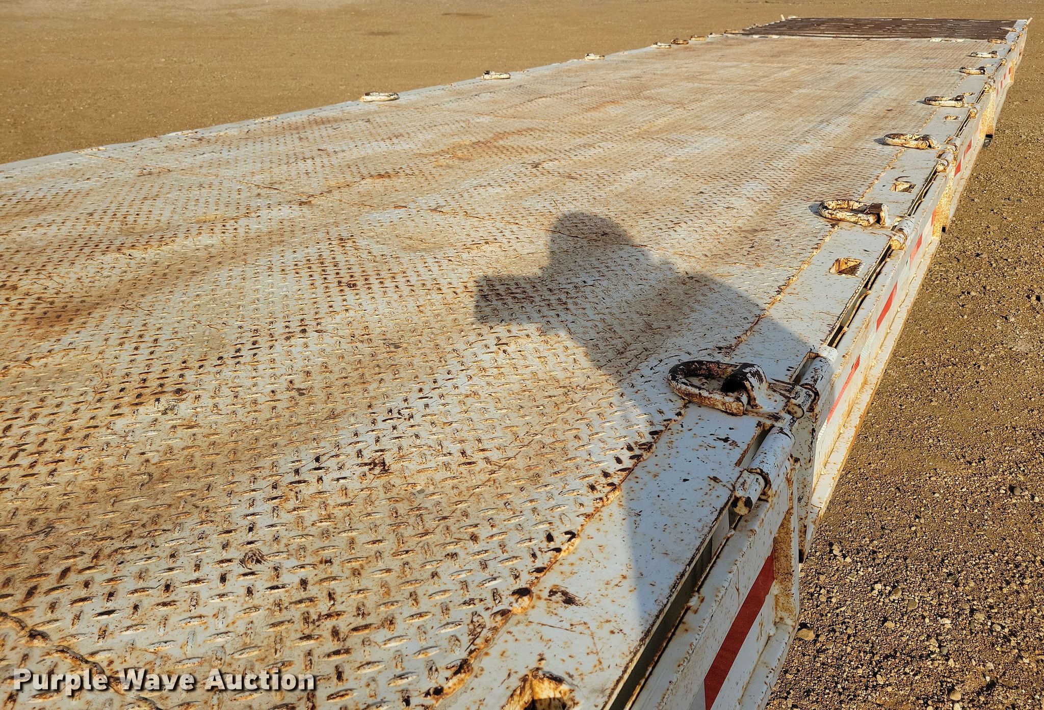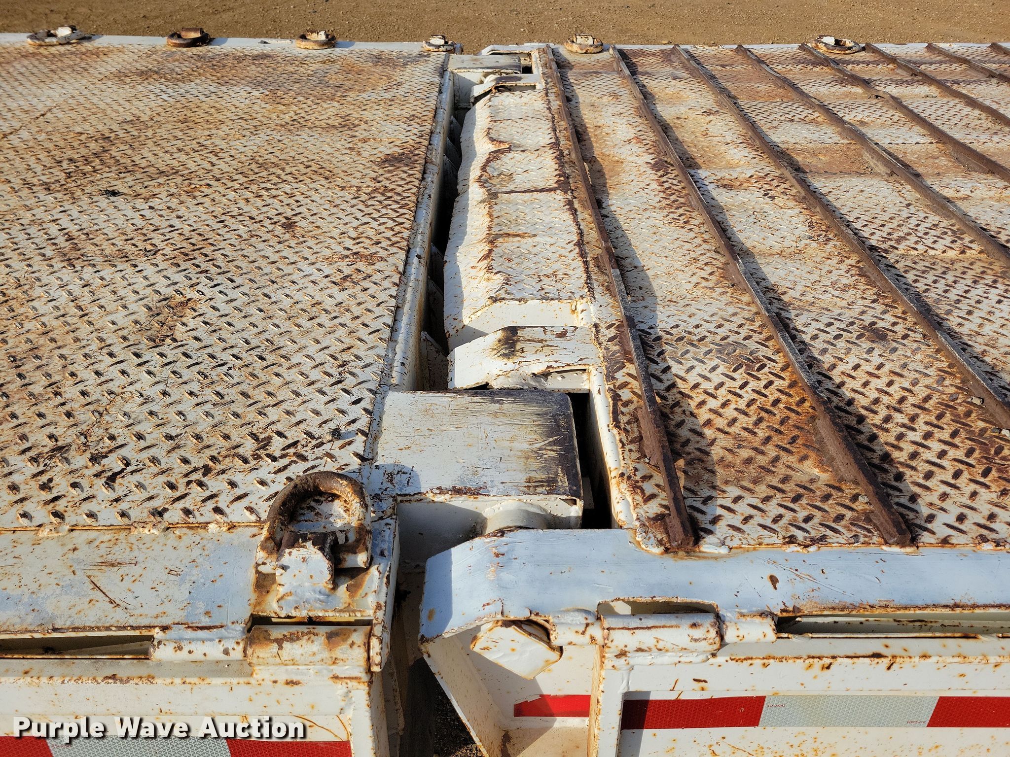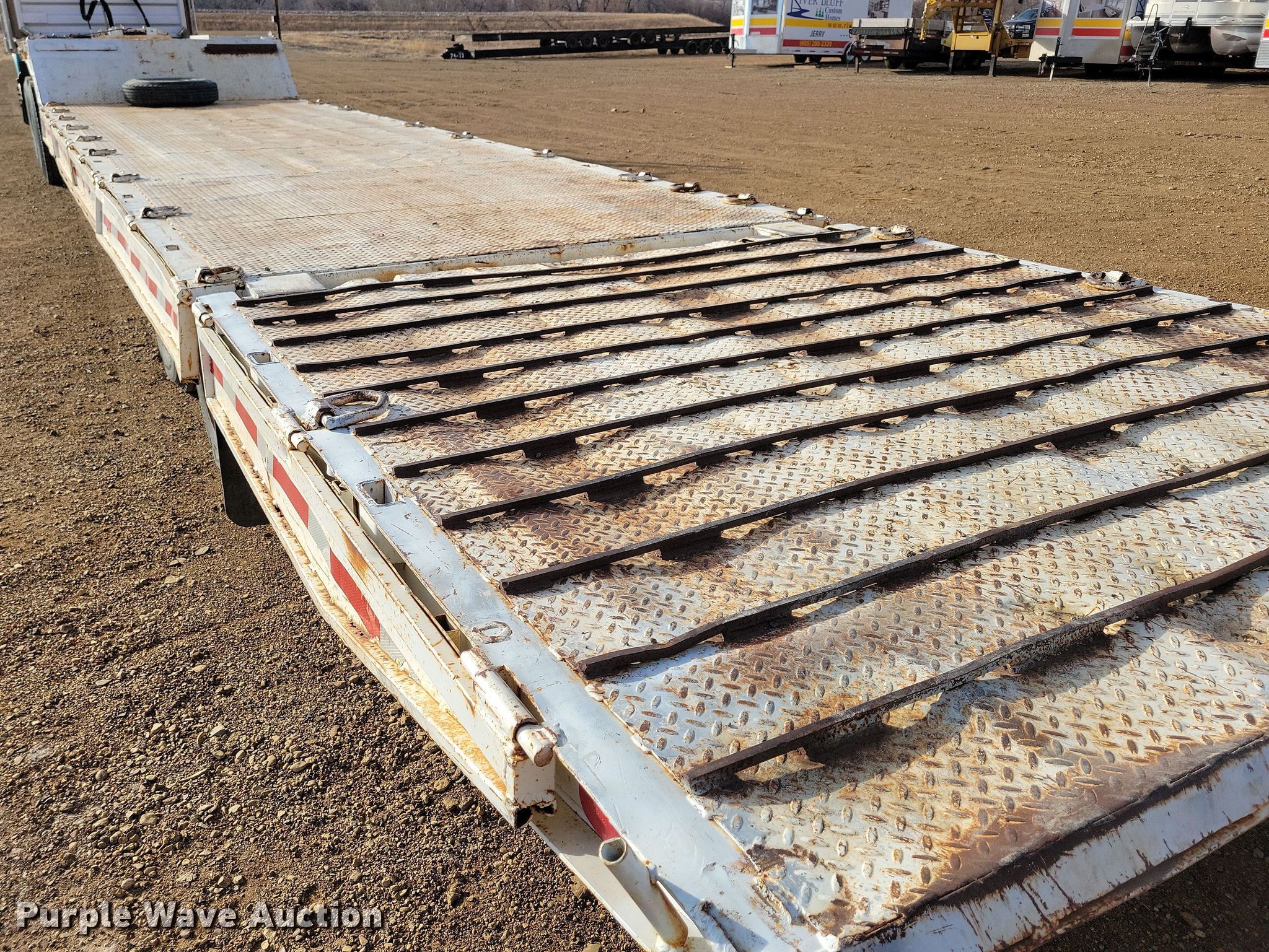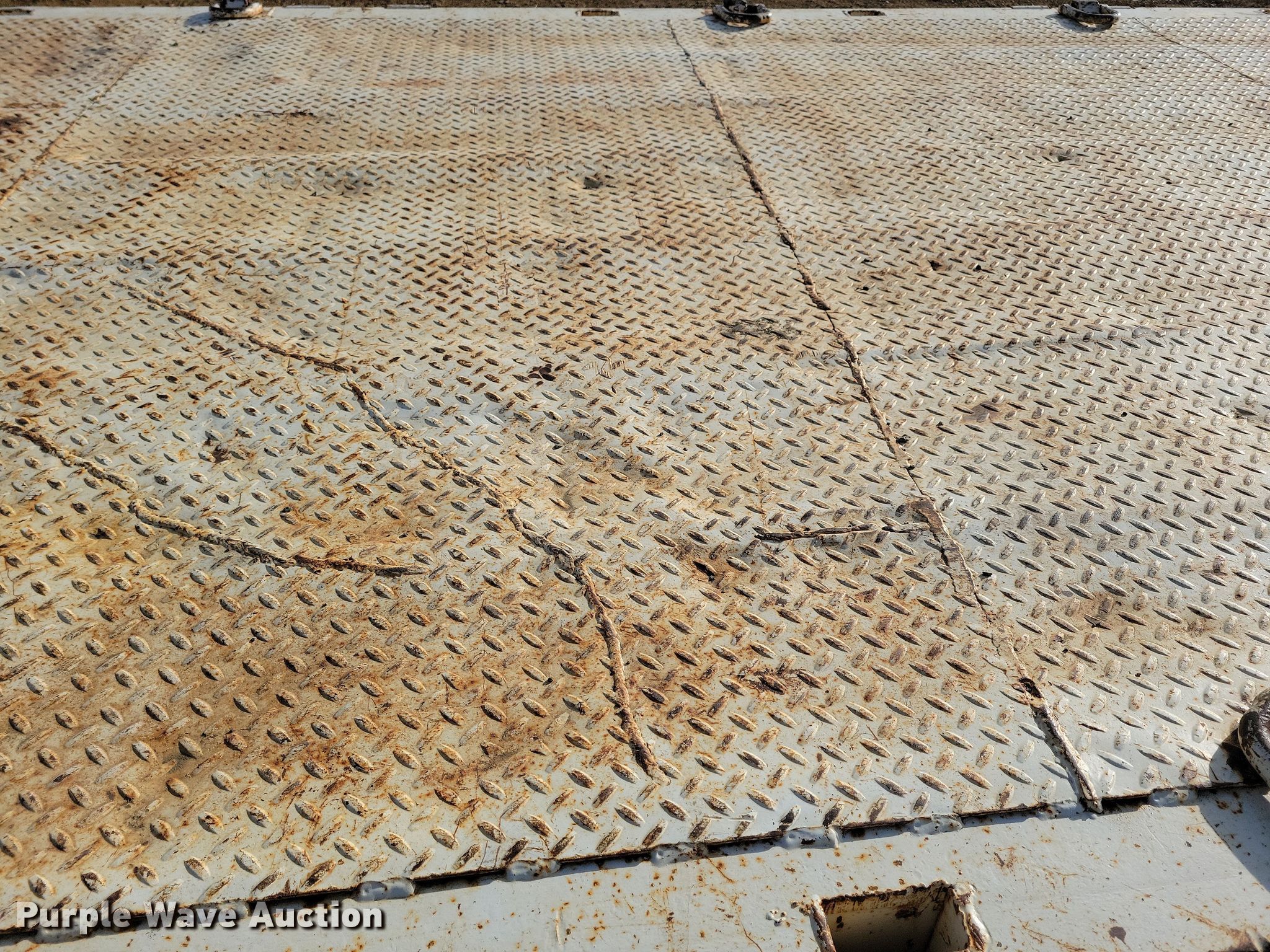 1975 Muv-All hydraulic tail equipment trailer. VIN: 3314. Dimensions Overall: 48' L x 96" W, Deck: 27' L x 94" W, Top deck length: 10', Deck height: 36", Hydraulic tail length: 9'. Features Deck type: Steel, Outriggers: Swing-out Board size: 10", Winch Braden, Hydraulic controls: Manual. Chassis Landing gear: Dual, Hydraulic, Suspension: Spring, Brakes: Air, Axles: Tandem. Tires Steel wheels, Size: 9R17.5. Notes Semi truck not included. South Dakota title. Title distribution may be delayed up to 30 days from verification of funds. River Bluff Custom Homes. Fort Pierre, SD 57532