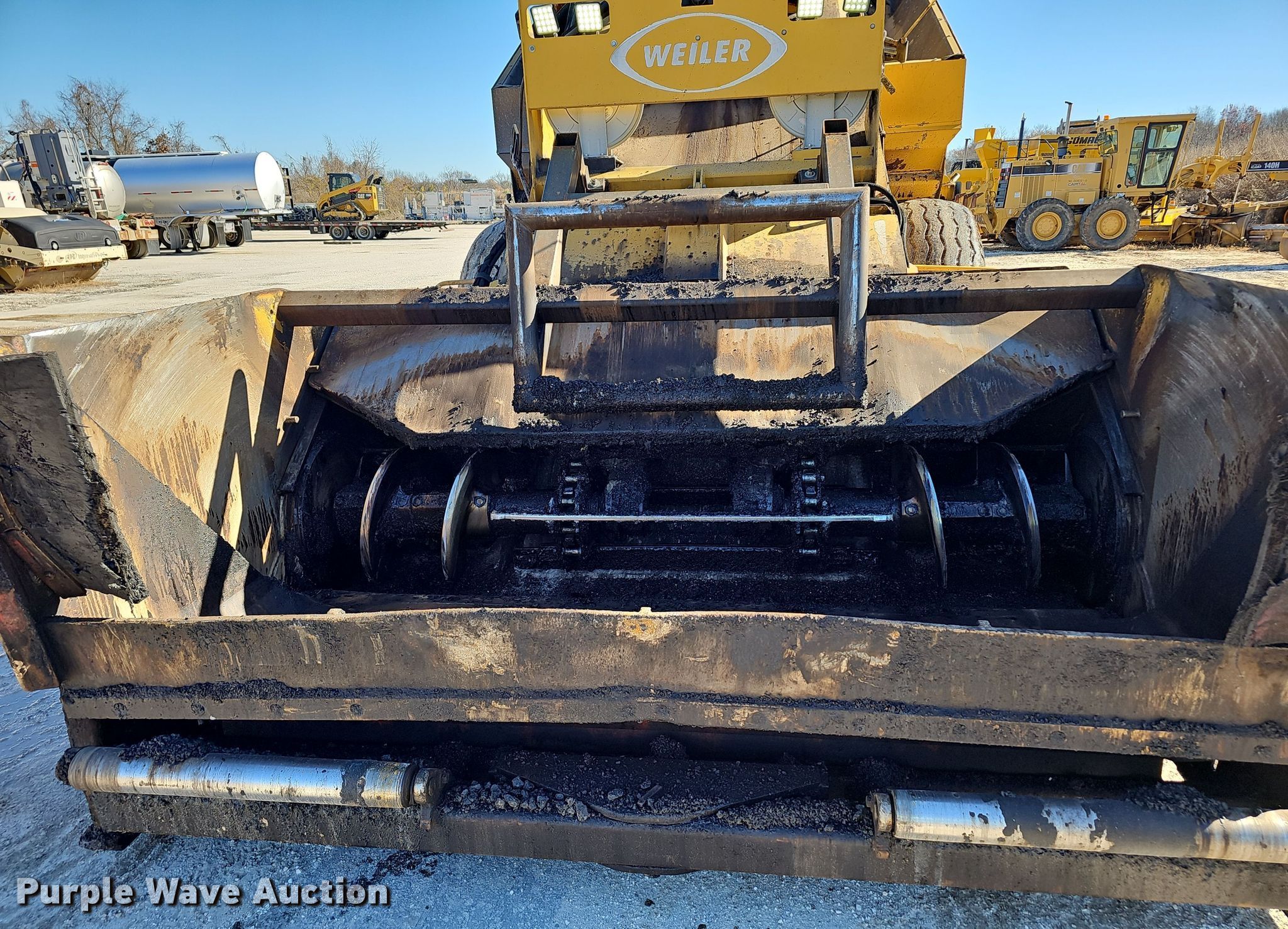 Weiler E2850 remixing transfer vehicle. Hours: Unknown, Serial: E2850-1052, Unit #: 60.671201. Engine Caterpillar C9 Acert, Cylinders: 6, Fuel type: Diesel, HP: 224. Transmission Hydrostatic. Features Cutting head, Water/emulsion application system, Grade & slope controls, Ground controls, Discharge conveyor Width: 116". Tires Size: 21.00-25. Capital Equipment. Ozark, MO 65721
