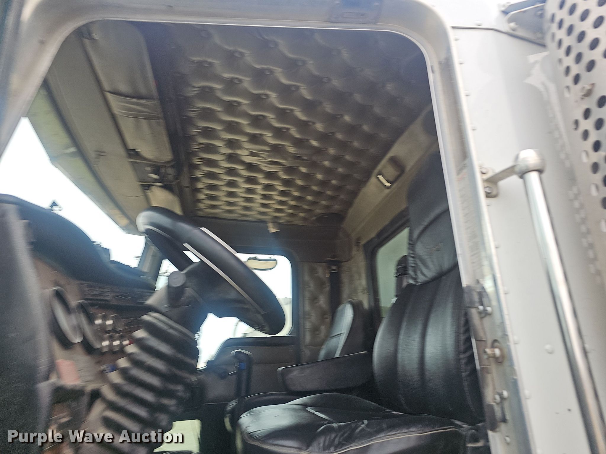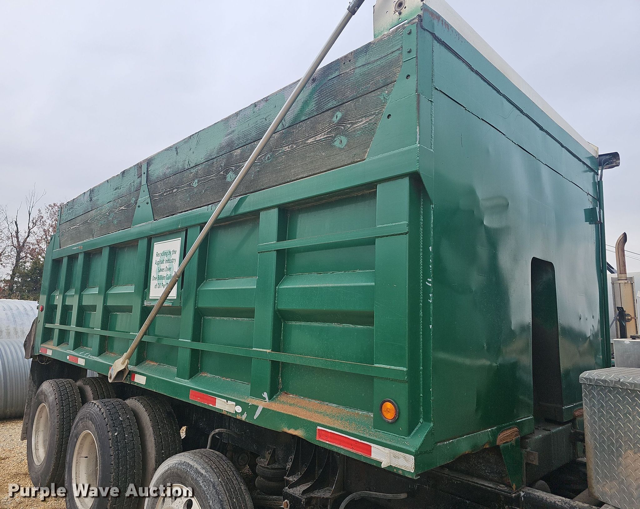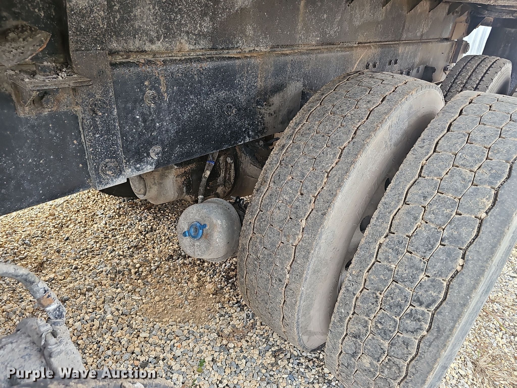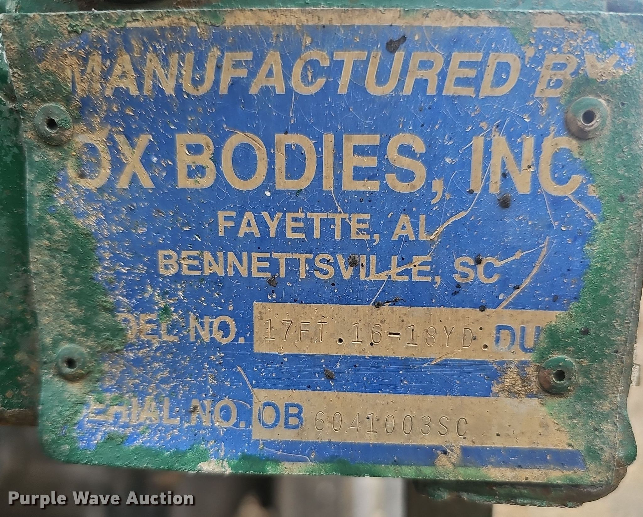 2005 Kenworth T800 dump truck. Miles: 974,318 on odometer, VIN: 1NKDXUEXX5J089991, Unit #: 5-282. Engine Catapillar C13 Acert, Displacement: 12.0L, Cylinders: 6, Fuel type: Diesel, Engine brake. Transmission Manual. Chassis Axles: 4, Pusher axle, Differential lock: Inter-axle, Suspension: Spring over walking beam, Brakes: Air, PTO. Interior AC, Heat, Heated mirrors, Cruise control. Features Dump bed Model: Ox Bodies, Serial: 6041003SC, Capacity: 18 cu.yd., 17' L x 96" W, Side height: 45", Side board height: 20", Bed type: Steel, Bed vibrator, Roll tarp, Ram: Single, End gate: Air operated. Tires Front: 425/64R22.5, Rear: 11R22.5, Lift axle: 155/70R22.5. Notes Non-operational roll tarp. Missouri title. Title distribution may be delayed up to 30 days from verification of funds. Emery Sapp & Sons, Inc.. Springdale, AR 72764