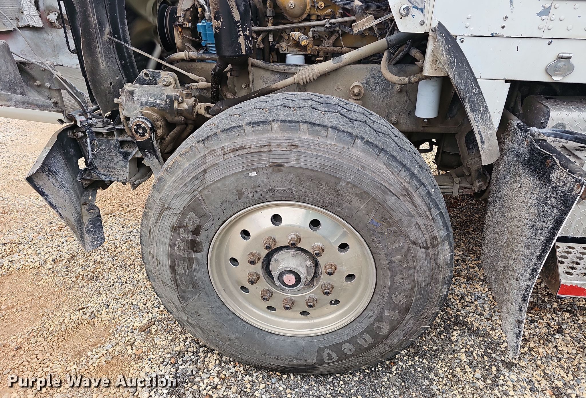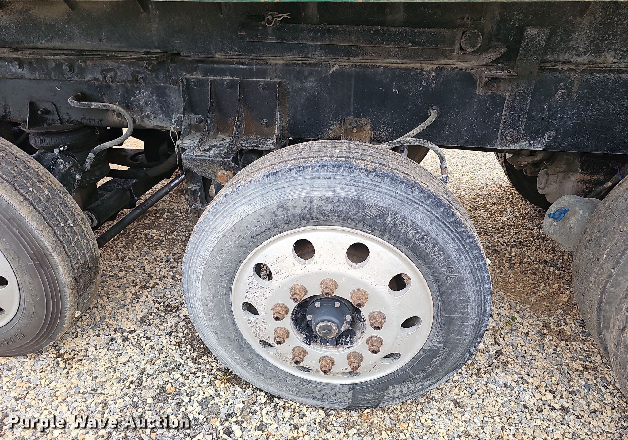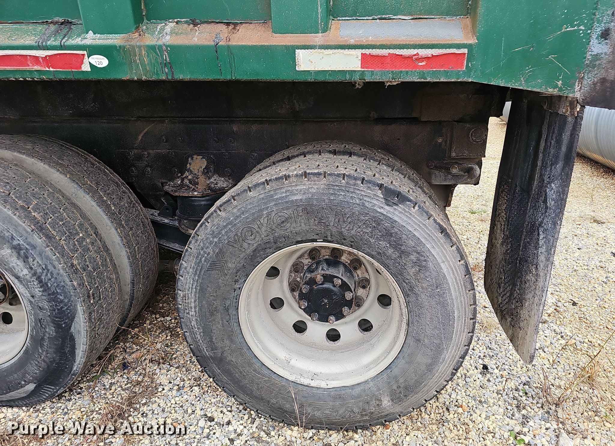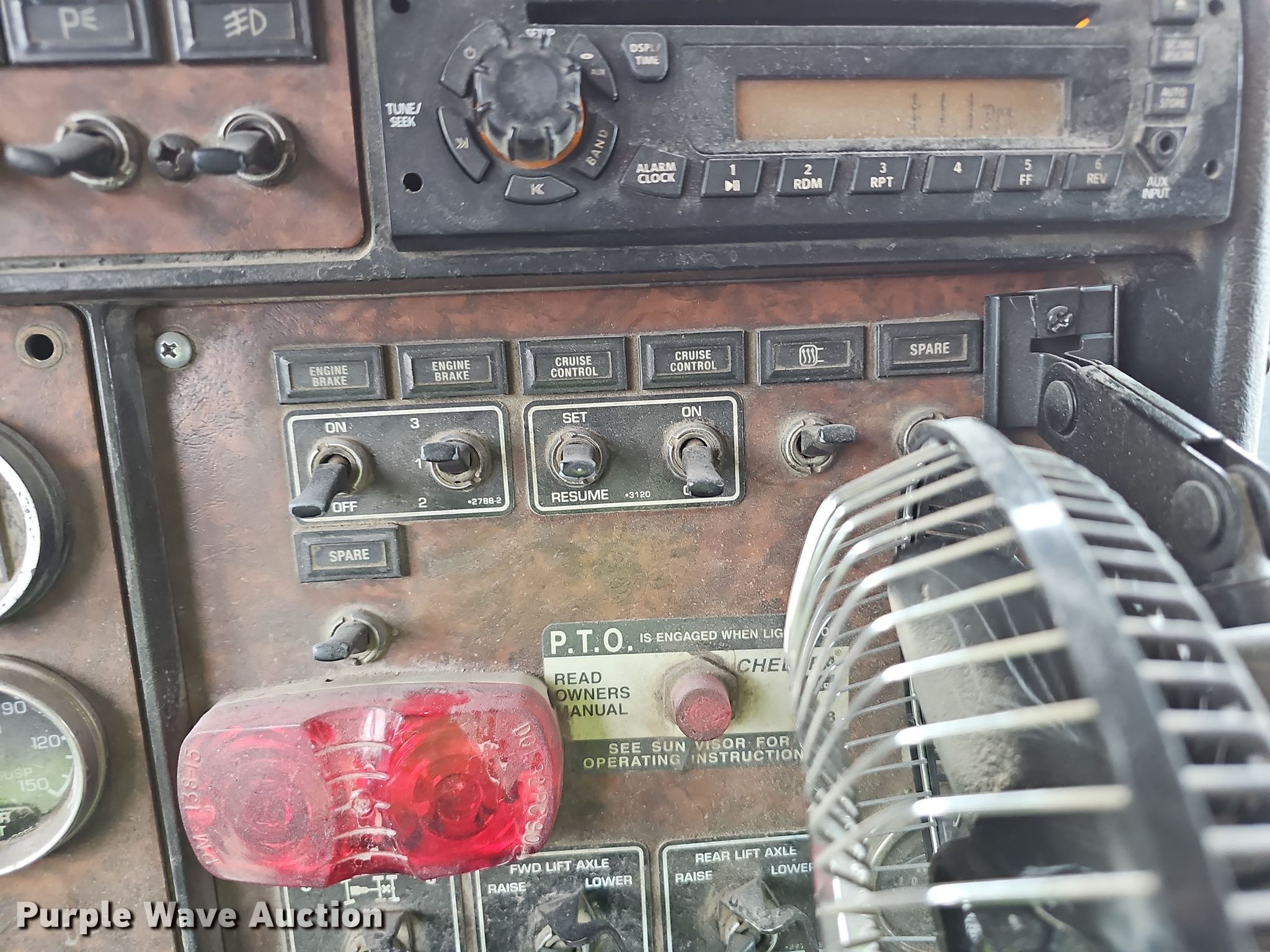 2005 Kenworth T800 dump truck. Miles: 974,318 on odometer, VIN: 1NKDXUEXX5J089991, Unit #: 5-282. Engine Catapillar C13 Acert, Displacement: 12.0L, Cylinders: 6, Fuel type: Diesel, Engine brake. Transmission Manual. Chassis Axles: 4, Pusher axle, Differential lock: Inter-axle, Suspension: Spring over walking beam, Brakes: Air, PTO. Interior AC, Heat, Heated mirrors, Cruise control. Features Dump bed Model: Ox Bodies, Serial: 6041003SC, Capacity: 18 cu.yd., 17' L x 96" W, Side height: 45", Side board height: 20", Bed type: Steel, Bed vibrator, Roll tarp, Ram: Single, End gate: Air operated. Tires Front: 425/64R22.5, Rear: 11R22.5, Lift axle: 155/70R22.5. Notes Non-operational roll tarp. Missouri title. Title distribution may be delayed up to 30 days from verification of funds. Emery Sapp & Sons, Inc.. Springdale, AR 72764
