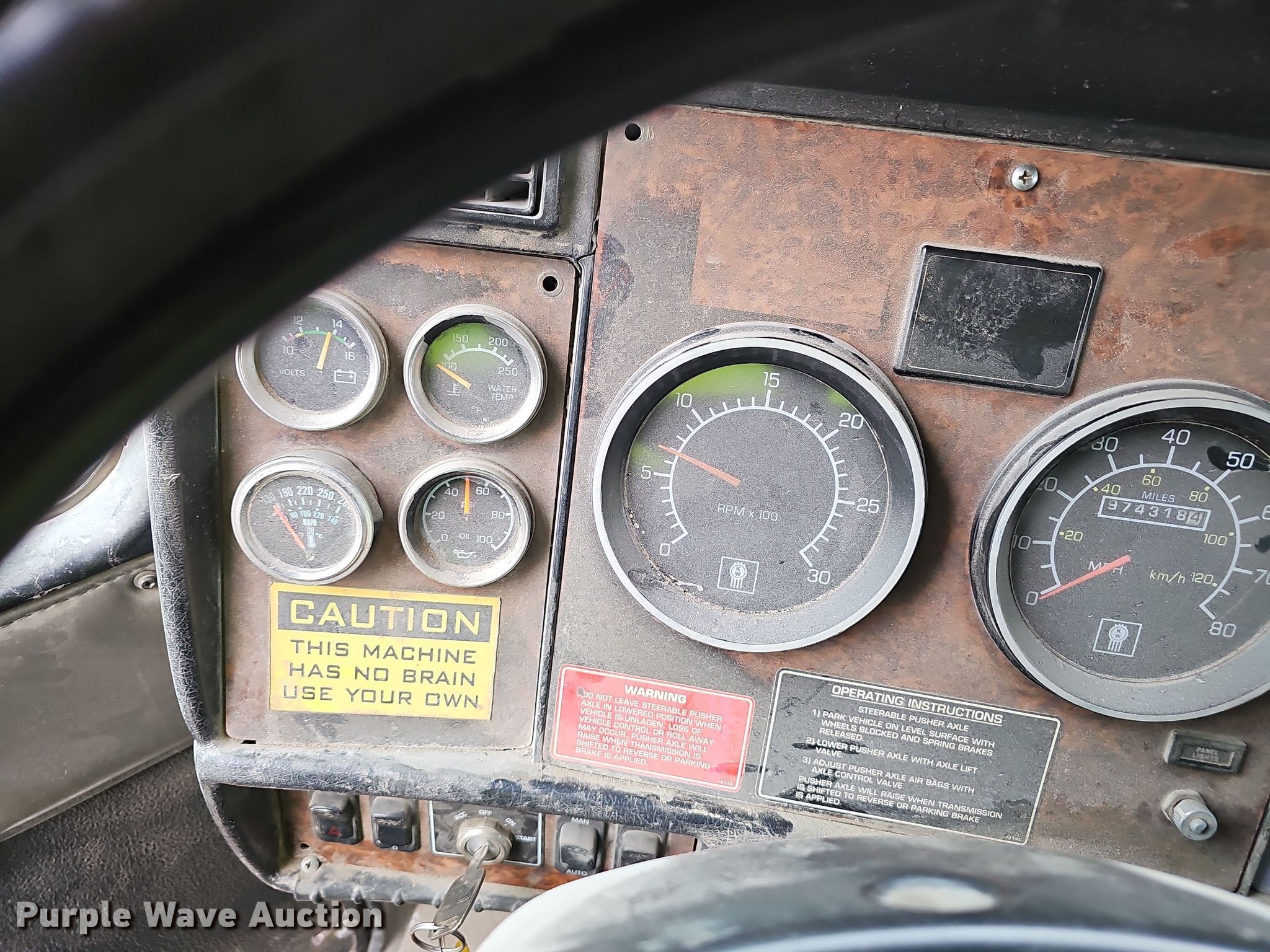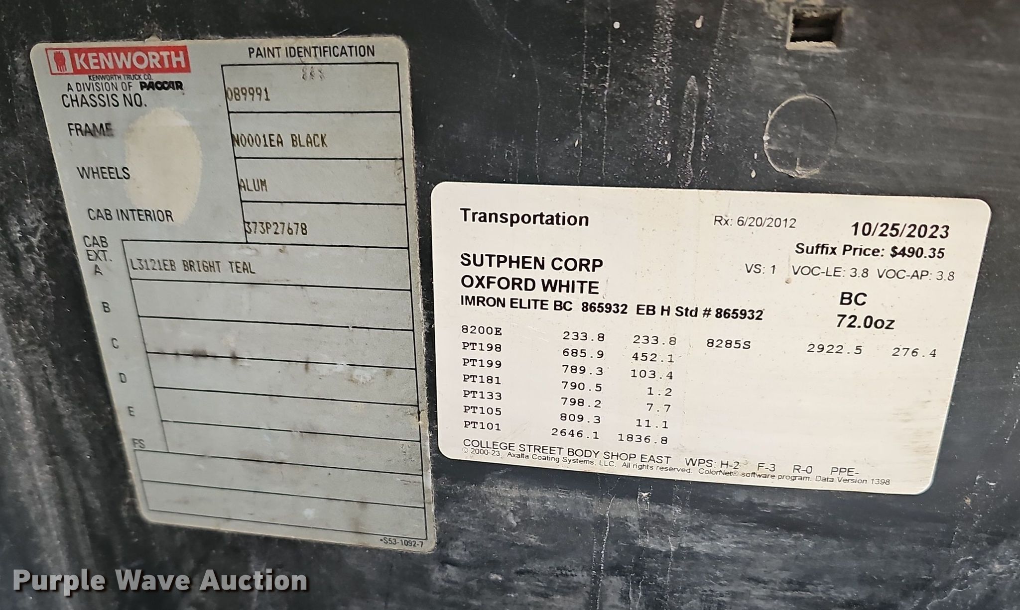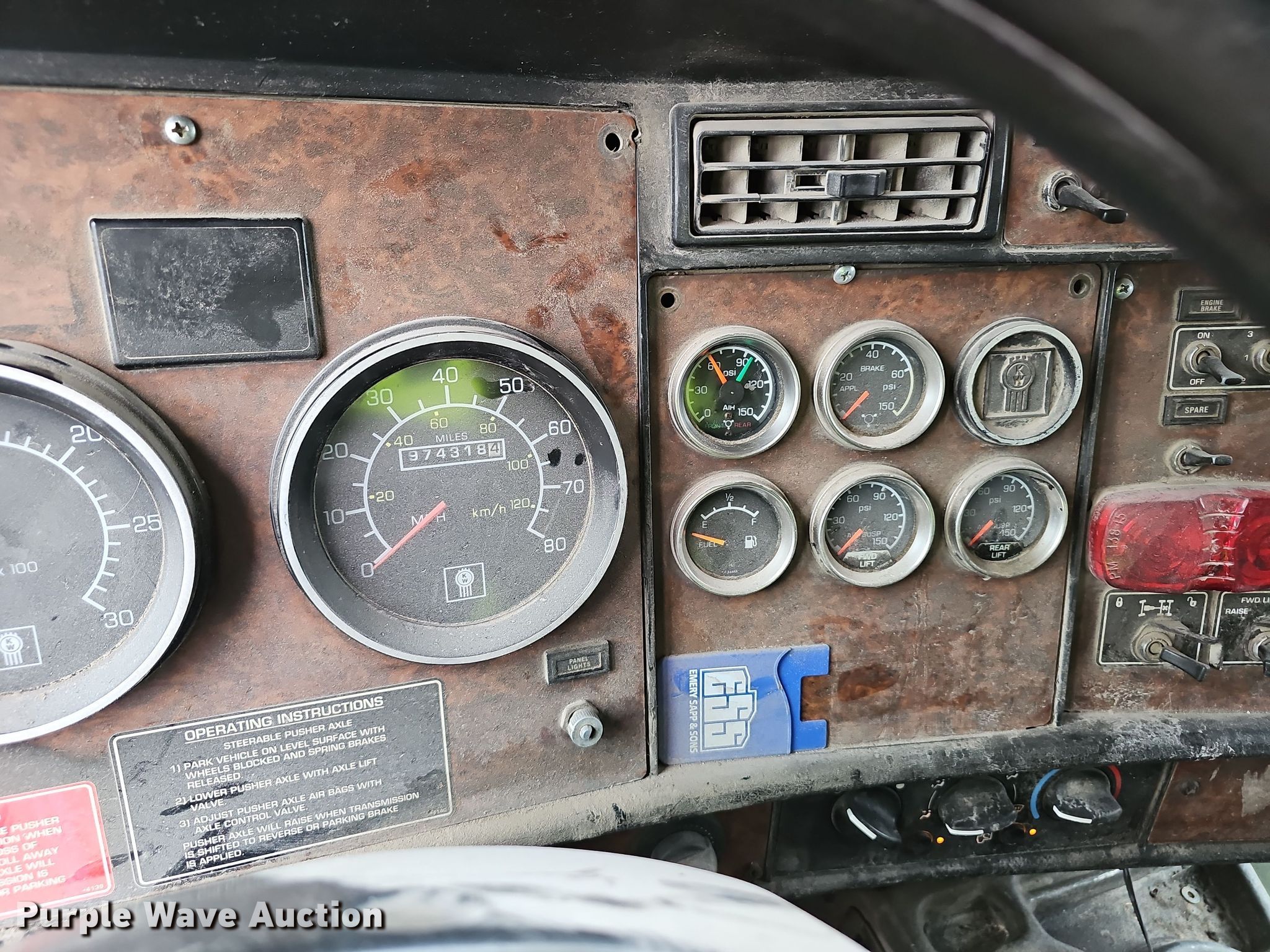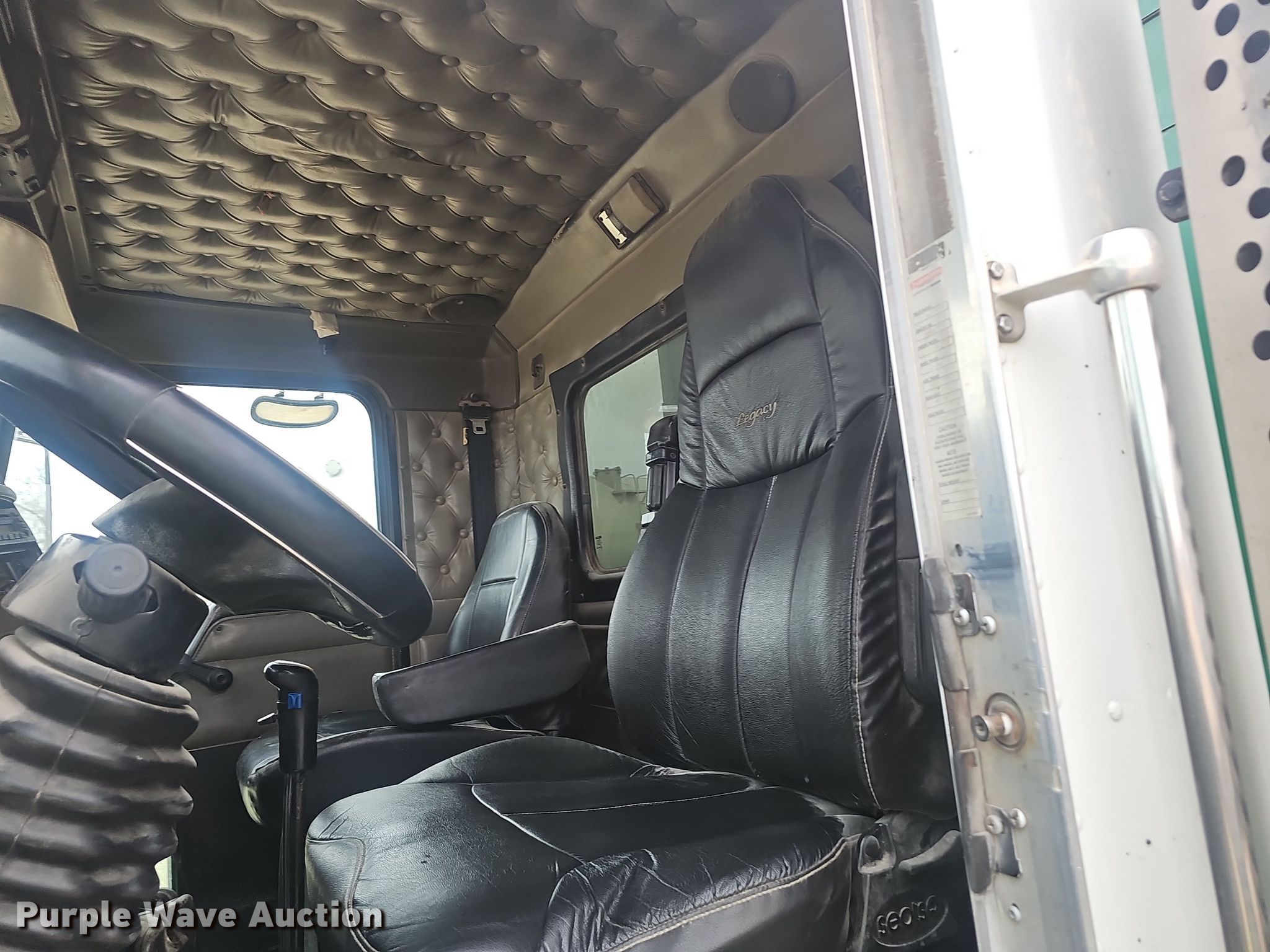2005 Kenworth T800 dump truck. Miles: 974,318 on odometer, VIN: 1NKDXUEXX5J089991, Unit #: 5-282. Engine Catapillar C13 Acert, Displacement: 12.0L, Cylinders: 6, Fuel type: Diesel, Engine brake. Transmission Manual. Chassis Axles: 4, Pusher axle, Differential lock: Inter-axle, Suspension: Spring over walking beam, Brakes: Air, PTO. Interior AC, Heat, Heated mirrors, Cruise control. Features Dump bed Model: Ox Bodies, Serial: 6041003SC, Capacity: 18 cu.yd., 17' L x 96" W, Side height: 45", Side board height: 20", Bed type: Steel, Bed vibrator, Roll tarp, Ram: Single, End gate: Air operated. Tires Front: 425/64R22.5, Rear: 11R22.5, Lift axle: 155/70R22.5. Notes Non-operational roll tarp. Missouri title. Title distribution may be delayed up to 30 days from verification of funds. Emery Sapp & Sons, Inc.. Springdale, AR 72764