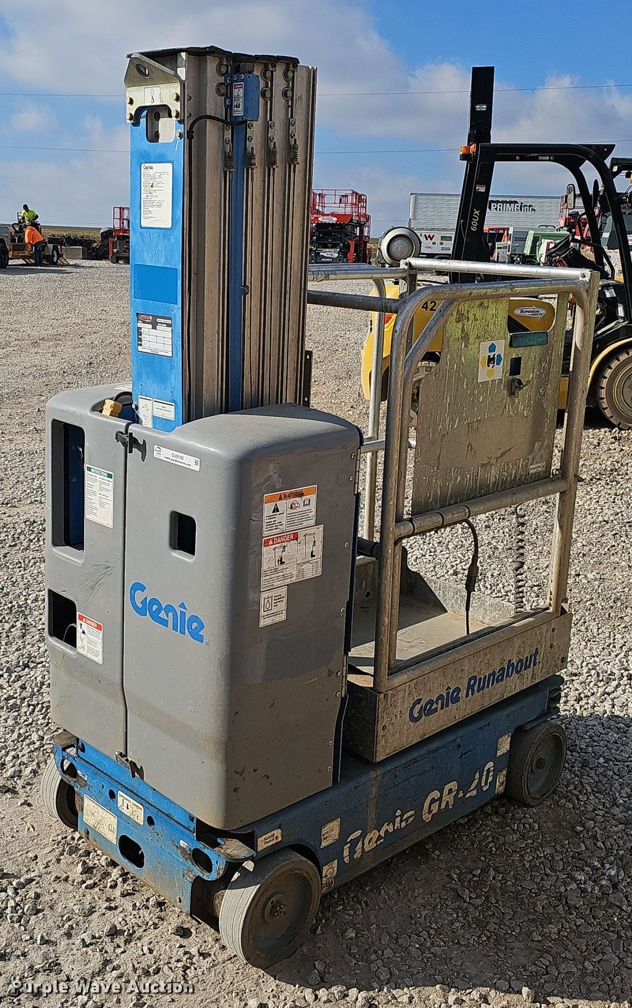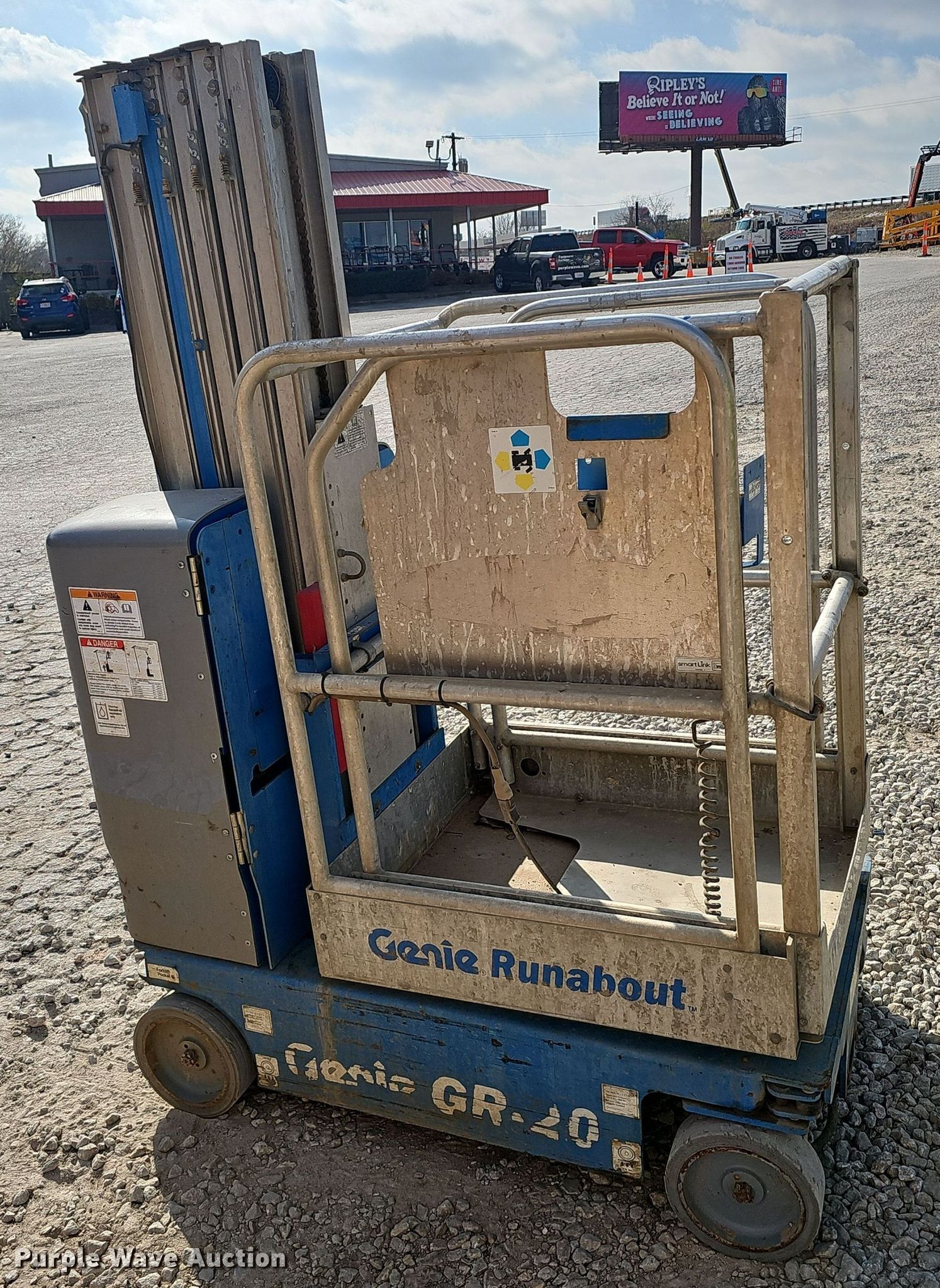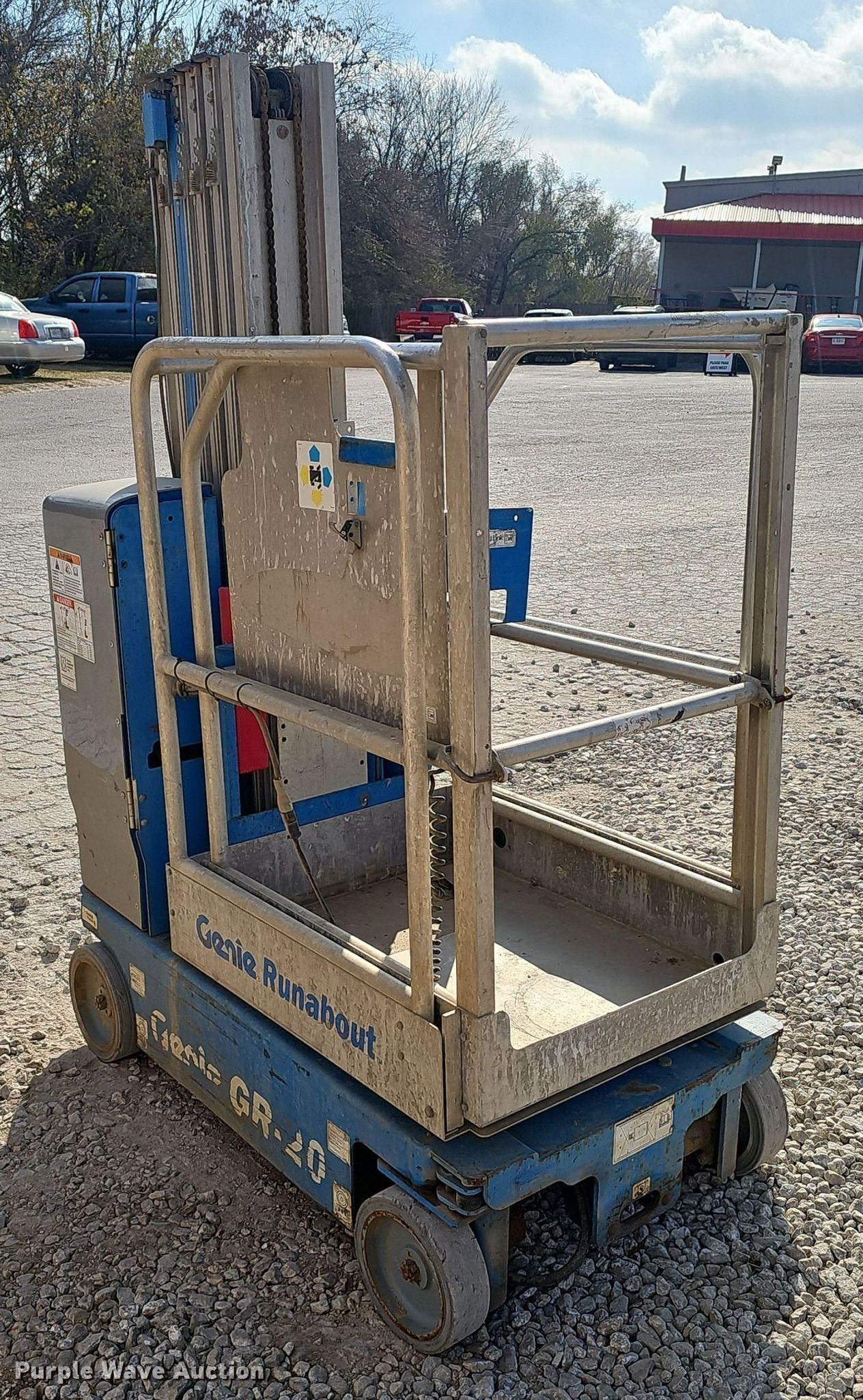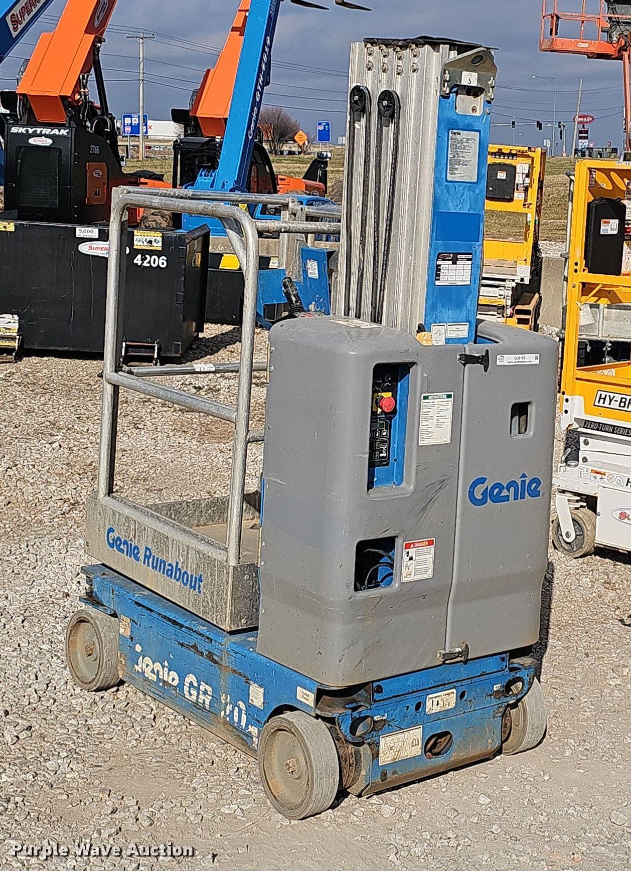 Purple Wave is selling a used Scissor or Vertical Lift in Missouri. This item is a 2014 Genie GR-20 vertical lift with the following: Hours: 249 on meter, Serial: GR14-3566