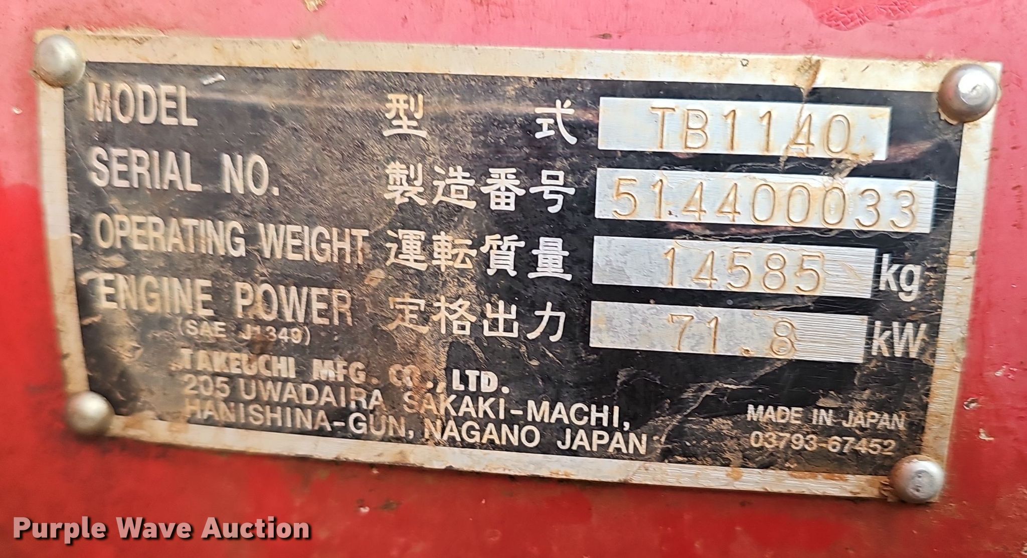 • OJ9200 image for item OJ9200 2010 Takeuchi TB1140 excavator