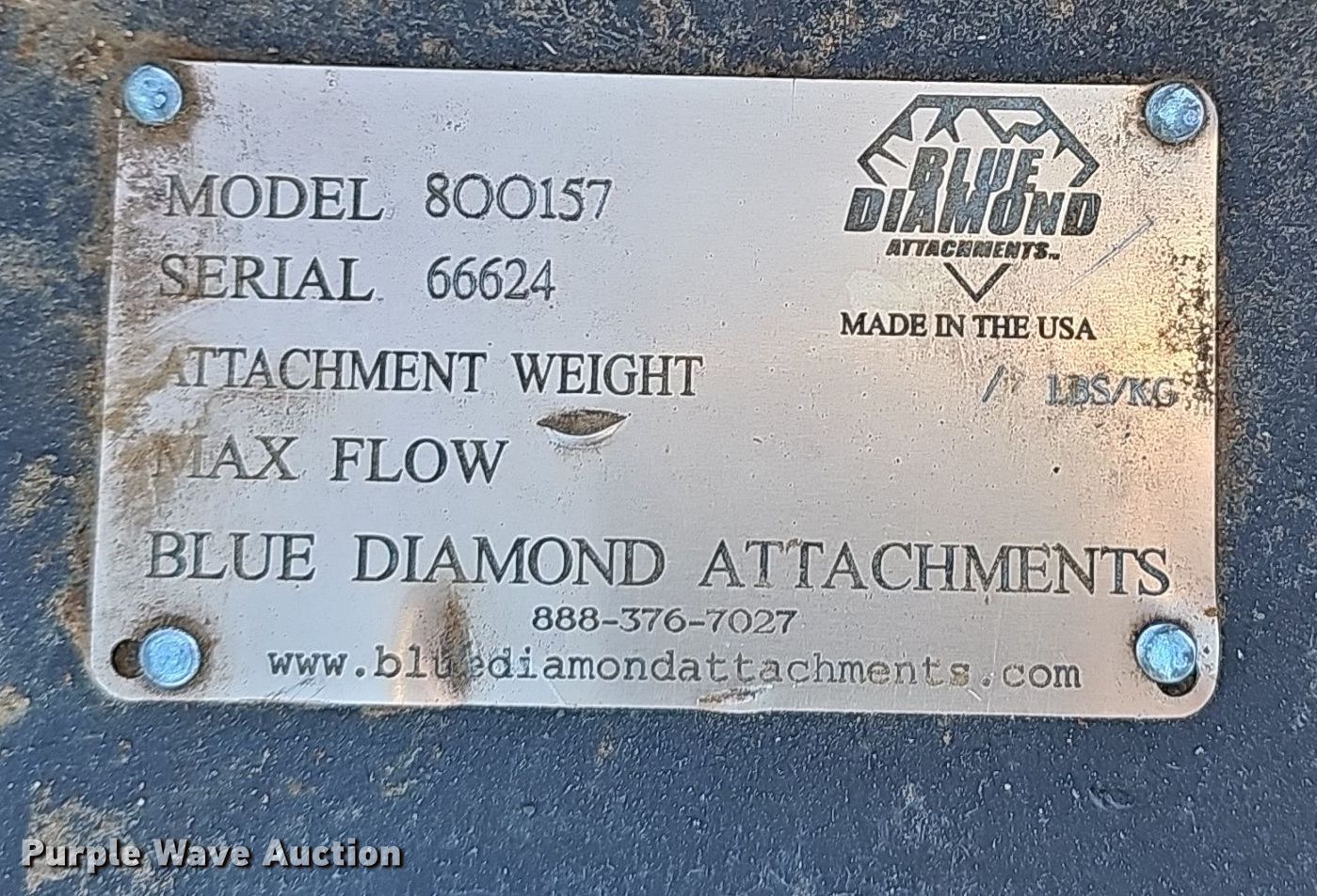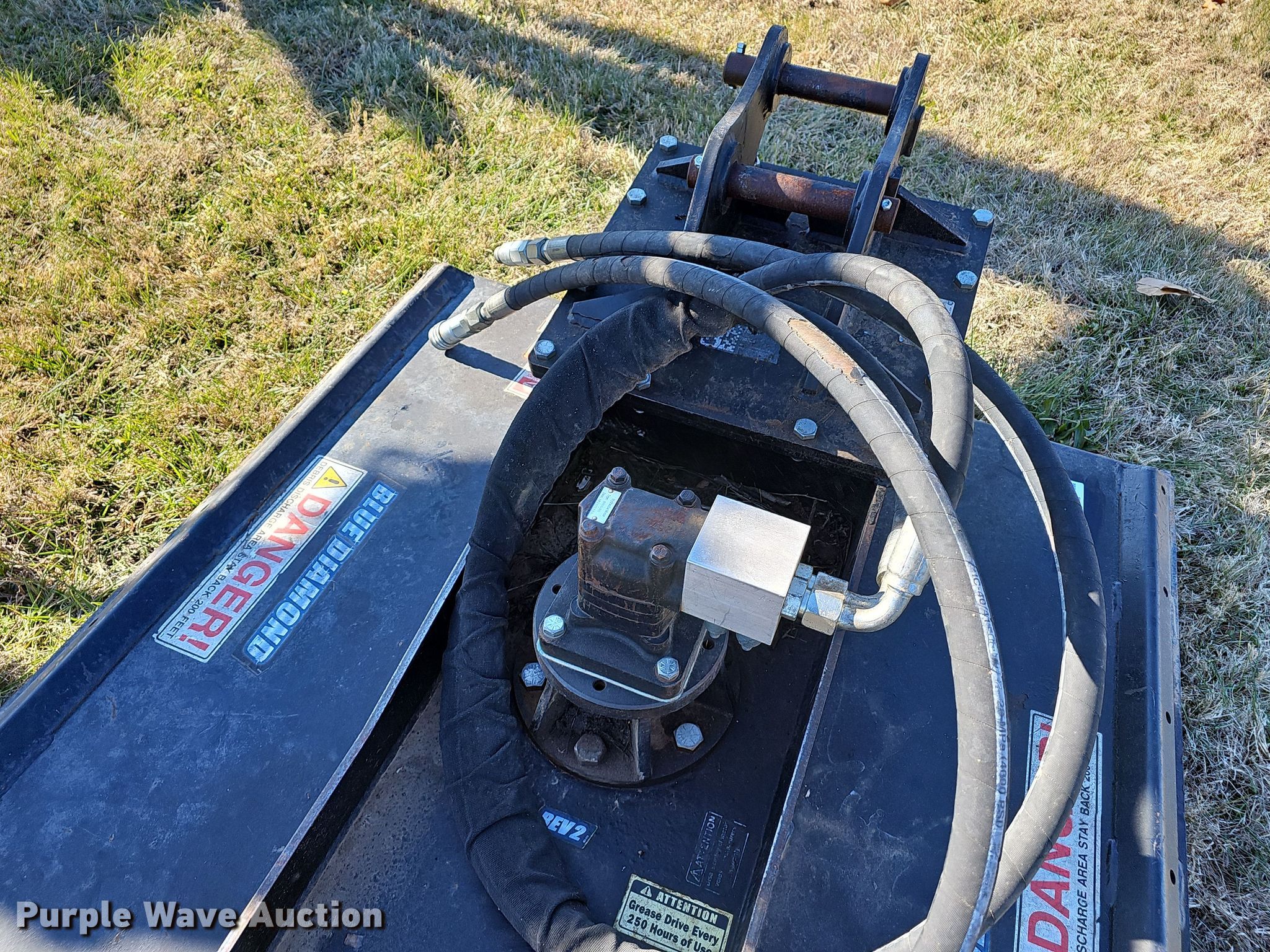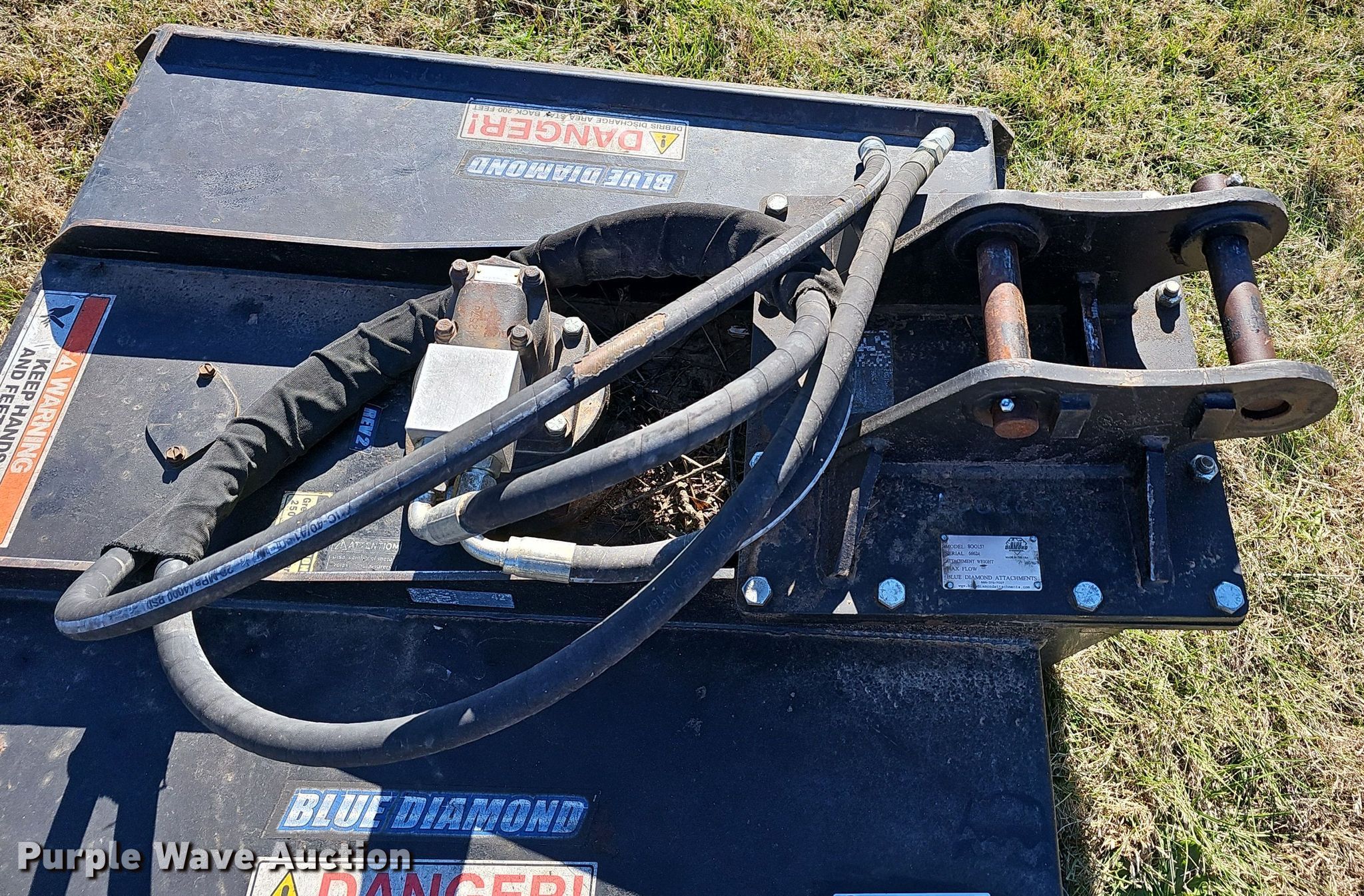 Purple Wave is selling a used Excavator Attach. in Missouri. This item is a Blue Diamond 800157 excavator rotary mower with the following: Serial: 66624, Width: 46"