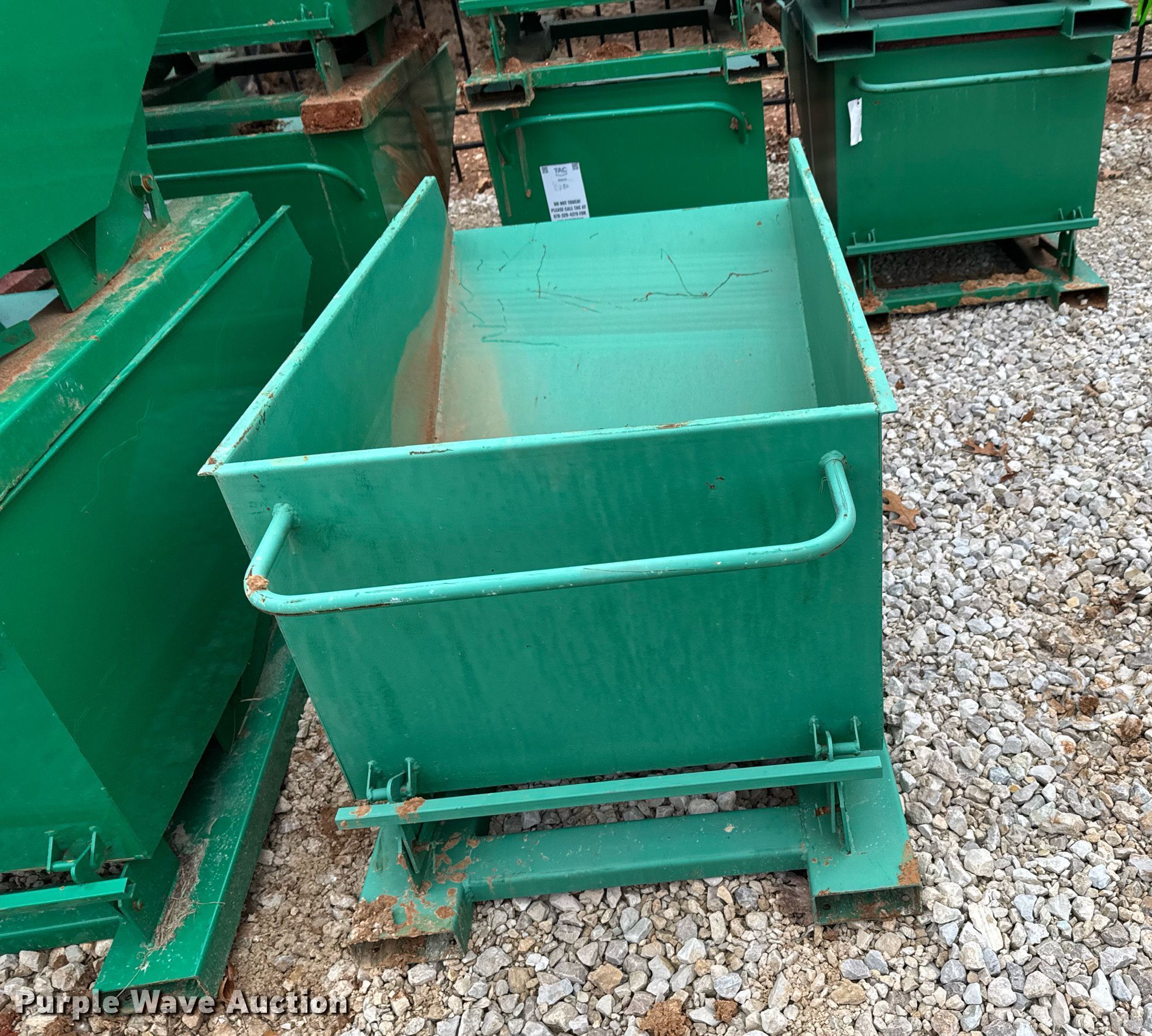 (12) forklift dumpsters. Lengths 48", 28", 26". Larson Equipment Co.. Strafford, MO 65757