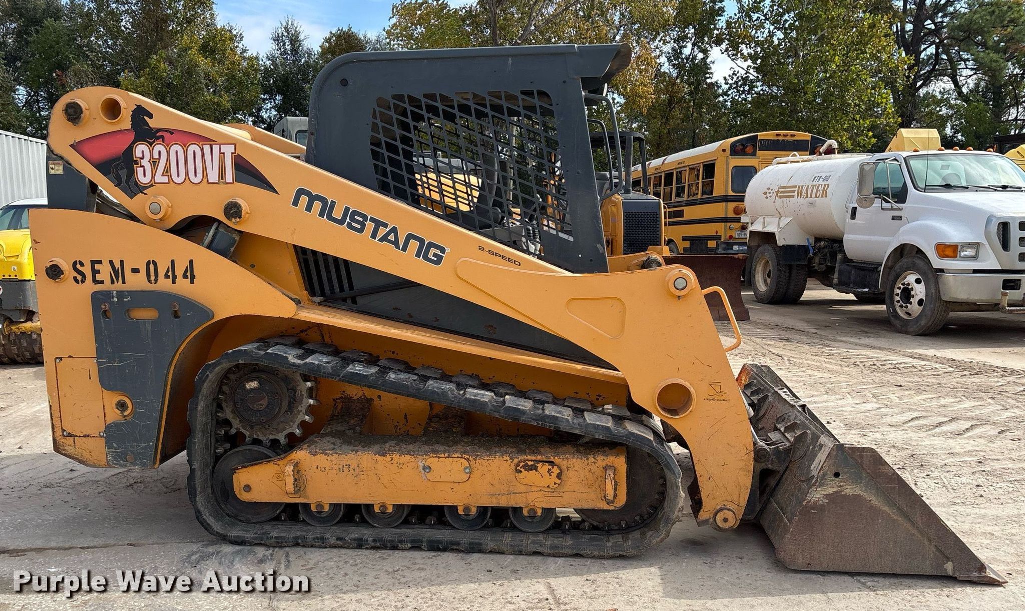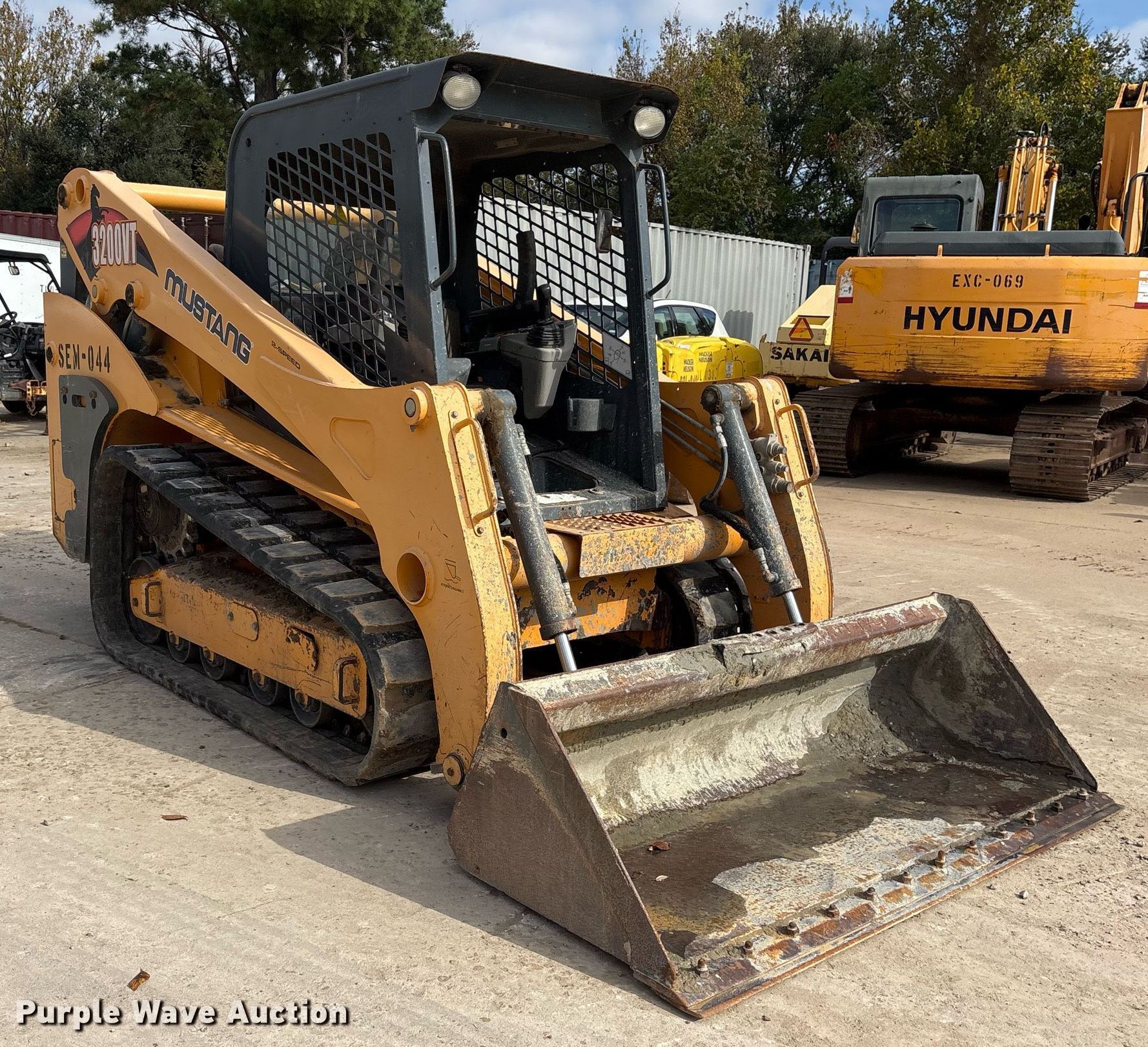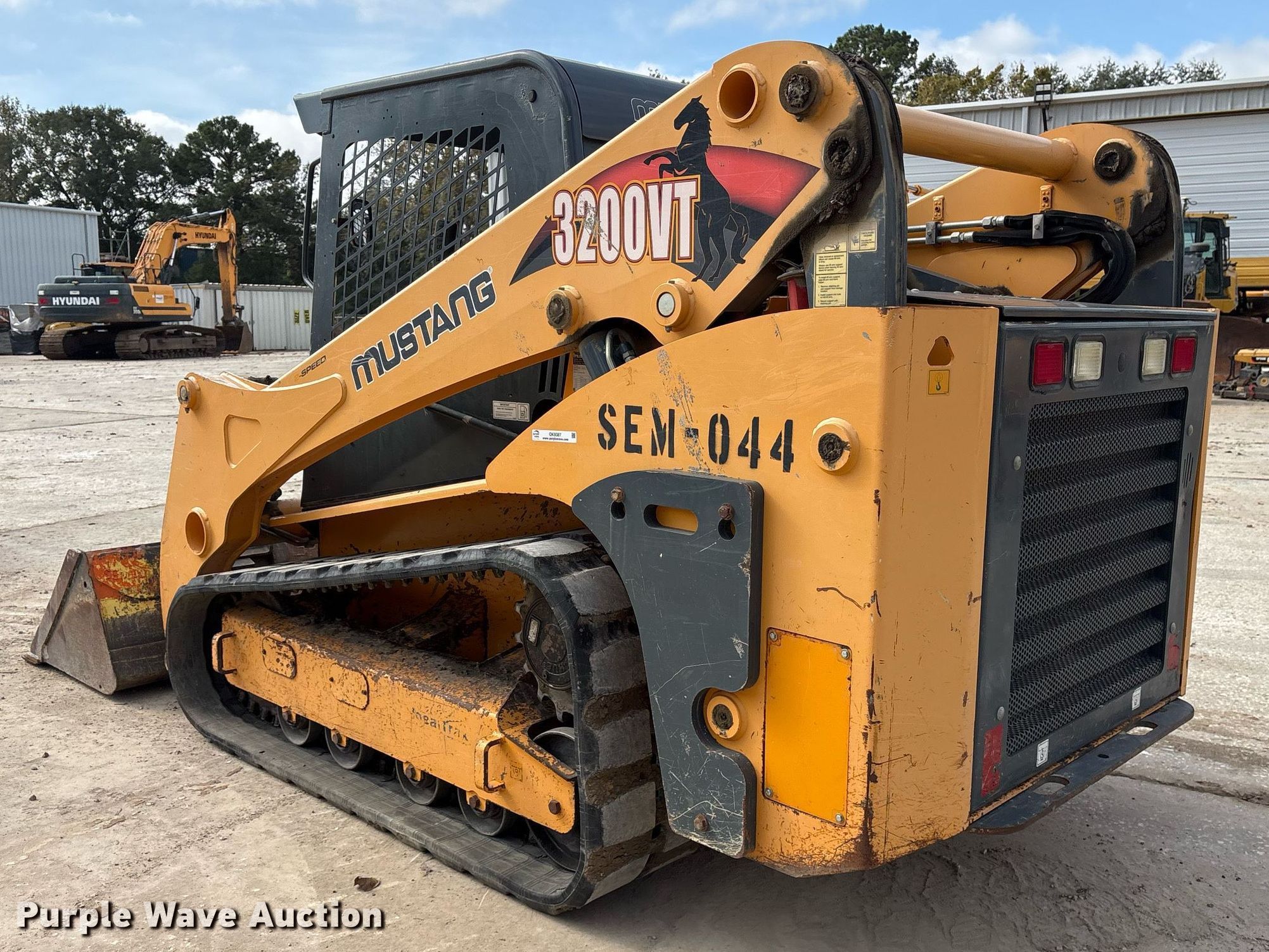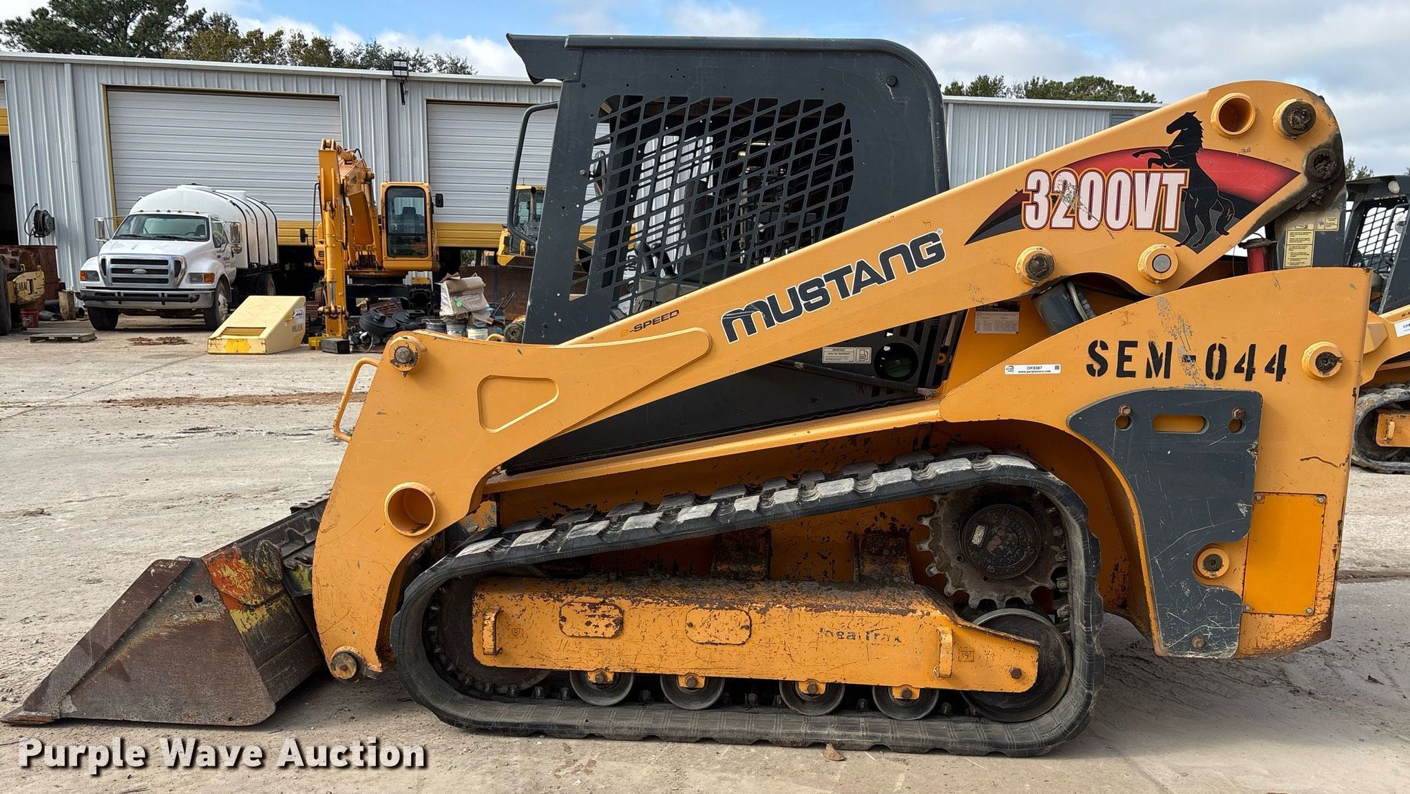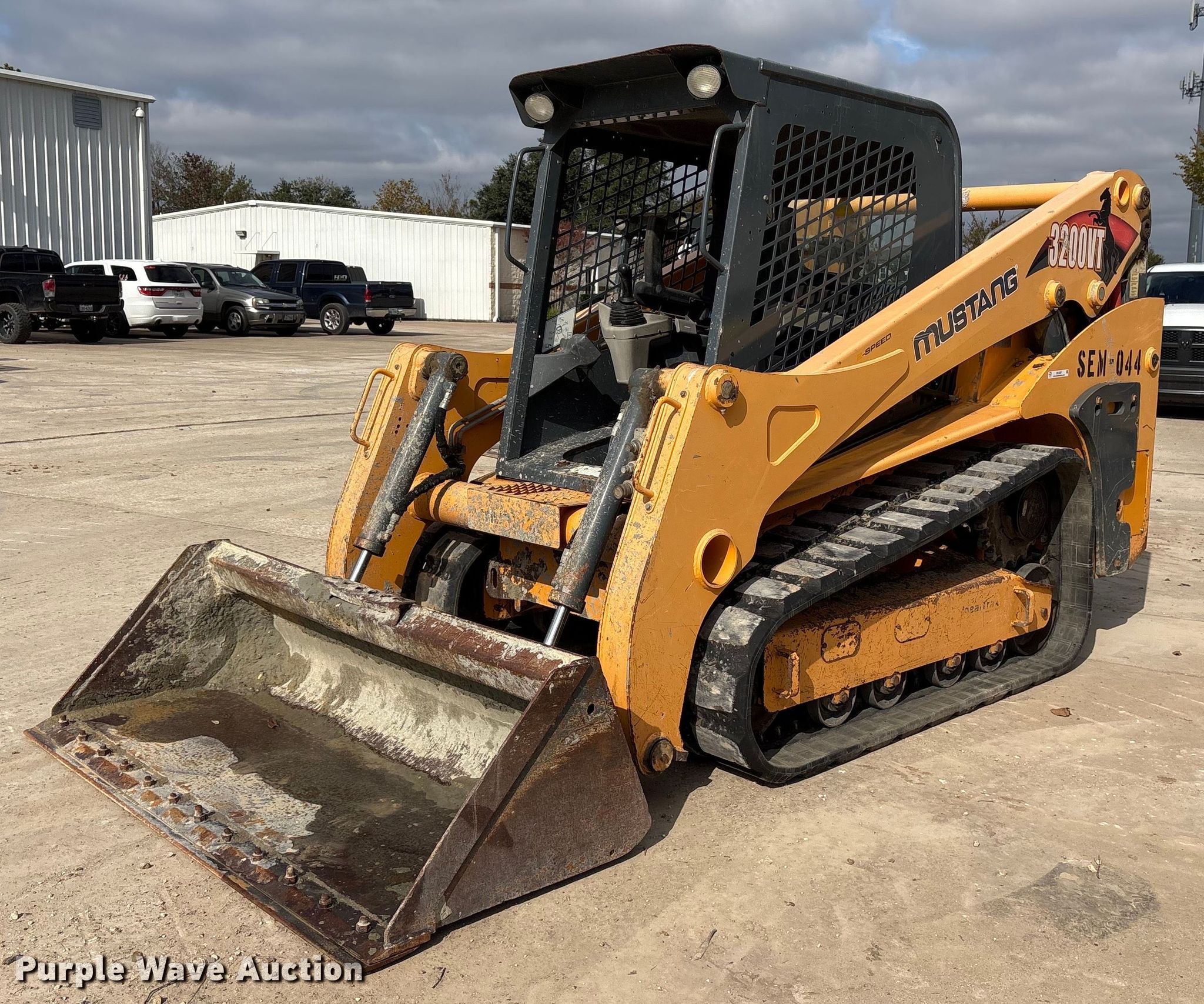 Purple Wave is selling a used Tracked Skid Steer Loader in Texas. This item is a Mustang 3200VT tracked skid steer loader with the following: Hours: 2,107 on meter, Serial: MMC320VTC00060342, Unit #: SEM-044