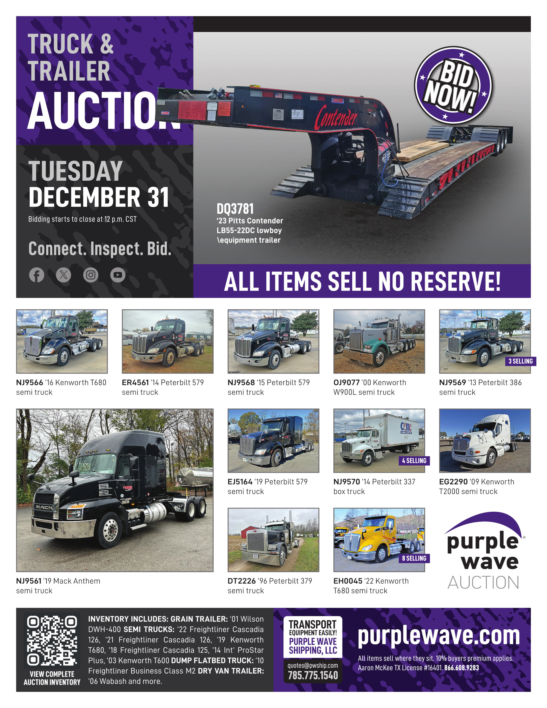SOLD! Truck and Trailer Auction | 12-31-2024