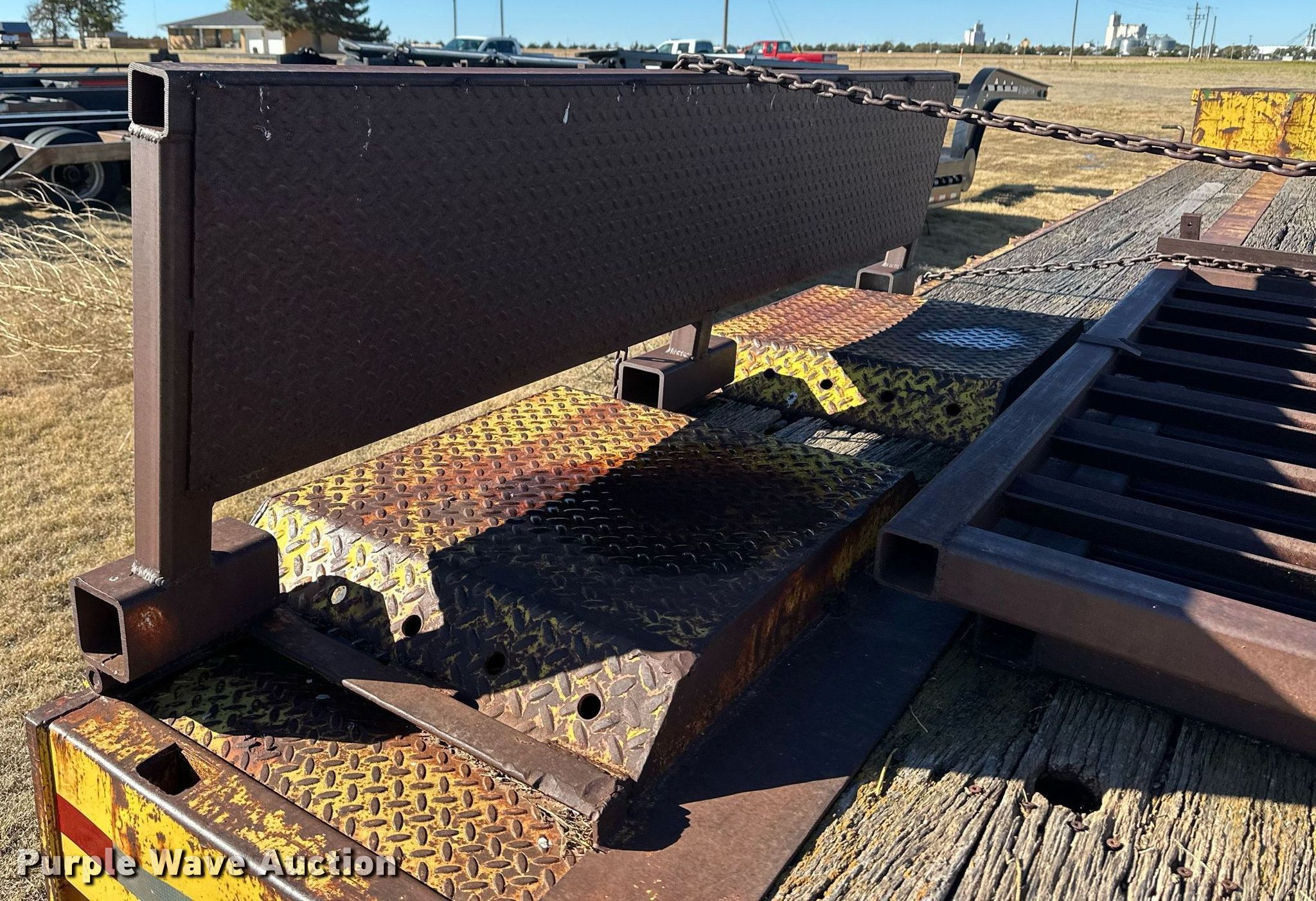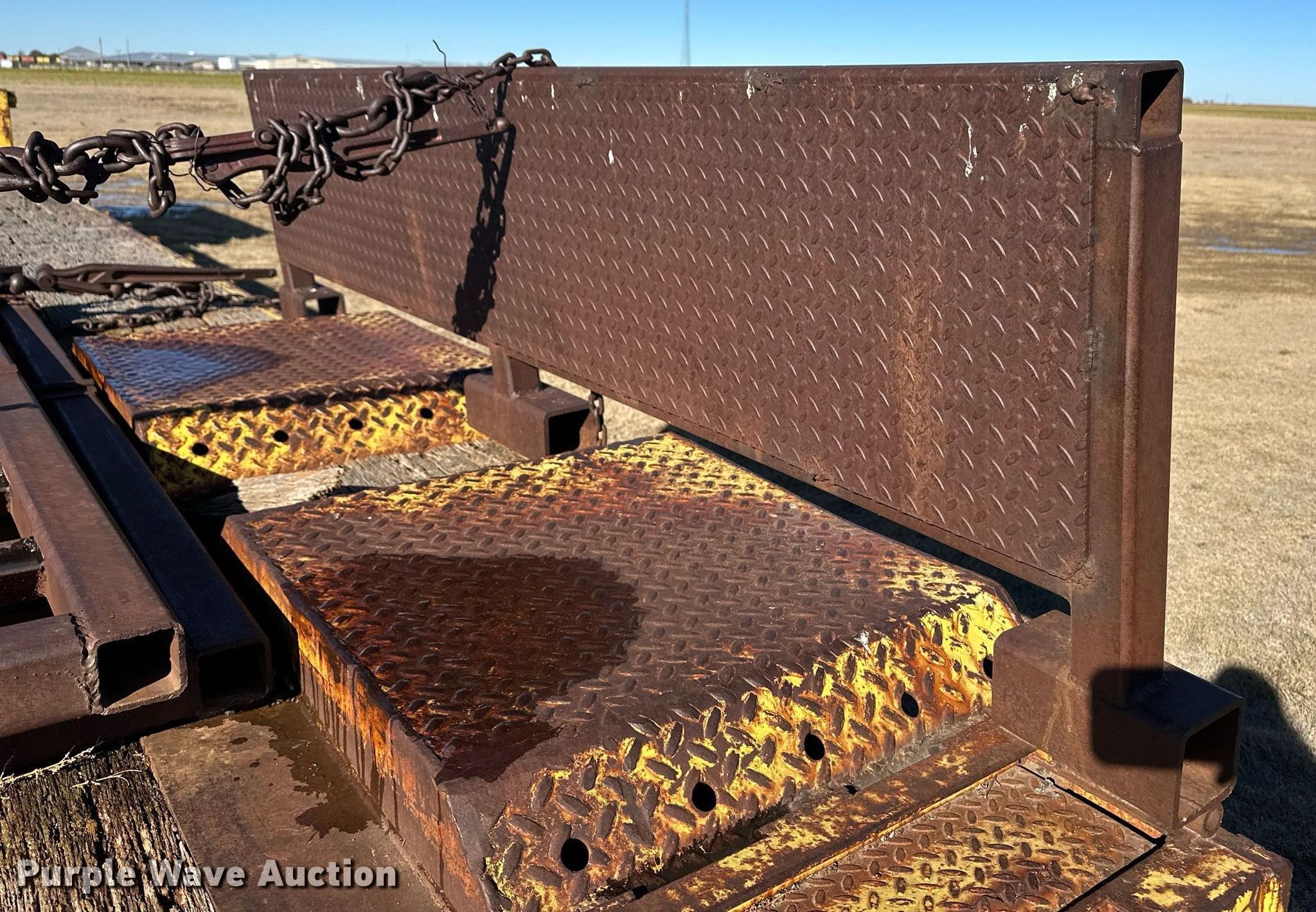 1979 Transcraft drop deck equipment trailer. VIN: TC-14609. Dimensions Overall: 44' L x 95" W, Deck: 32' L x 95" W, Top deck length: 11', Ramps: Manual Length: 8'. Features Deck type: Steel, Wood. Chassis Landing gear: Dual, Suspension: Spring, Brakes: Air, Axles: Tandem, GVWR: 70,000 lbs. Tires Steel wheels, Size: 11R17.5. Oklahoma title. Title distribution may be delayed up to 14 days from verification of funds. Hooker , OK 73945